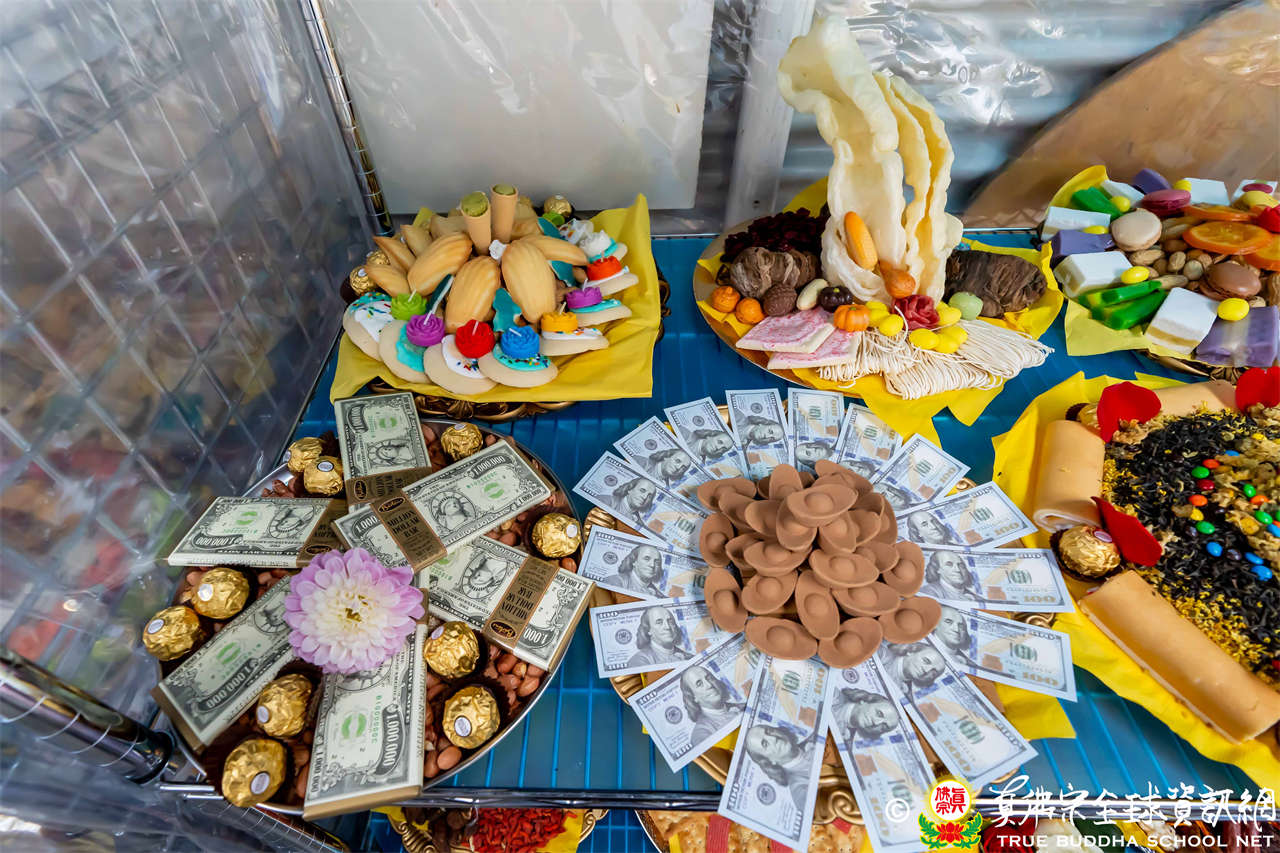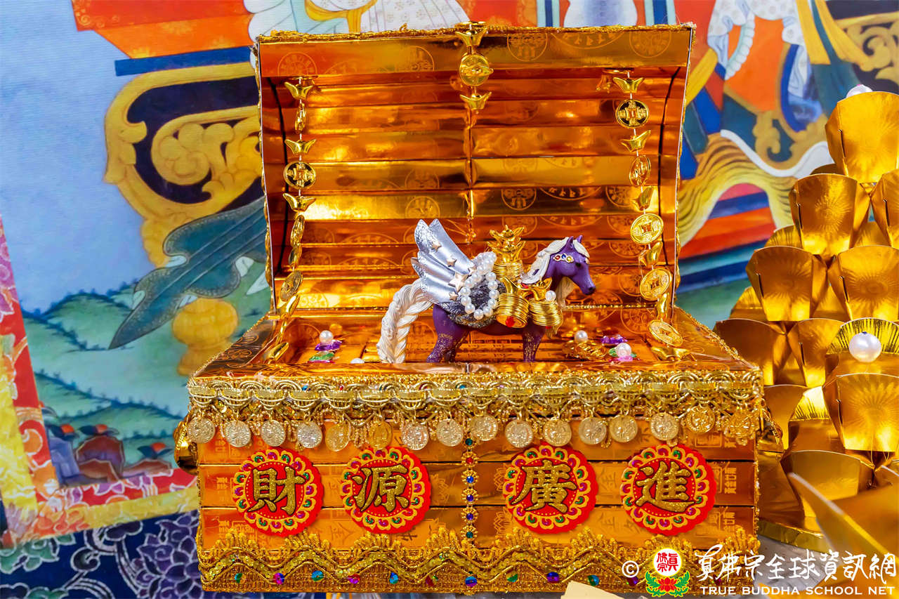 今日的護摩主尊是「瑤池金母」,世界上瑤池金母形象大都是中年不然就是老年,唯一只有真佛宗具有天女形象的瑤池金母,這是非常特殊的,少女形象的瑤池金母比較有力量。修持「瑤池金母馬上有錢法」相應,財富就會如同下雨般灑下,什麼財都有,錢要找你的時候,擋也擋不住,但重要的是得到了這些財,要佈施給眾生,迴向社會,造福他人。