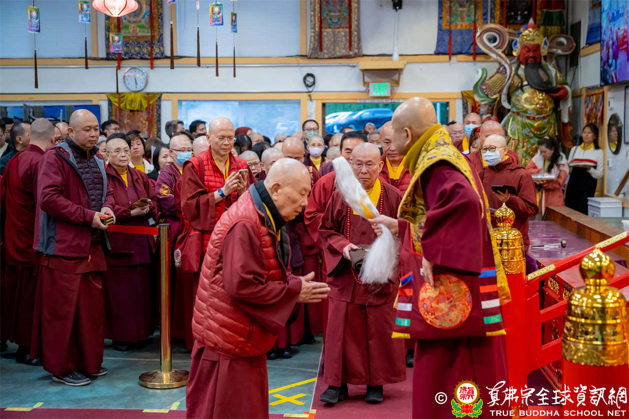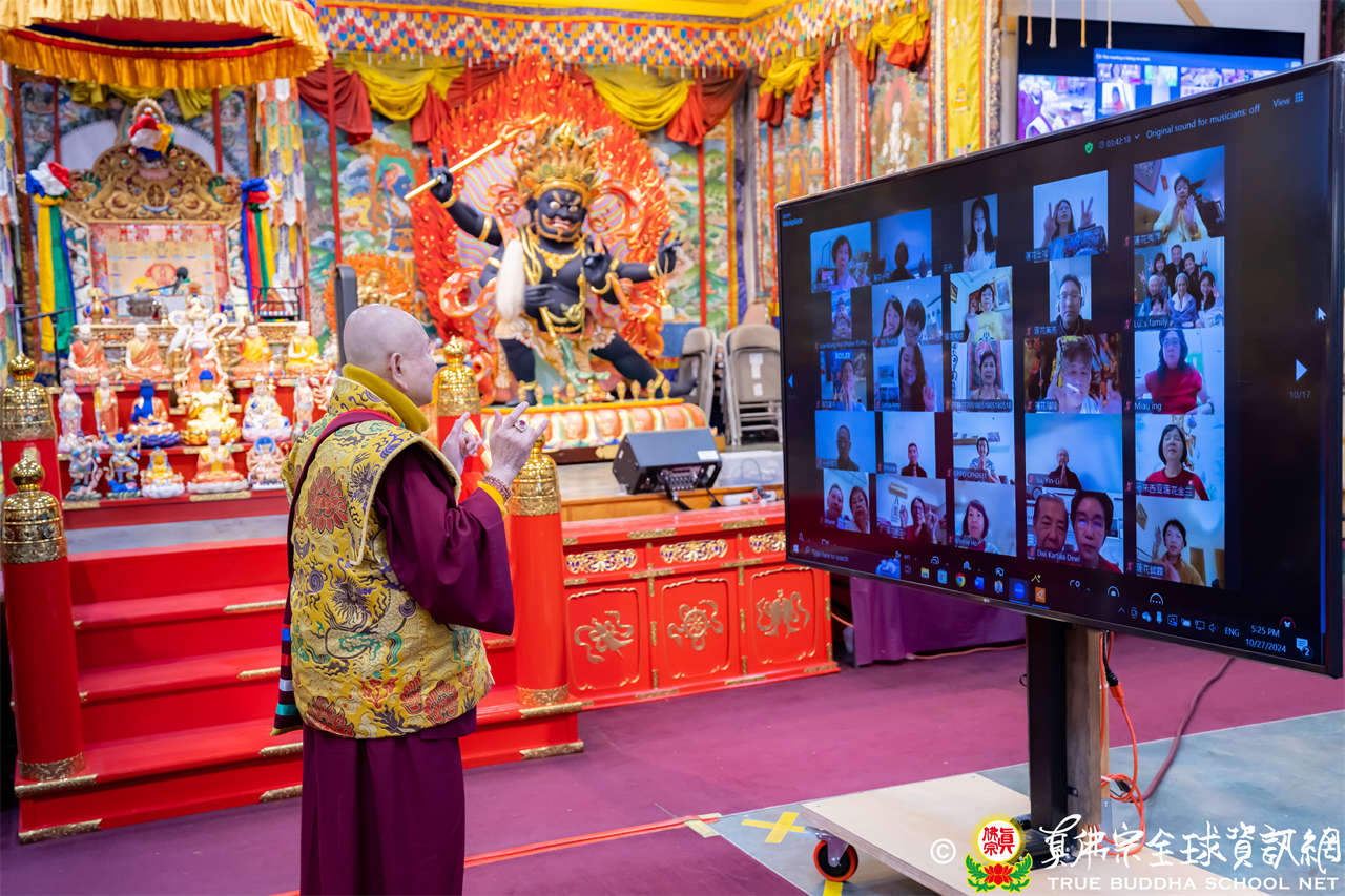 法會最後,法王移駕到Zoom前與弟子們互動。弟子們誠摯地傾訴心中的感恩與敬意,祈求在瑤池金母的加持下,財富與智慧圓滿俱足。隨後,法王慈悲賜授現場與會大眾「瑤池金母總持灌頂」灌頂,法會圓滿吉祥。