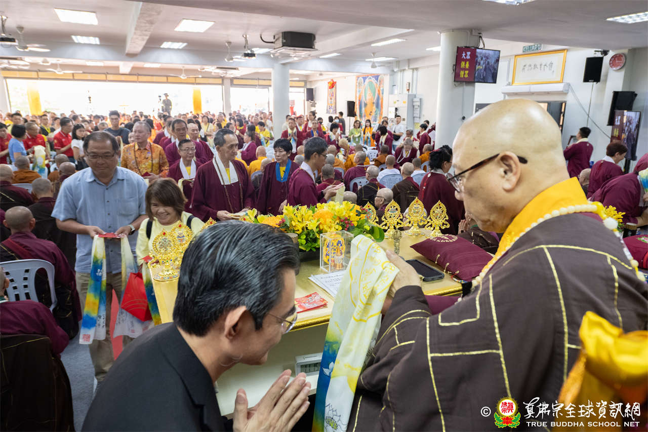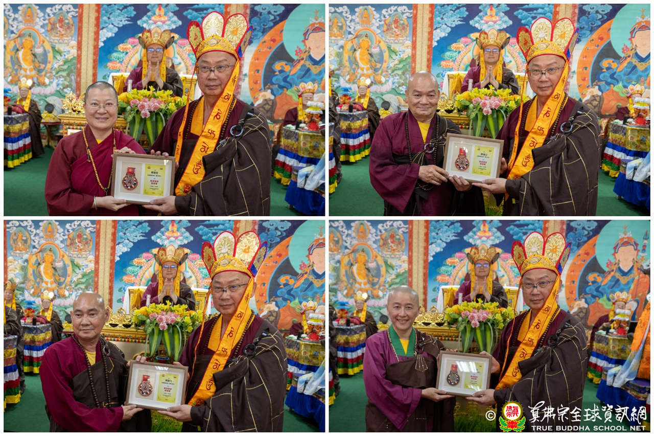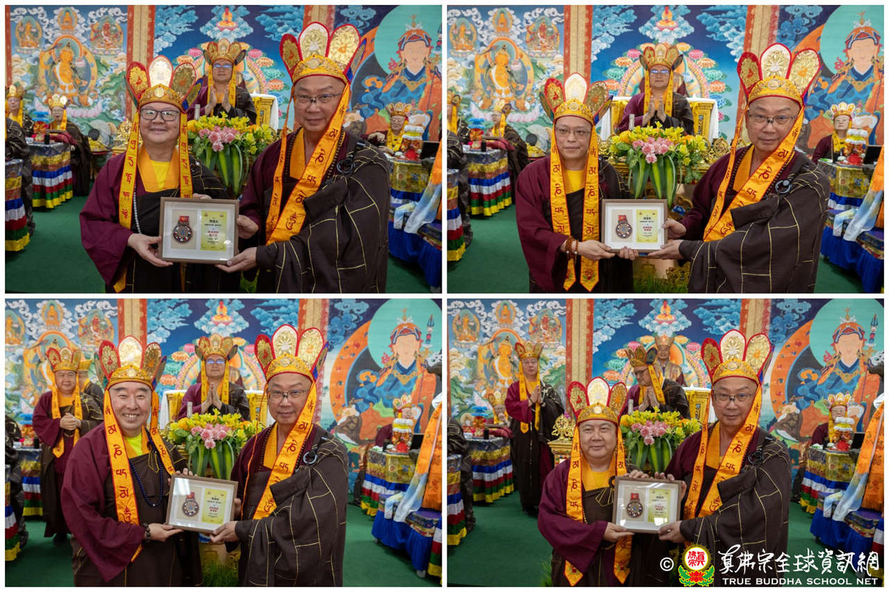 護摩法會開始前,宗委會首次舉辦了隆重且溫馨的「榮耀奉獻、照亮真佛」頒獎典禮,頒發獎章表揚在弘法路上默默付出,乃至於對當地社會具有卓越貢獻的真佛僧伽及真佛居士弘法人員。是次頒獎典禮,共頒發了15項獎章予親臨活動現場參與兩場法會的真佛僧伽及居士。未克與會的獲獎者,將於近日內收到由宗委會所郵寄的獎章。值得一提的是,馬密總延續去年的做法,秉持著“活動不忘布施”的精神,捐贈總值馬幣7萬令吉的物資,如白米、米粉、各類型餅乾、面條及咖啡等予政府及教育單位,幫助當地的弱勢群體及清寒學子。