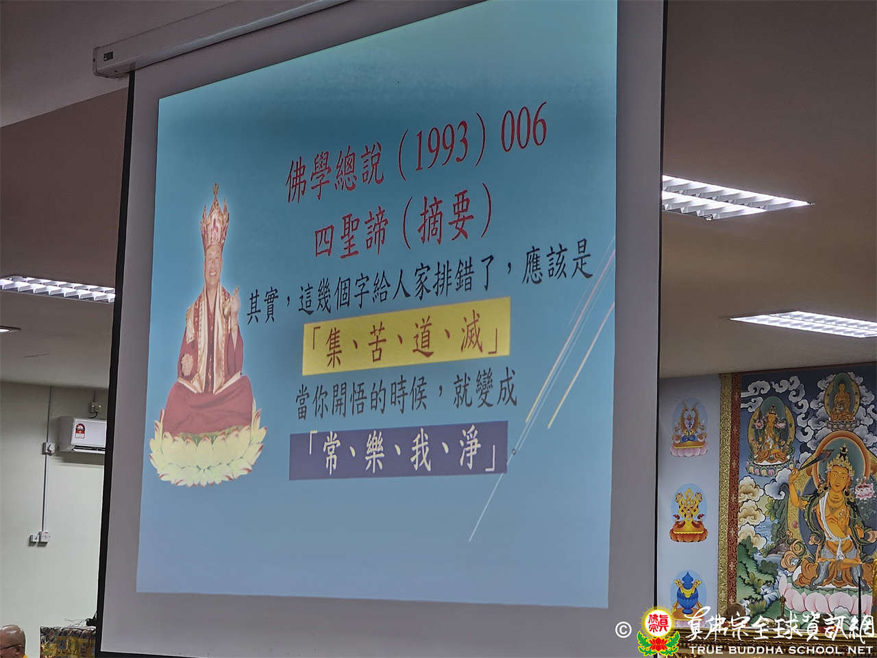 四聖諦,常聽聞是「苦寂滅道」,但根本上師教導弟子應為「集、苦、道、滅」,因為當在開悟的時候「集、苦、道、滅」就變成「常、樂、我、淨」。
