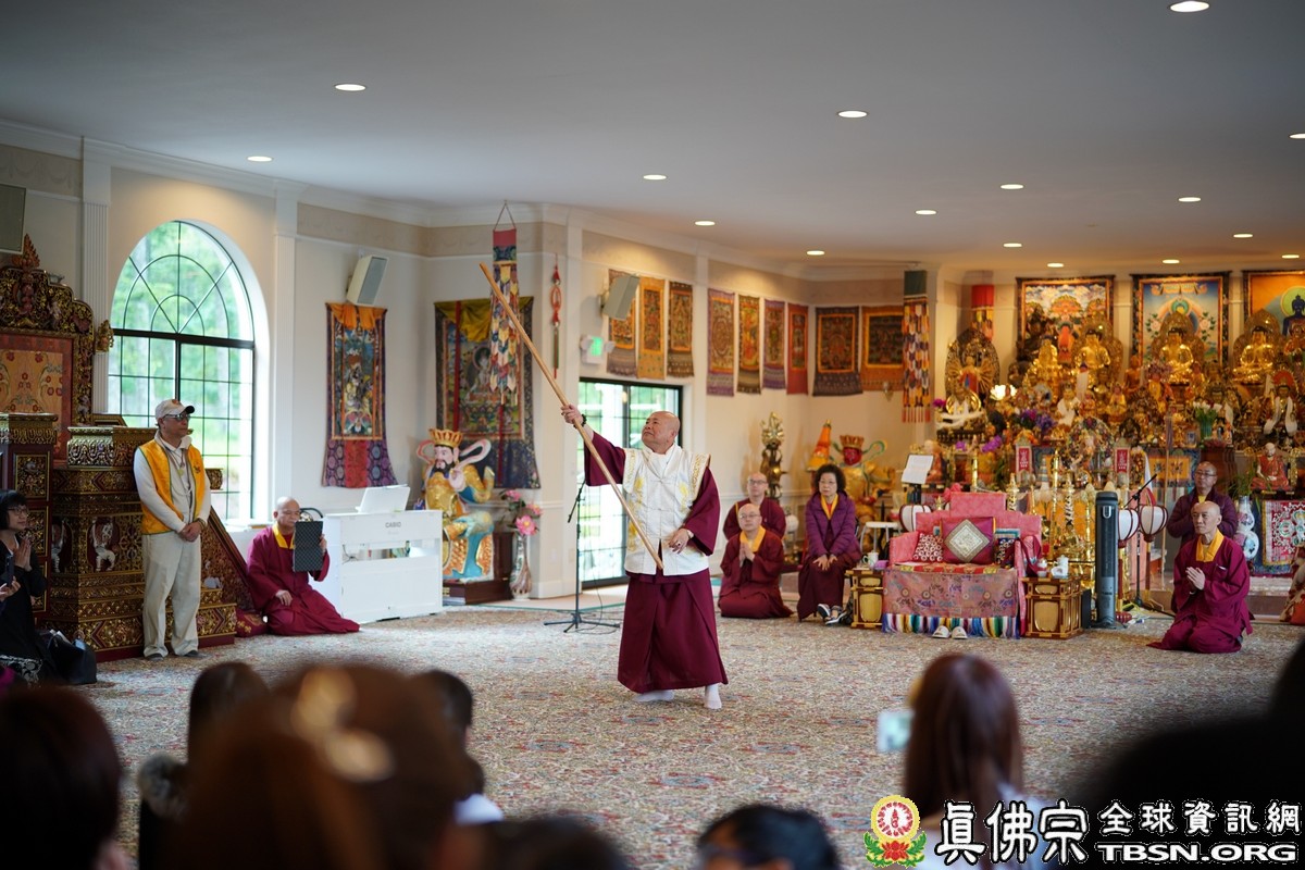開示中,法王向佛子介紹龍樹菩薩「長生術」的三要訣,一、納氣:要練氣、學吐納;二、 嚥液:長存並增長身體的明點,一般人的明點(身體賀爾蒙)只有消耗,但行者要將虛空中的甘露存到身體內,再增長自身明點;三、無漏明點:為保持身上的明點不會散失,所以,必須要讓佛菩薩的甘露進到自身的身體,才能成就,才能長生不老,只要身體的賀爾蒙減少消失掉就會老化;另外,沒有煩惱、沒有憂愁,完全能夠放空,就能夠長生,「六大神通最大的神通是漏盡通」,因此,法王強調,明點無漏在修習「長生術」方面很重要,男行者修「鑄劍法」,女行者修「女丹法」。