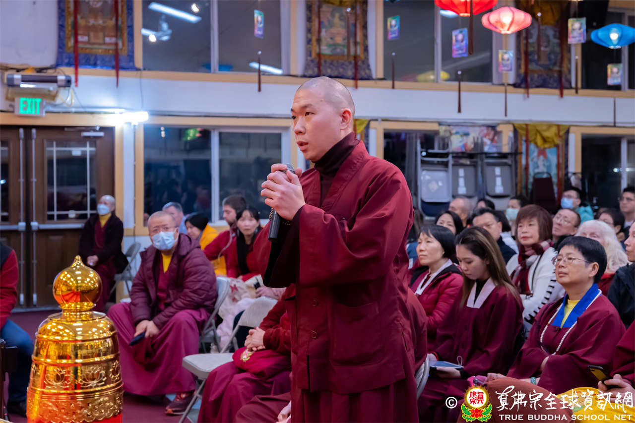 蓮雄上師則分享,他因修法時多次感受到師尊加持,以及淨印雷藏寺中出現的金光與雙彩虹景象,深刻體會到西雅圖的殊勝因緣,因此決定前來。他提到:「修法中師尊按著我的頭加持,這是一種大加持力,讓我堅信要來西雅圖。」