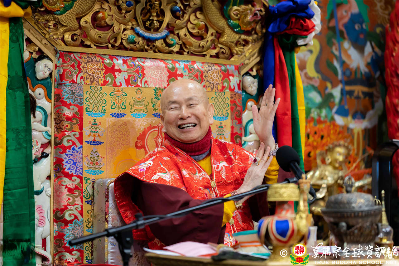 最後,法王謙遜表示自己僅為依《維摩詰經》分享智慧,無意將自己與維摩詰菩薩相比。法王強調,維摩詰是金粟如來的化身,其智慧與神通廣大無邊,而自己只是平凡修行者,仍需依靠醫療等世間方法對治身體的病痛。