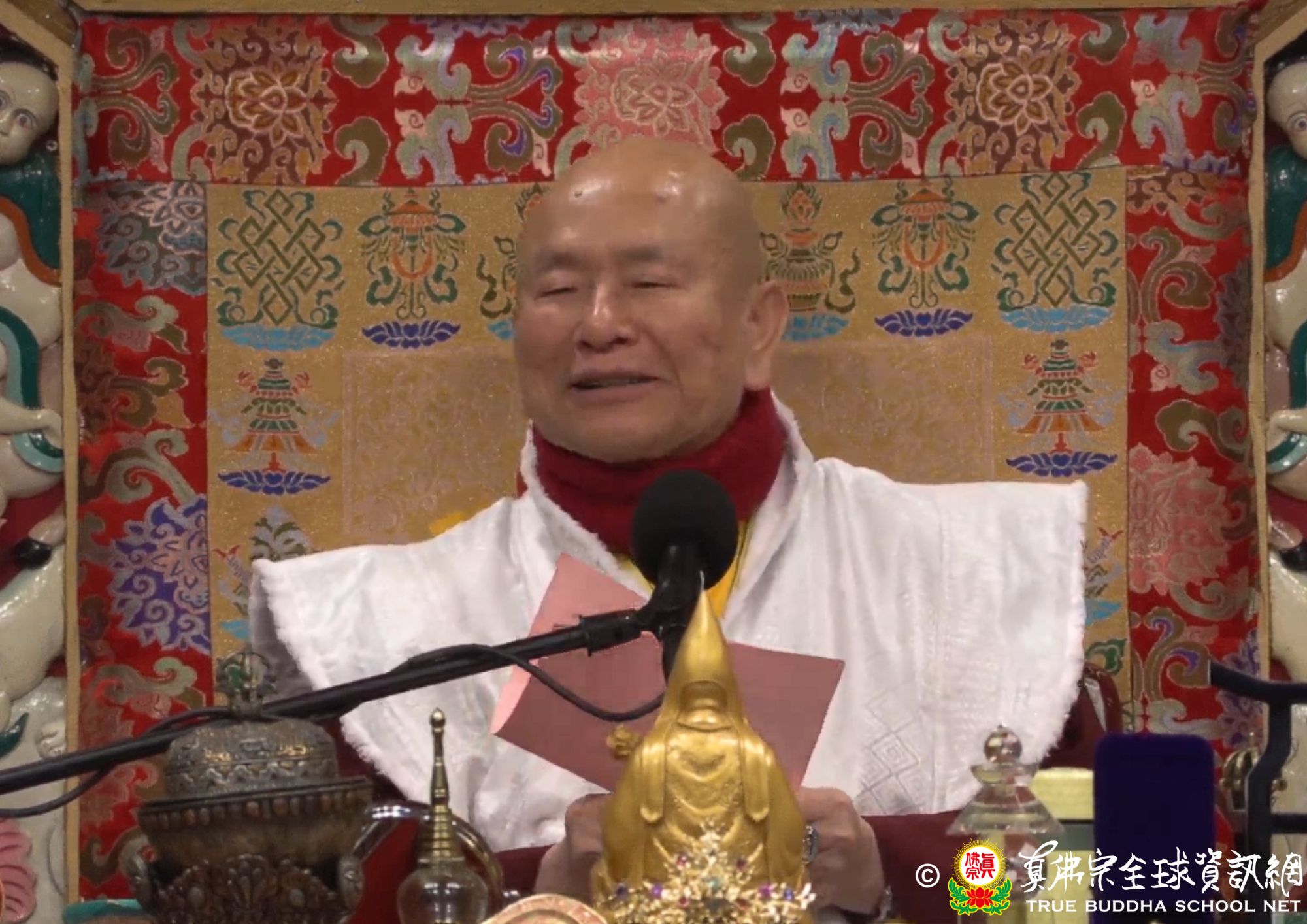 聖尊繼續解釋經義:維摩詰大士回答,我看我自己是看我自己的實相,我看佛也是如此。我看的佛沒有來過,也沒有去過,也沒有住在什麼地方。