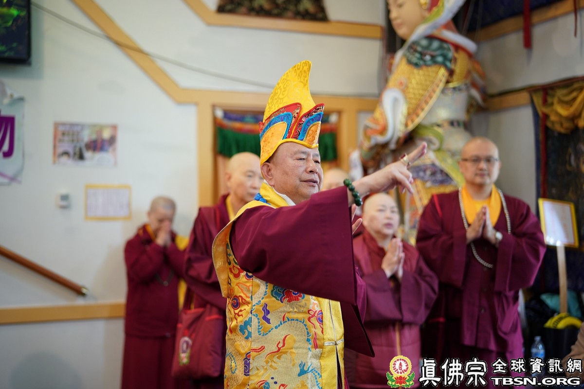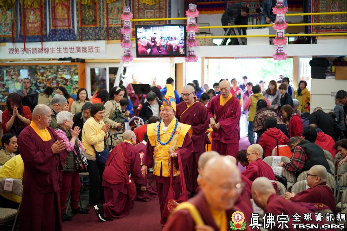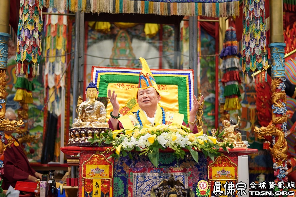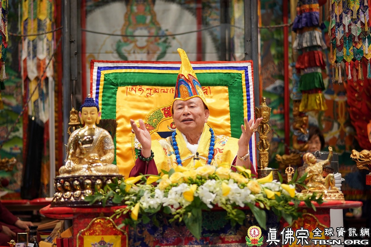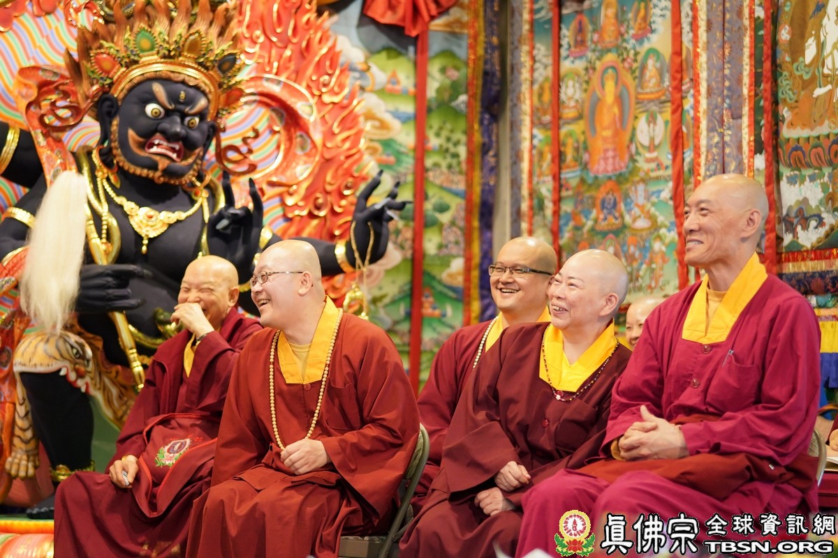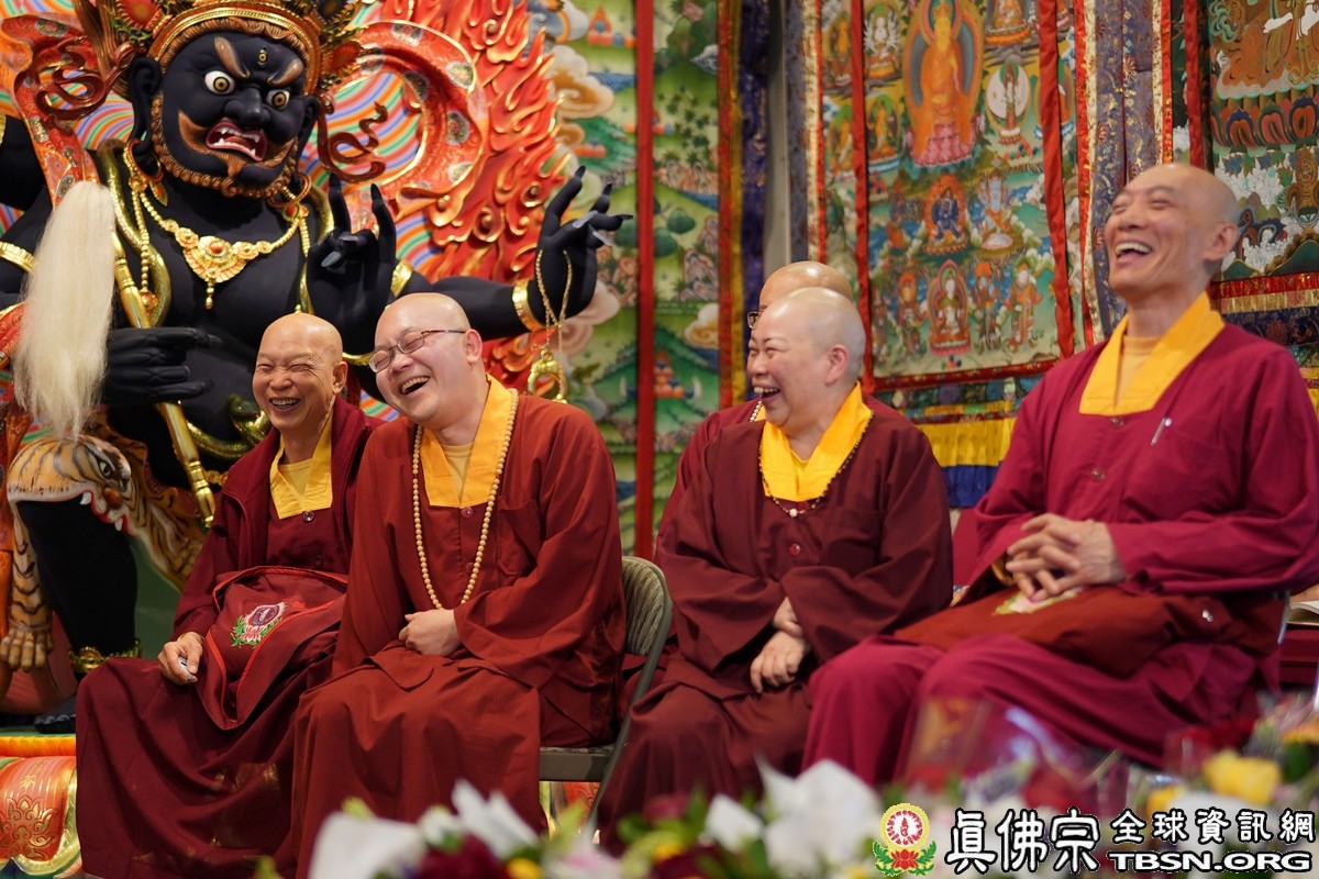 莊嚴殊勝的火供過後,師尊開示,昨天浴佛,今日做「釋迦牟尼佛」護摩火供,很好,很圓滿。當年,釋迦牟尼佛於菩提樹下證悟後,欲入涅槃,是大梵天王及帝釋天勸請佛陀慈悲住世,大轉法輪。釋迦牟尼佛才在娑婆世界三轉法輪 :苦輪、 集輪、 滅輪。一轉法輪教導眾生「苦當知」,知道人間有生、老、病、死苦、愛別離苦、怨憎會苦、求不得苦,活在這世界上的都是煩惱及痛苦,快樂只是暫時的。在第二轉法輪時,再教導眾生把苦及苦因全部集合起來斷掉,就是「集應斷」,就是要斷苦。 第三轉法輪時,教導眾生「滅應證」,證到所有的苦通通消滅。最後,「道應修」,要修「道」,修行成功了,才能證明「滅」,斷除所有的苦,才能離苦得樂,產生極樂。