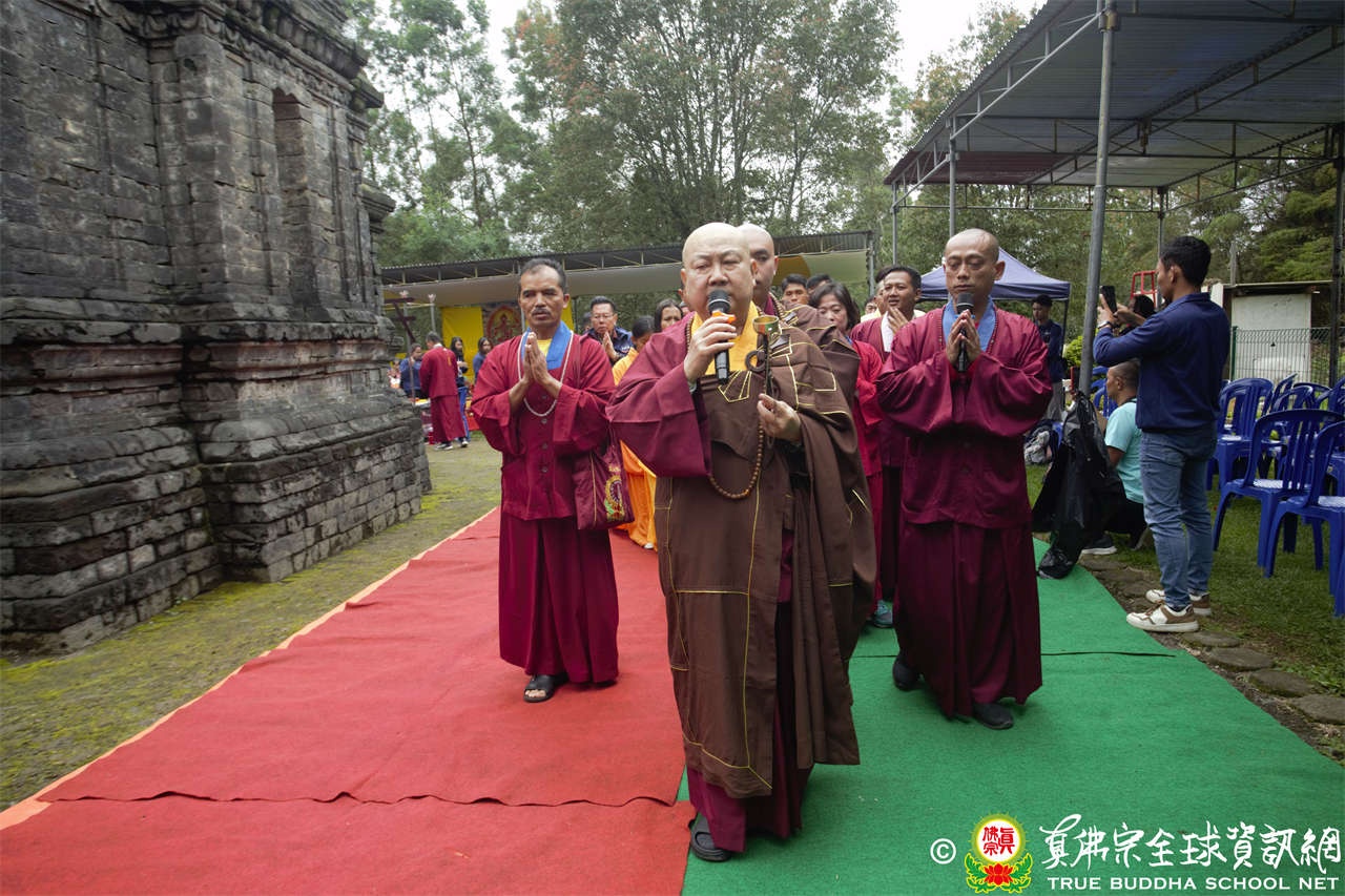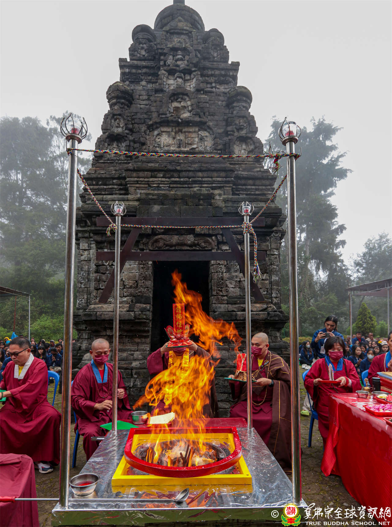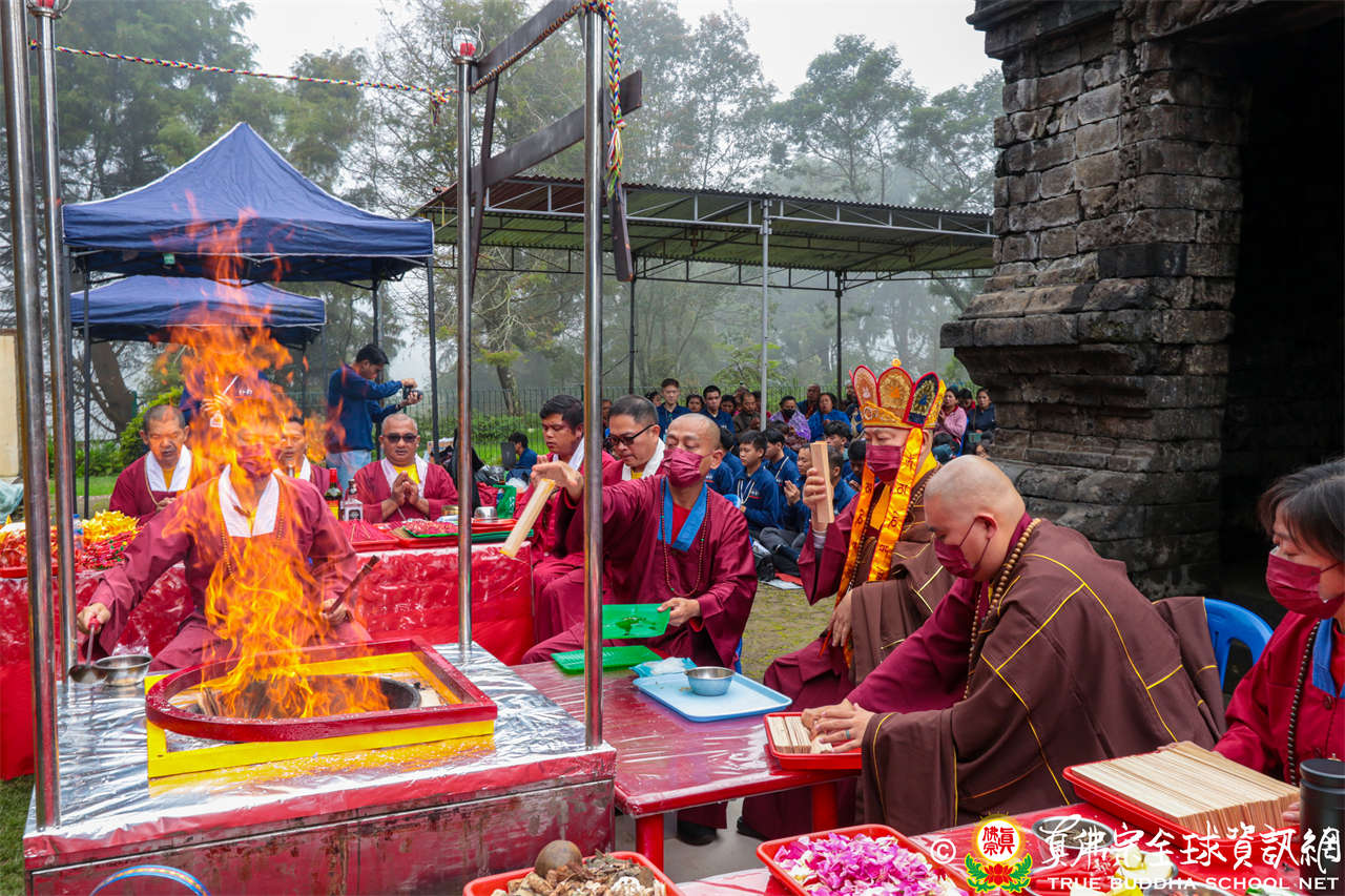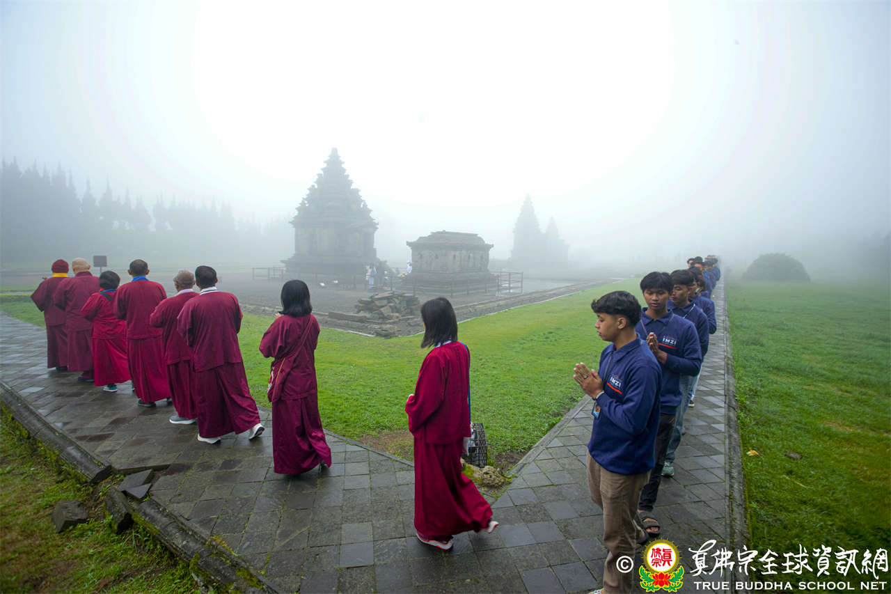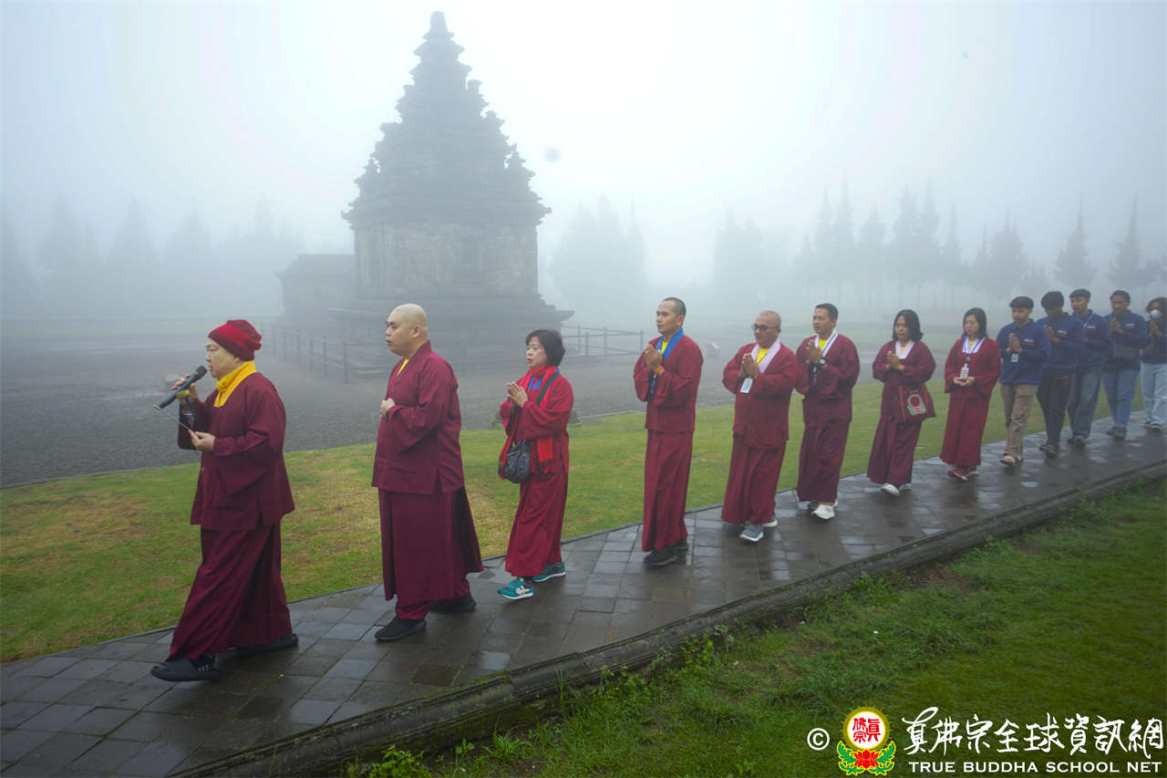 第三日清晨五點,蓮飛上師,蓮㻟法師帶領眾學員,乘車30分鐘前往阿主那聖塔。到了阿主那聖塔,上師帶領大眾經行繞塔。當時山頂霧氣濃厚,氣溫很低,大眾一直唱誦阿彌陀佛聖號,氣氛非常莊嚴神聖。結束經行後,大家前往附近的畢瑪佛塔。蓮飛上師在此主壇咕嚕咕咧佛母護摩法會。參加法會的不只是真青會學員,在中爪哇附近的道場,來了約200名真佛宗弟子參加此次法會。法會莊嚴肅穆地進行,天空陰沉沉,但沒下雨,四周籠罩著薄霧,法會順利進行,人人心中充滿平和法喜。法會結束後,蓮飛上師再次帶領大眾經行繞畢瑪佛塔。