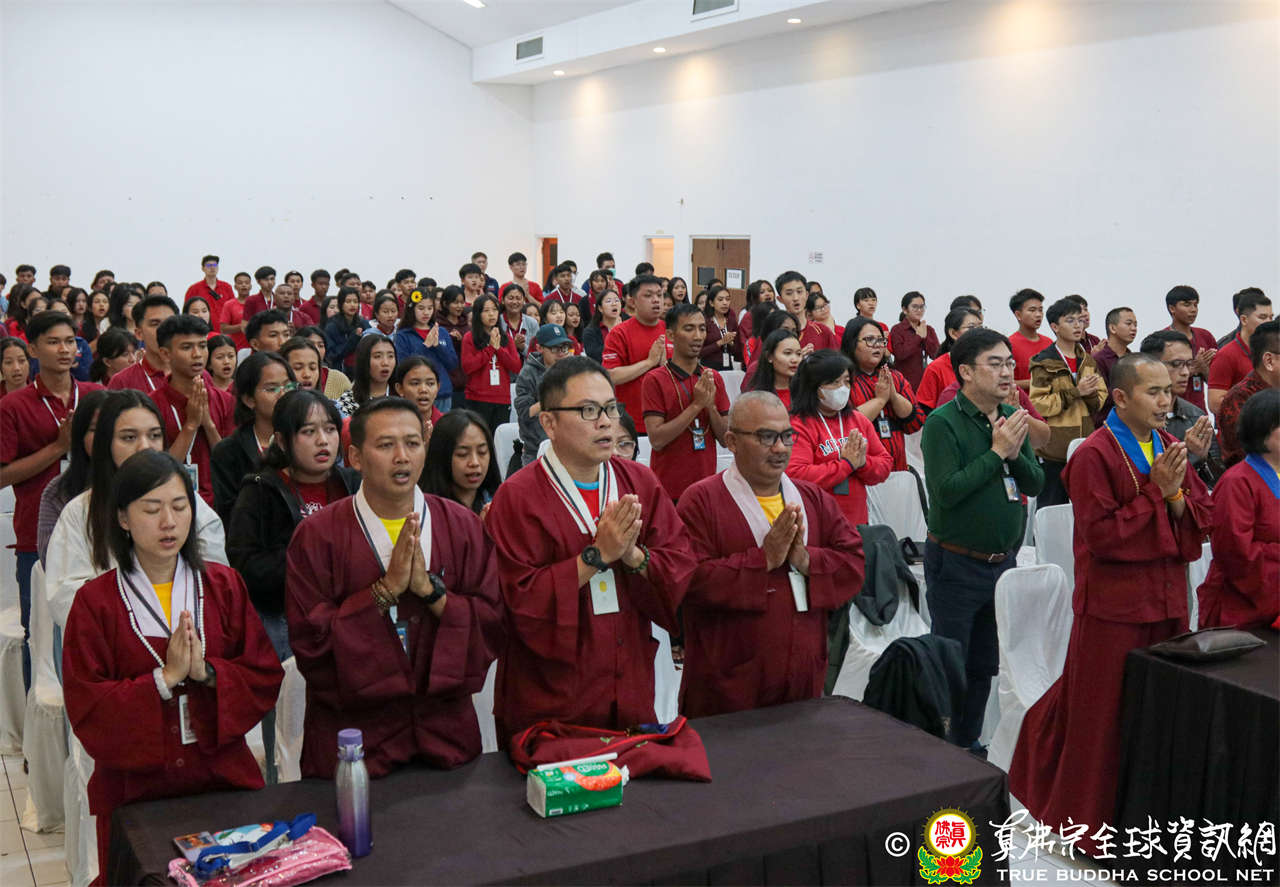 2024年印尼真青會全國密法生活營開幕典禮,由中爪哇佛教司長Karbono先生主持,陪同的有中爪哇WALUBI分會會長Tanto先生,印尼真青會會長陳召財先生,釋蓮飛上師,釋蓮㻟法師,來自各地的講師,助教。開幕典禮上有許多表演節目,都是附近道場的佛學班學生來表演的,有傳統舞蹈及武術表演。武術表演的學員Jasmin,參加過全國性的武術比賽,曾經多次得獎。最後由Karbono先生敲鑼,釋蓮飛上師祈禱後,活動正式展開。
