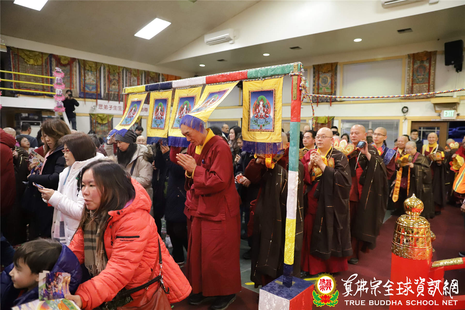 2020年01月12日下午,美國西雅圖彩虹雷藏寺恭請根本上師蓮生活佛盧勝彥主壇虛空藏菩薩護摩大法會。蓮生法王將於2020年2月1日(星期六)下午2點,在彩虹雷藏寺主持春季傳法護摩大法會,並首傳「依喜措嘉佛母本尊法」暨灌頂。是日,彩虹雷藏寺為此殊勝法會舉行隆重的請法儀式,丹增加措上師敬獻蓮花童子金身、蓮印上師敬獻哈達及供養、蓮滿上師敬獻依喜措嘉佛母金身、蓮僧上師敬獻依喜措嘉佛母腳印、蓮晴上師敬獻法王寶冠及龍袍、蓮萬上師敬獻金剛鈴杵、蓮喜上師敬獻純銀灌頂瓶、蓮傳上師敬獻人皮手鼓、蓮花璧珍上師敬獻珍貴唸珠、蓮友上師敬獻法輪、蓮久法師敬獻法螺、蓮員法師敬獻八吉祥及水晶蓮花、蓮喜上師代表向師母敬獻鮮花,請法儀式隆重莊嚴。當請法儀式一開始時,虛空降下很大的冰雹,之後,整個現場都感受到很大的加持力及莫名的感動湧上心頭,現場的人都有這樣感受,天現瑞相,非常殊勝。