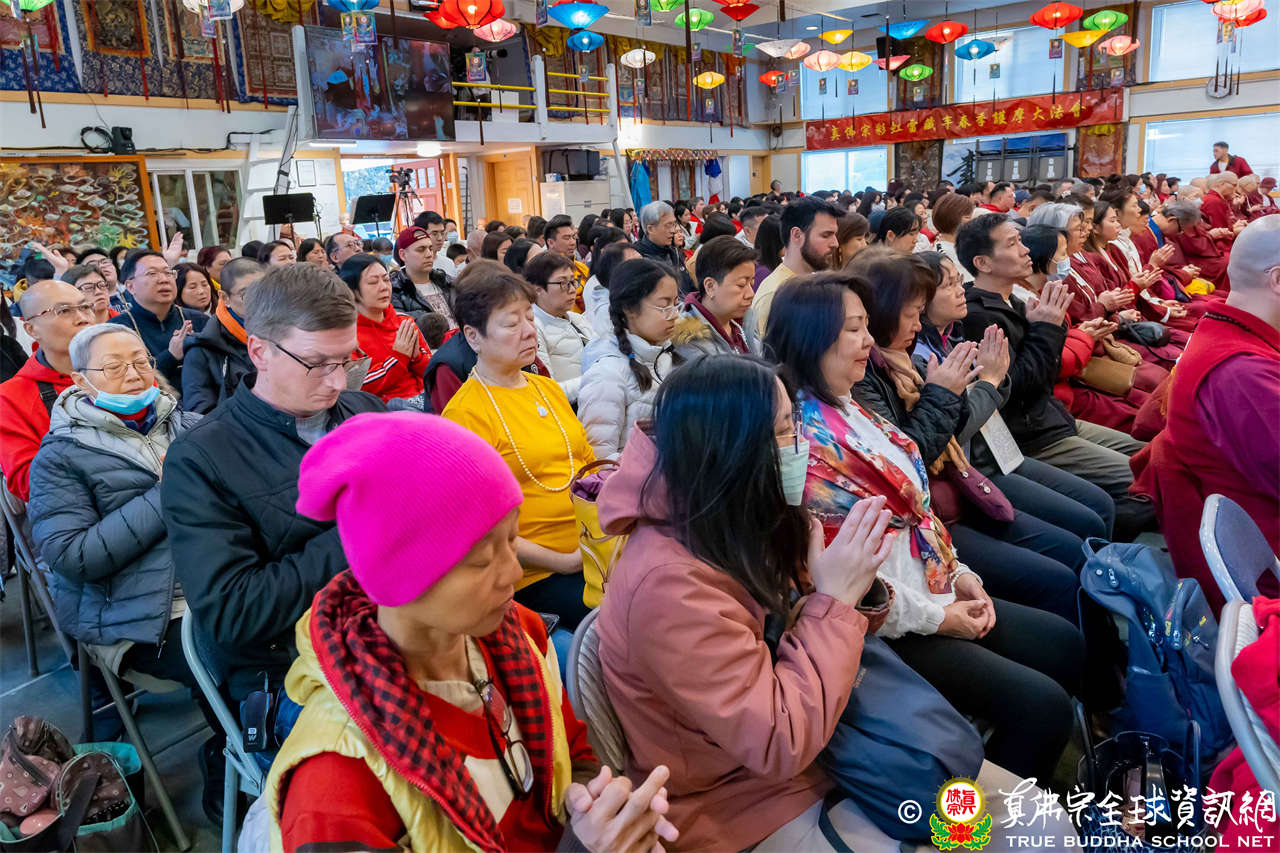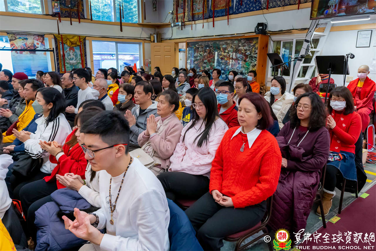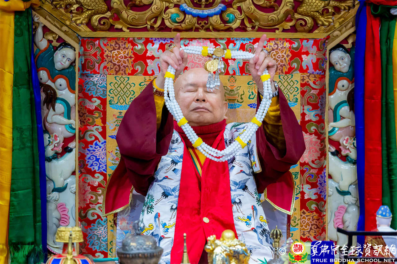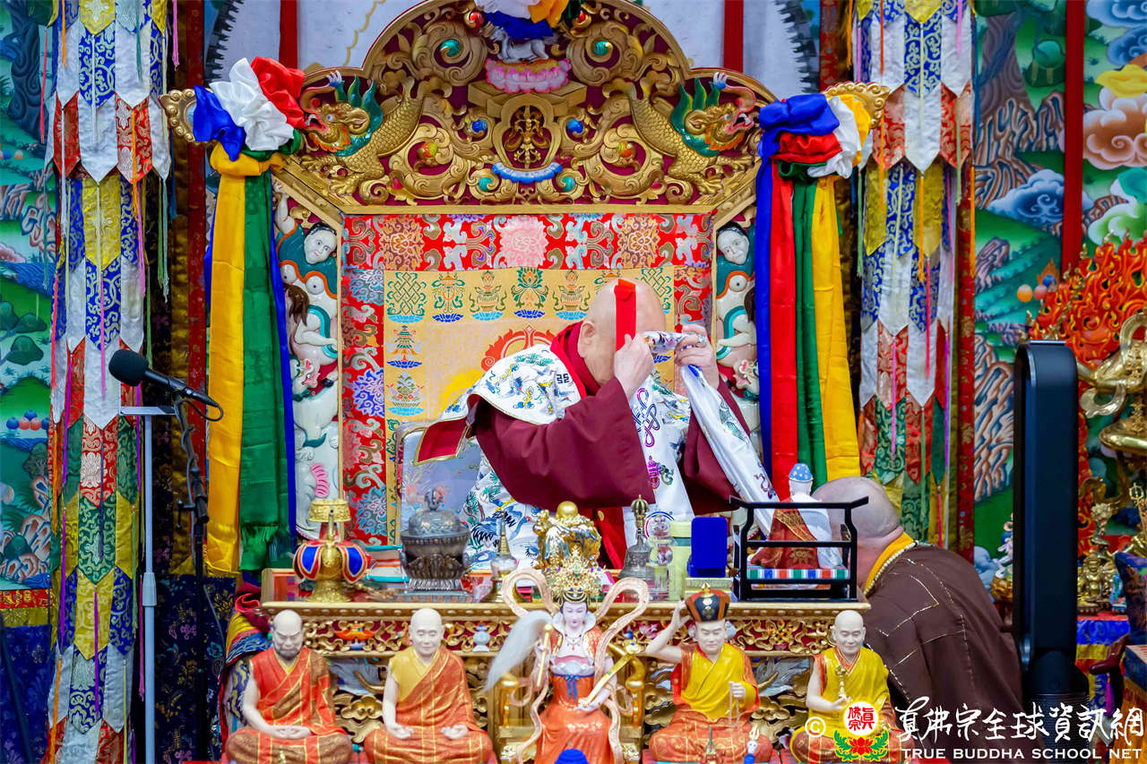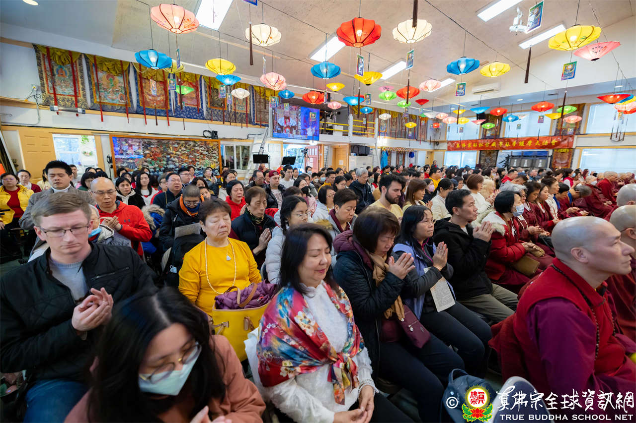 法王開示畢,衆人報以熱烈掌聲感謝。接著法王下座與綫上弟子互相問候,並為與會大衆賜授彌勒菩薩法灌頂。法會至此圓滿結束。