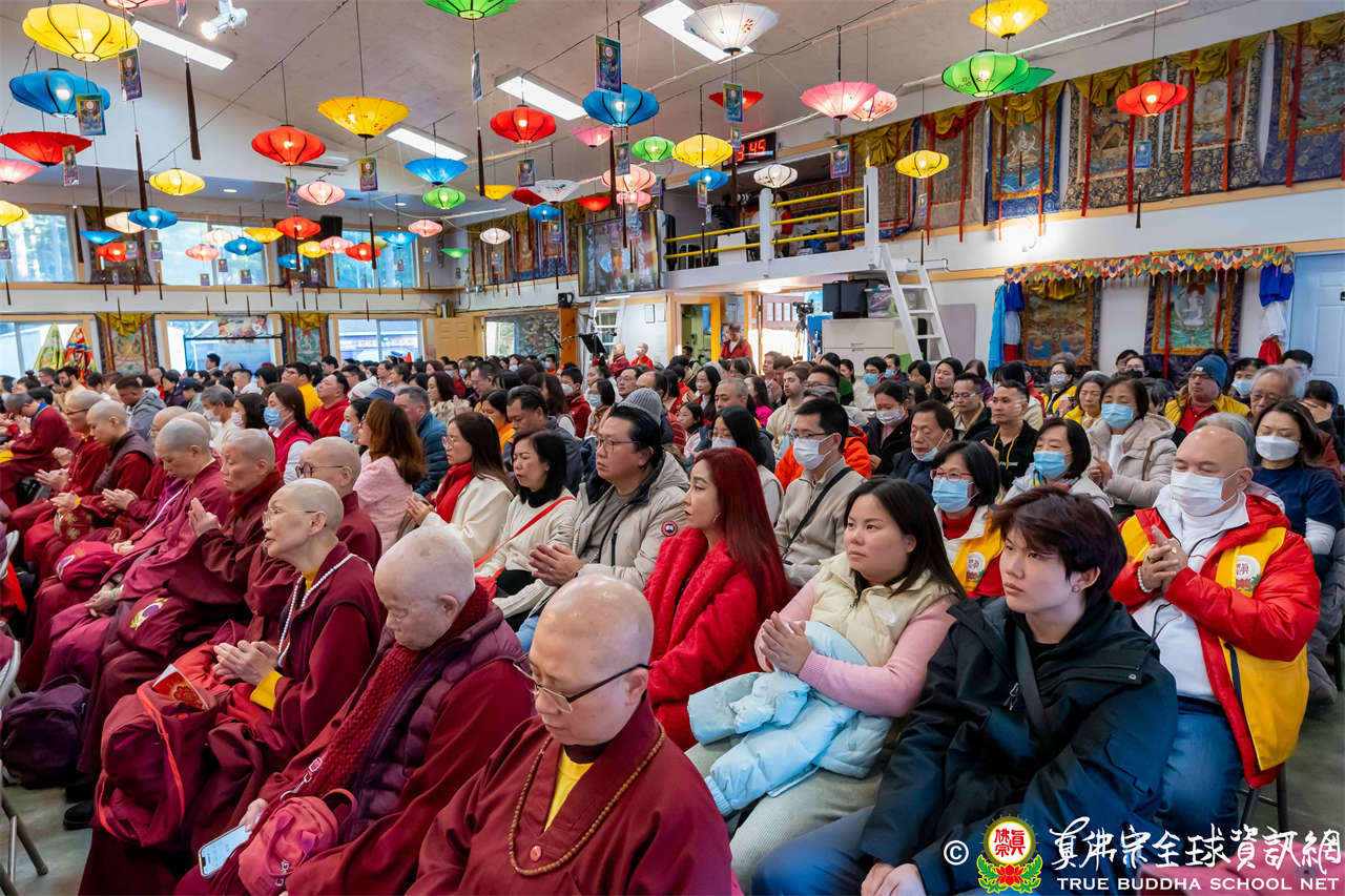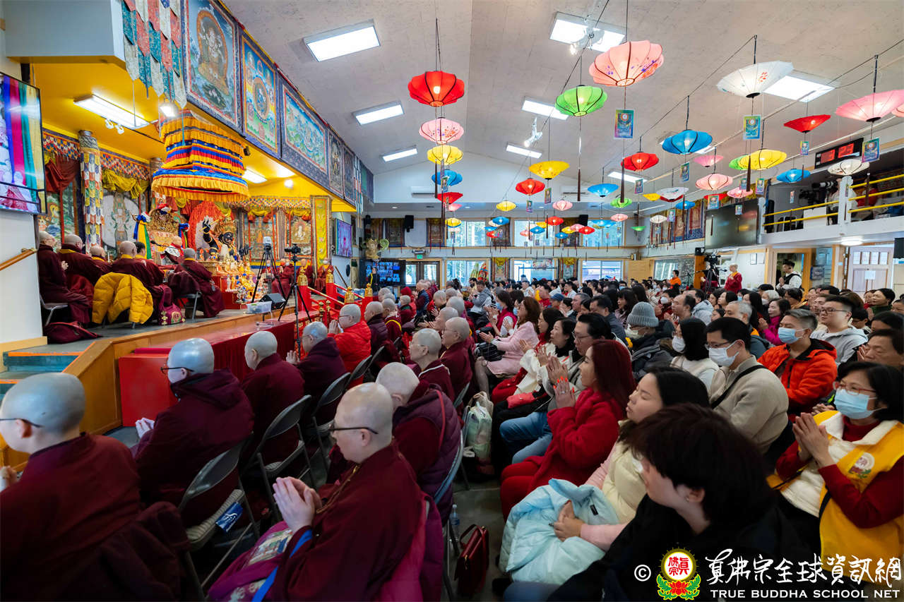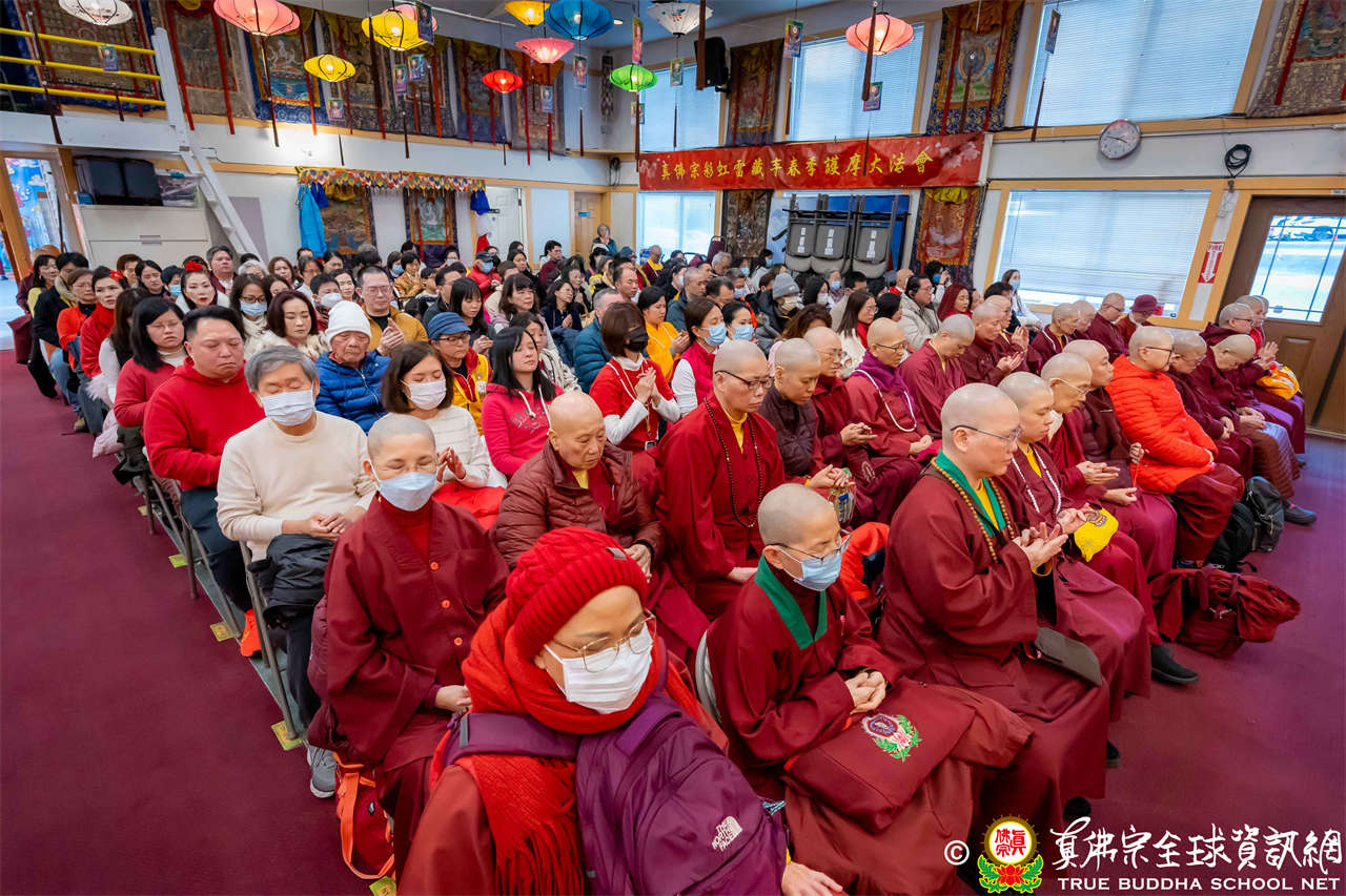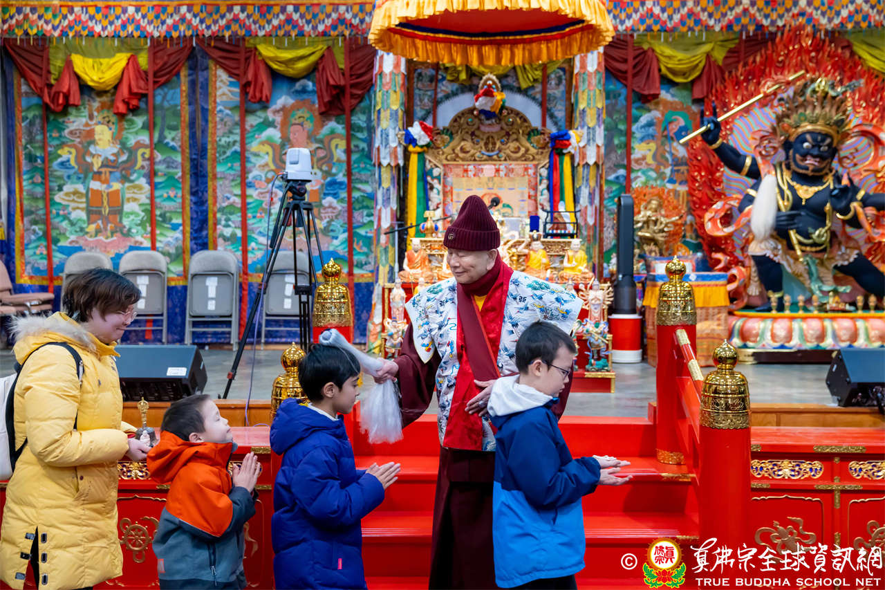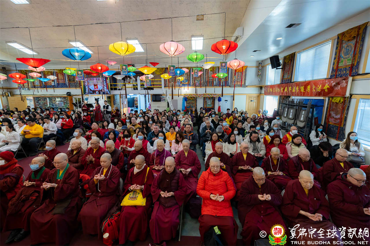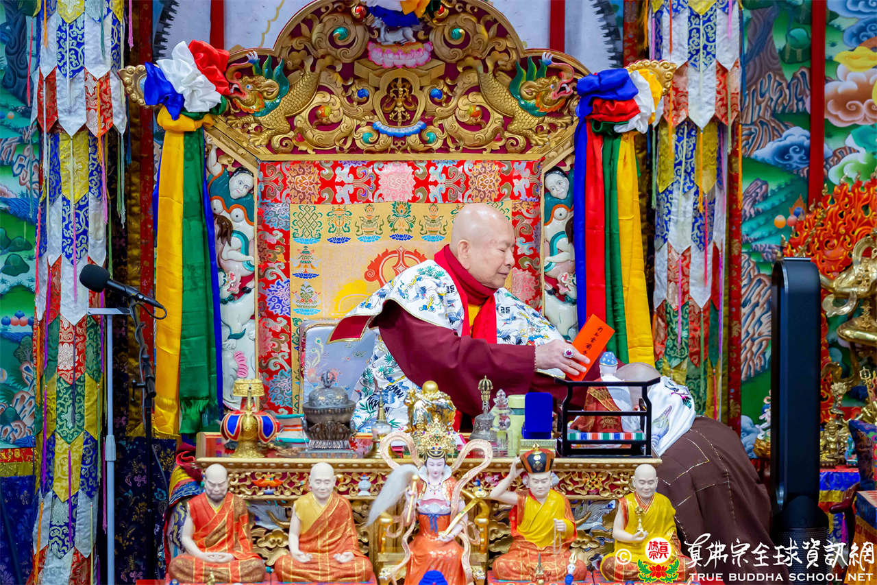 法王開示畢,衆人報以熱烈掌聲感謝。接著法王下座與綫上弟子互相問候,並為與會大衆賜授彌勒菩薩法灌頂。法會至此圓滿結束。