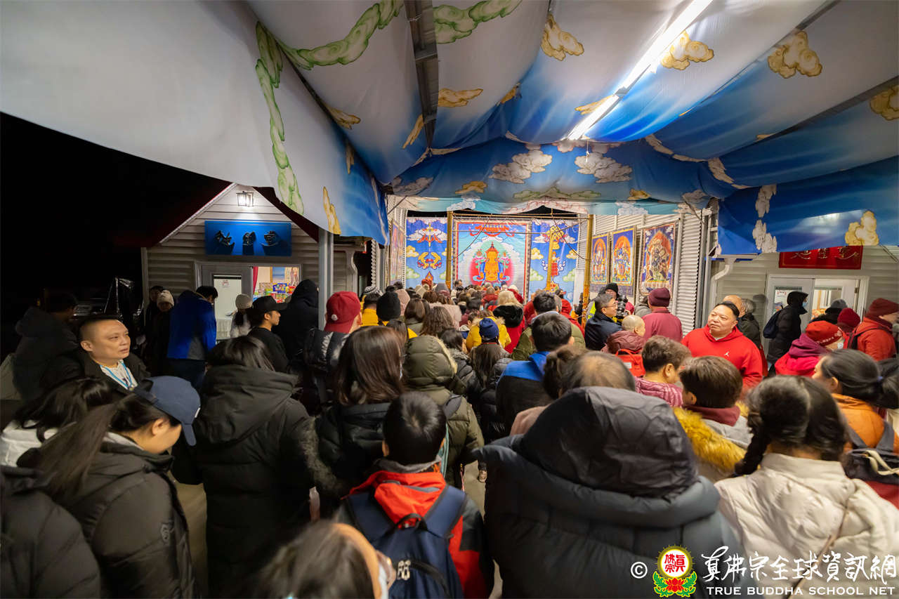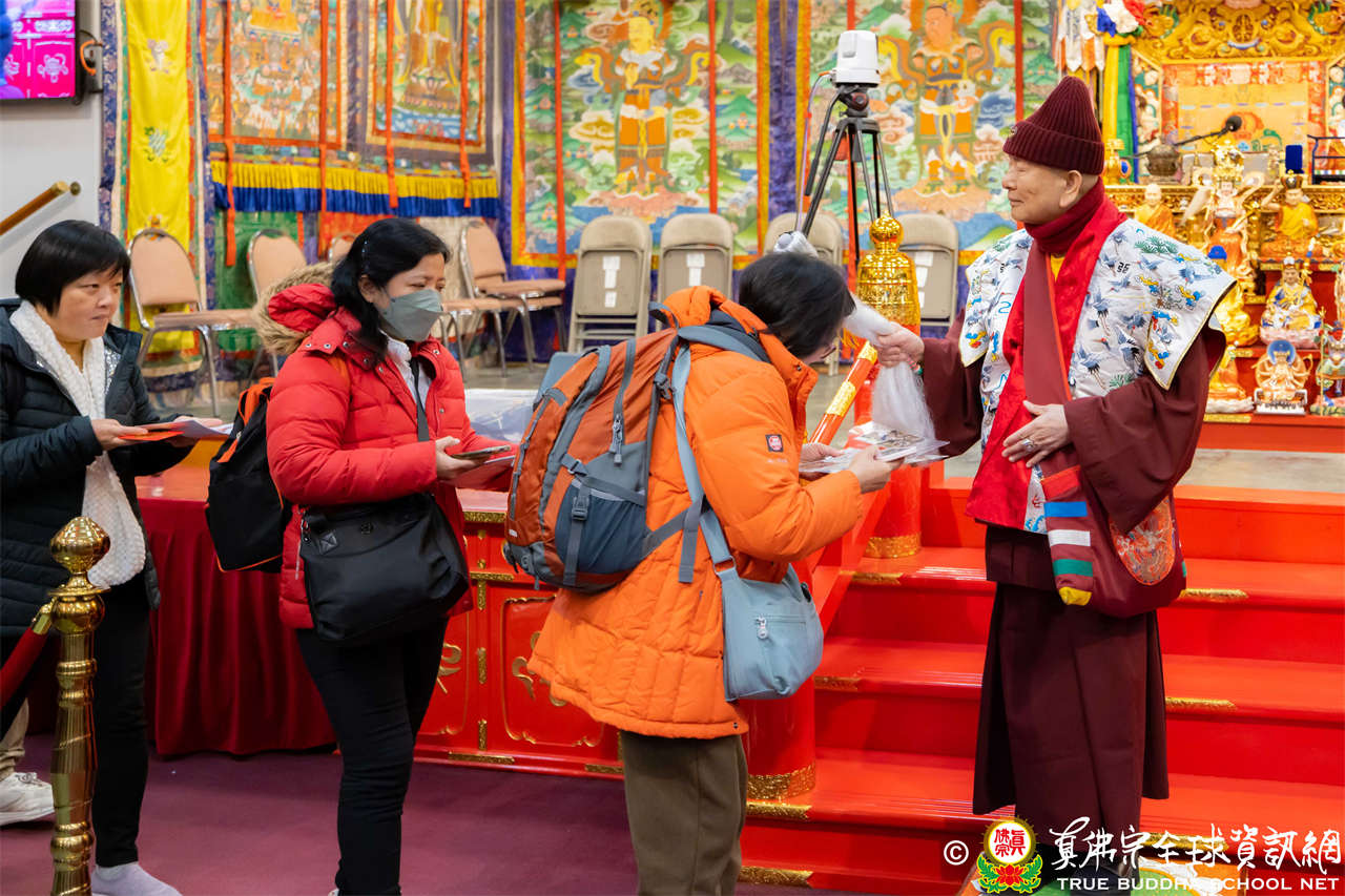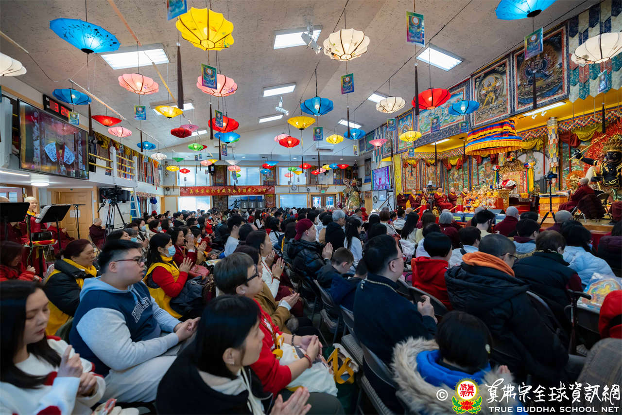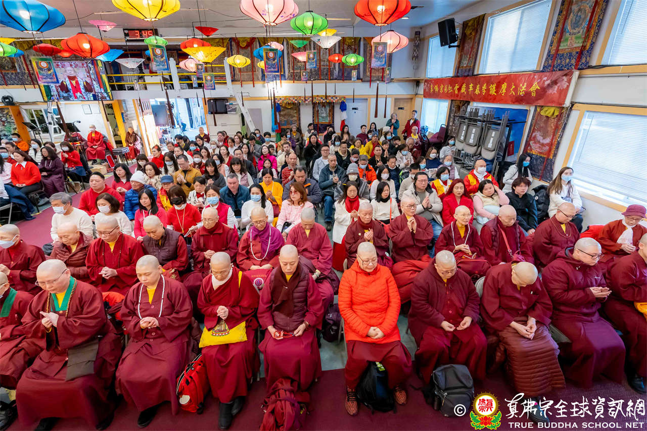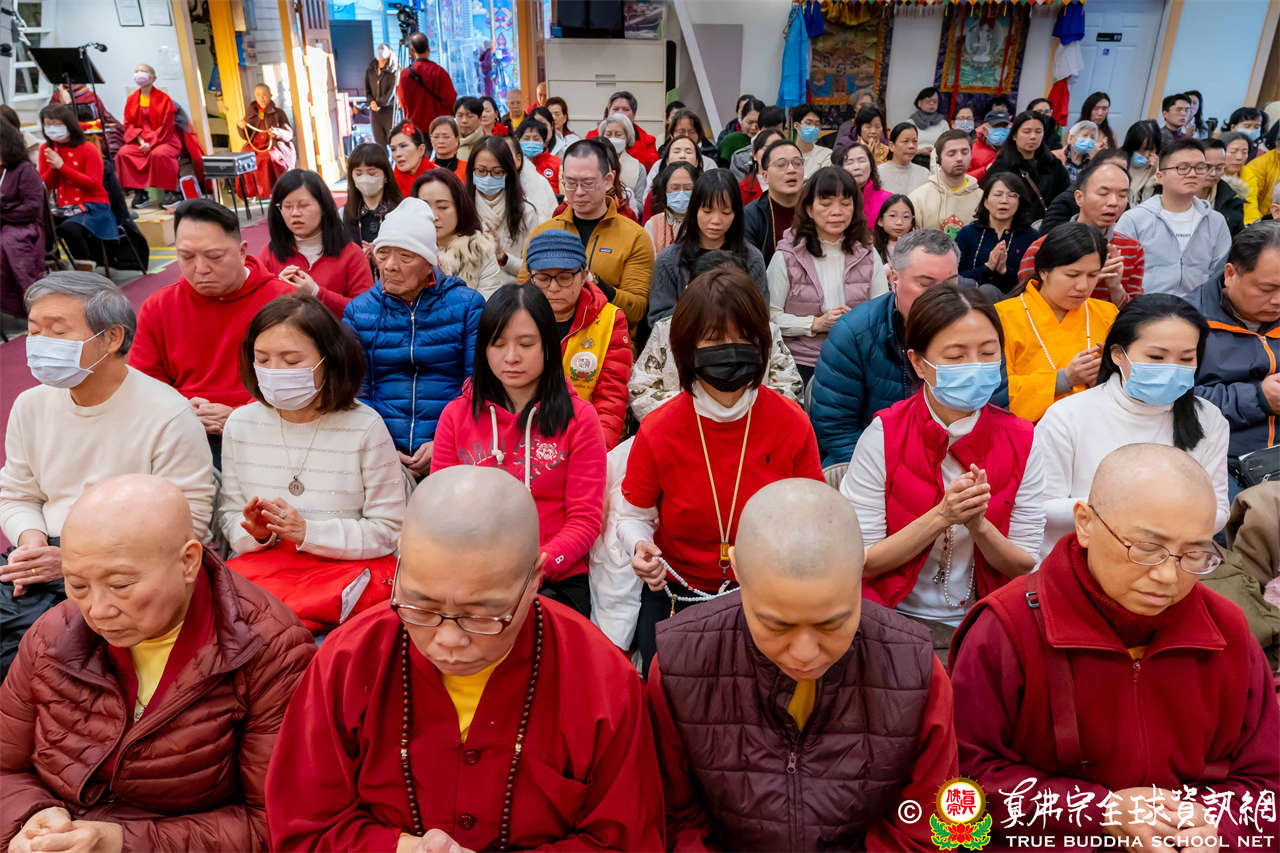 法王開示畢,衆人報以熱烈掌聲感謝。接著法王下座與綫上弟子互相問候,並為與會大衆賜授彌勒菩薩法灌頂。法會至此圓滿結束。