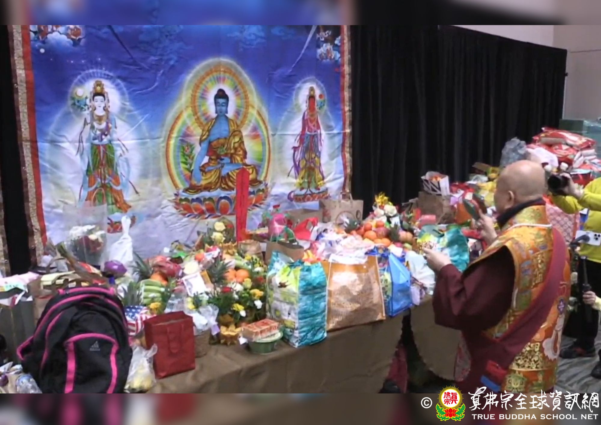 當聖尊抵達會場時,聖尊加持了延生位以及往生位,也巡視了每個攤位,給弟子們攤位的佛具進行加持,聖尊與大眾都充滿了歡喜心。