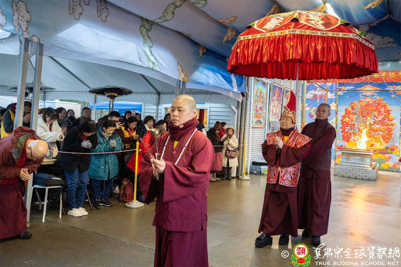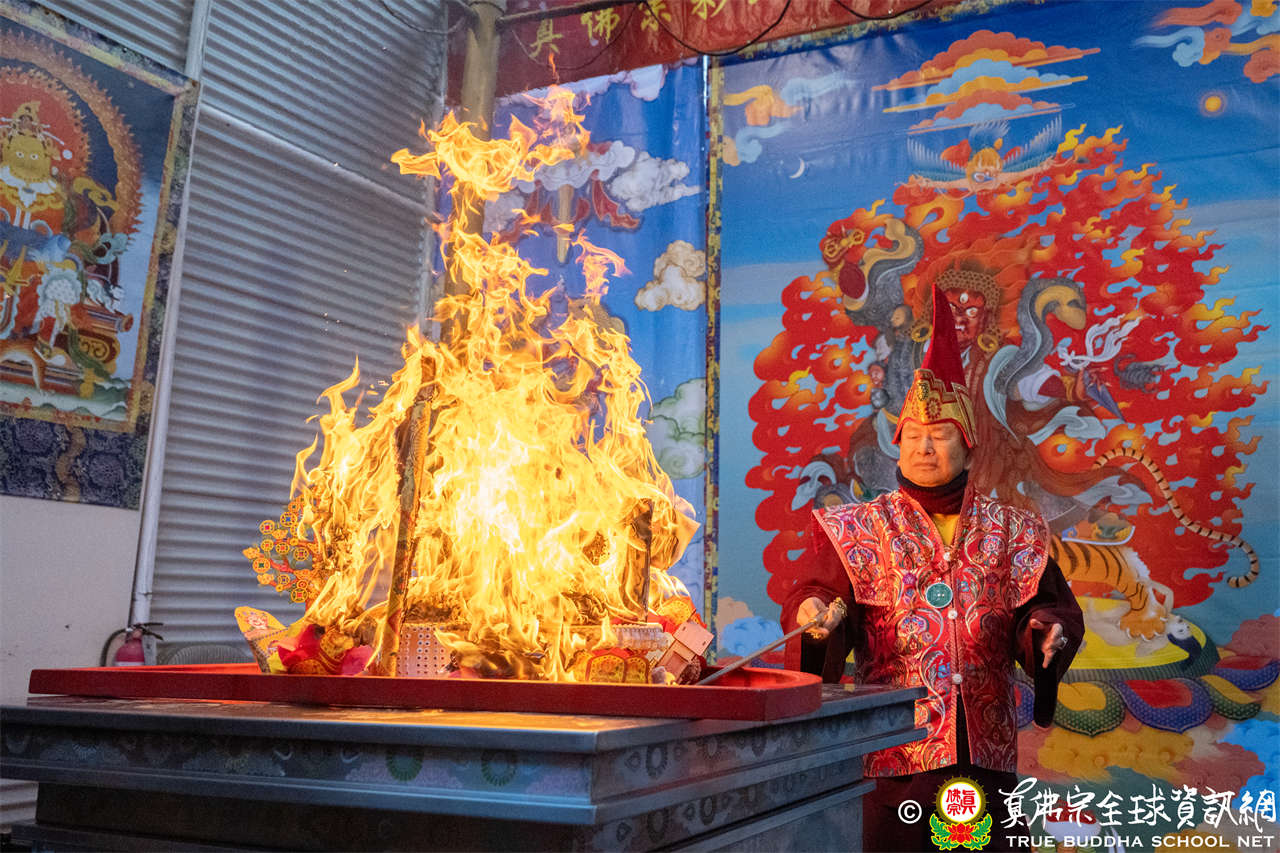 法會最後,法王感謝弟子在天寒地凍天氣仍然來參加法會。法王希望「藥王度母」與「多杰左烈」加持大家。一位是用水清淨大家,一個是用火燒盡大家的業障。如此來解除大家的病痛,煩惱與不好的運氣也燒盡。蓮生活佛也宣布2月16日將舉行「不空羂索觀音護摩法會」,祈願所求不空,消除障礙,願眾生福慧增長、平安健康。