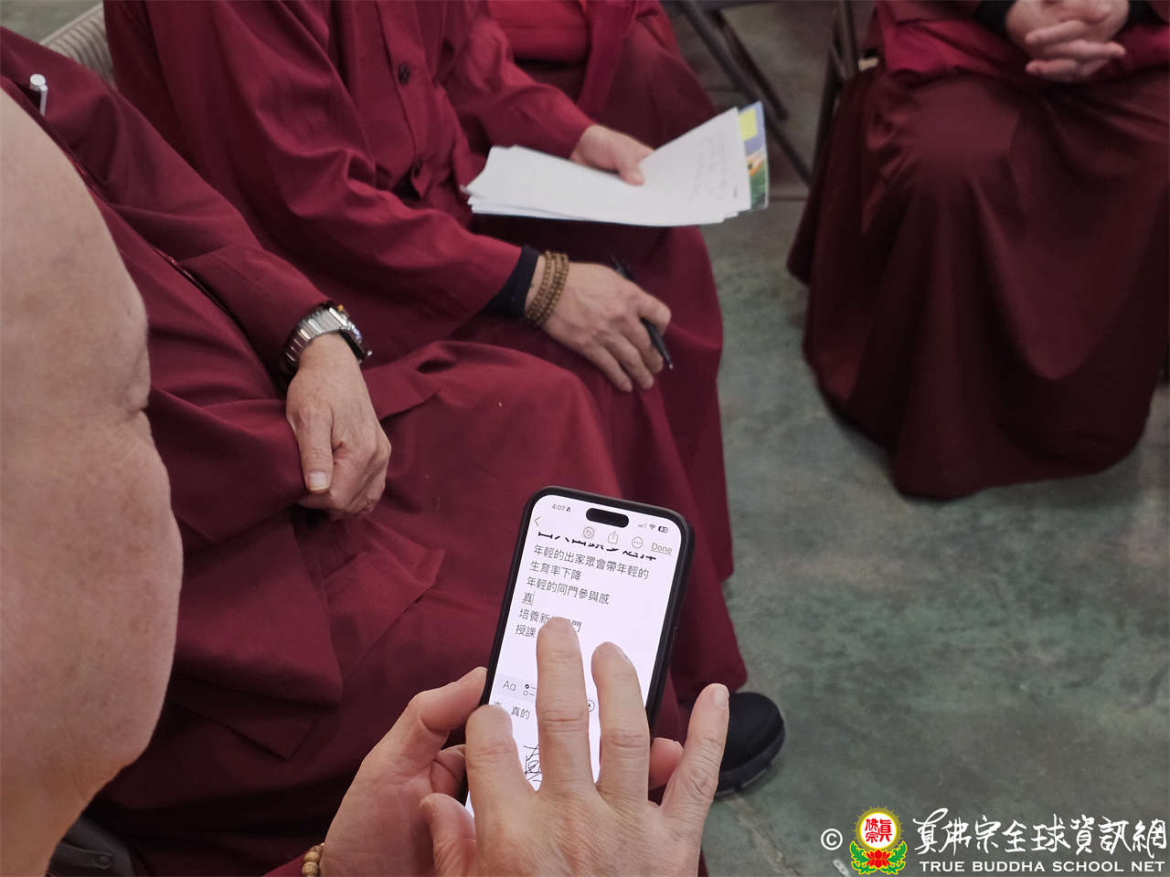 蓮碤上師代表報告:本組成員來自五個國家,是各組成員中唯一沒有上師缺席的一組,人數是最多的,有來自美國、印尼、台灣、馬來西亞、巴西等國家。對於本次主題:真佛道場怎樣培養優秀的弘法人員?尤其是真佛僧眾?經過一番討論後,可以歸納為以下幾個重點: