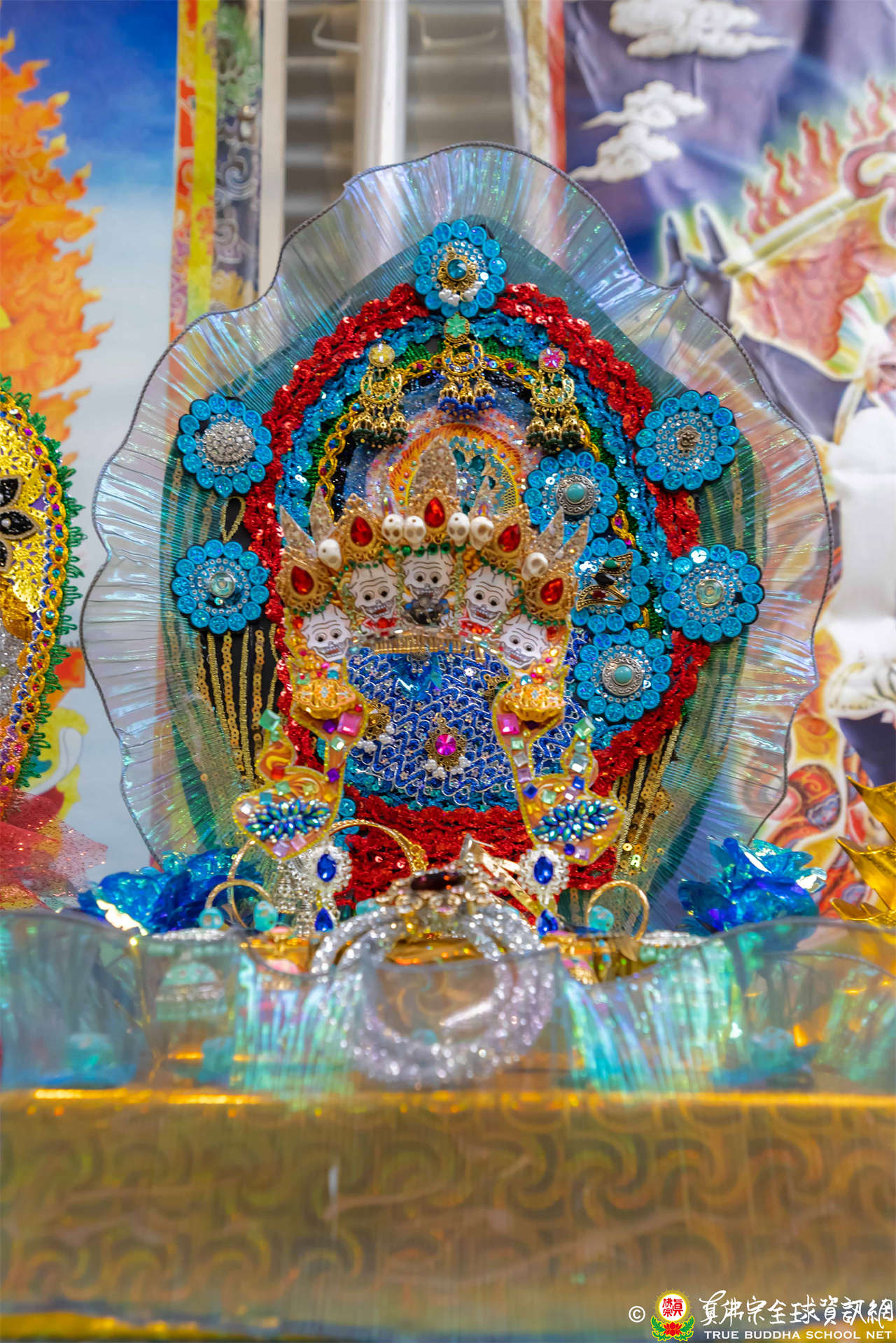 「西方蓮池海會。摩訶雙蓮池。十八大蓮花童子。白衣聖尊。紅冠聖冕金剛上師。主金剛真言界秘密主。大持明第一世靈仙真佛宗。盧勝彥密行尊者。