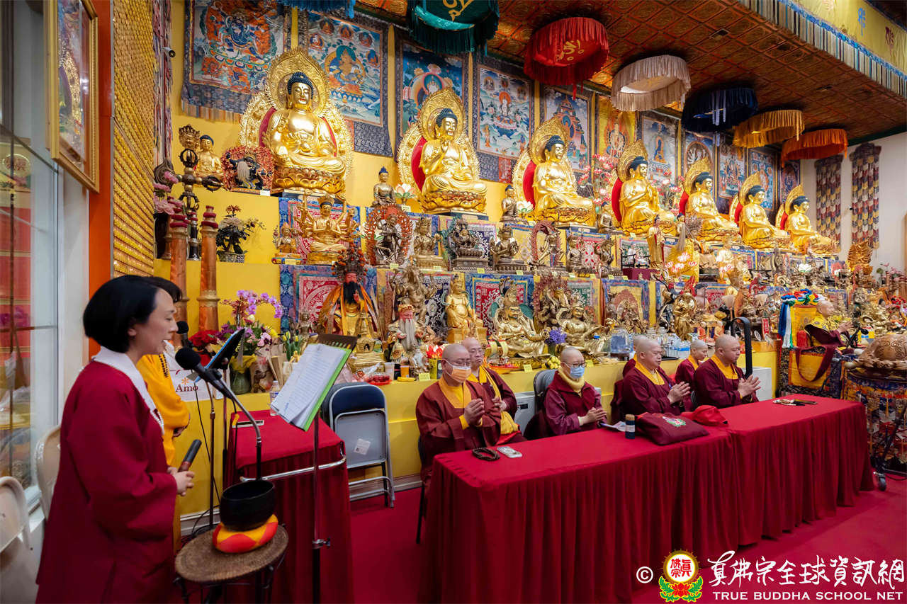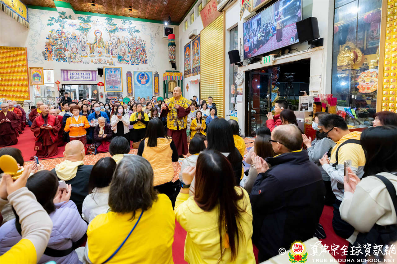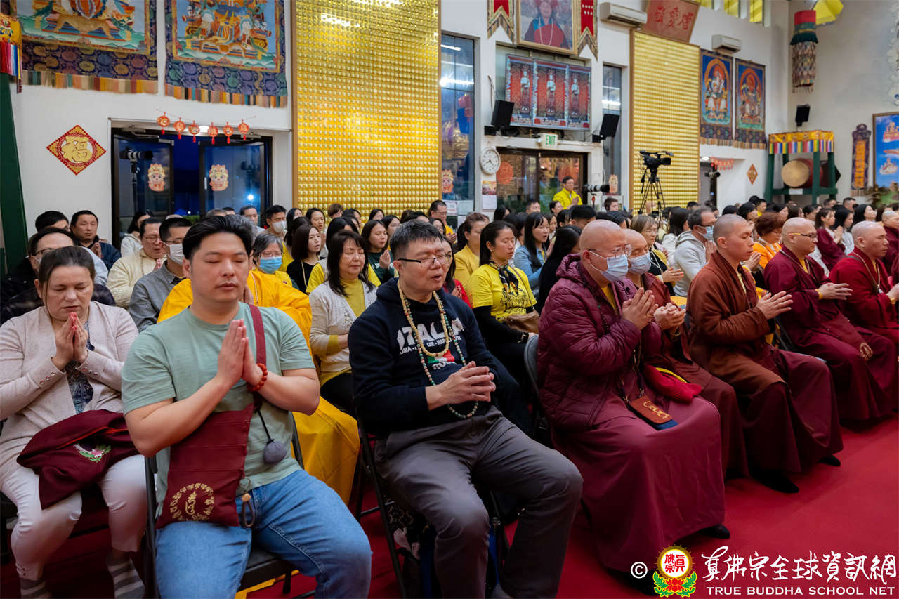 2025年4月19日晚上八時,美國西雅圖雷藏寺大雄寶殿裡,蓮生活佛盧勝彥帶領來自世界各地的四衆弟子,同修準提佛母本尊法並講授《大佛頂首楞嚴經》。