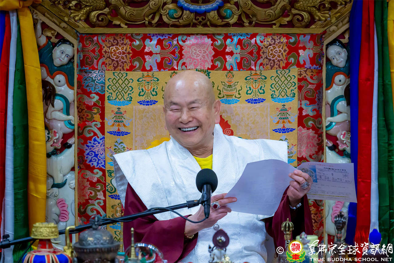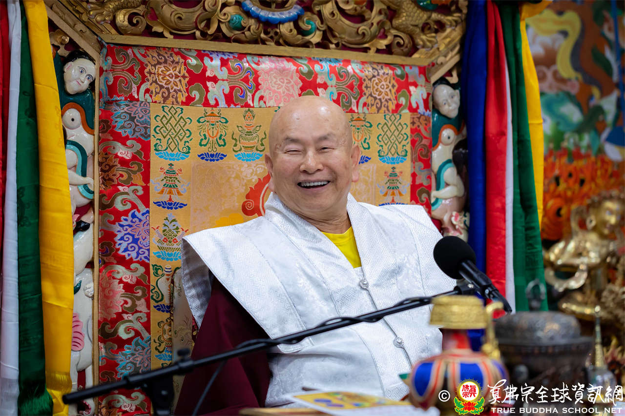 談及此,法王也提到身邊也正承受濕疹之苦的小嬰兒,「我跟小敬講,我跟你同病相憐,他就哭了,最淒慘的一次,他聽得懂。」法王也感謝各地弟子熱心寄來藥品,戲稱自己「可以開藥店」,並幽默提到屈臣氏雙V乳液大缺貨,也反映弟子們的一片孝心與真情。