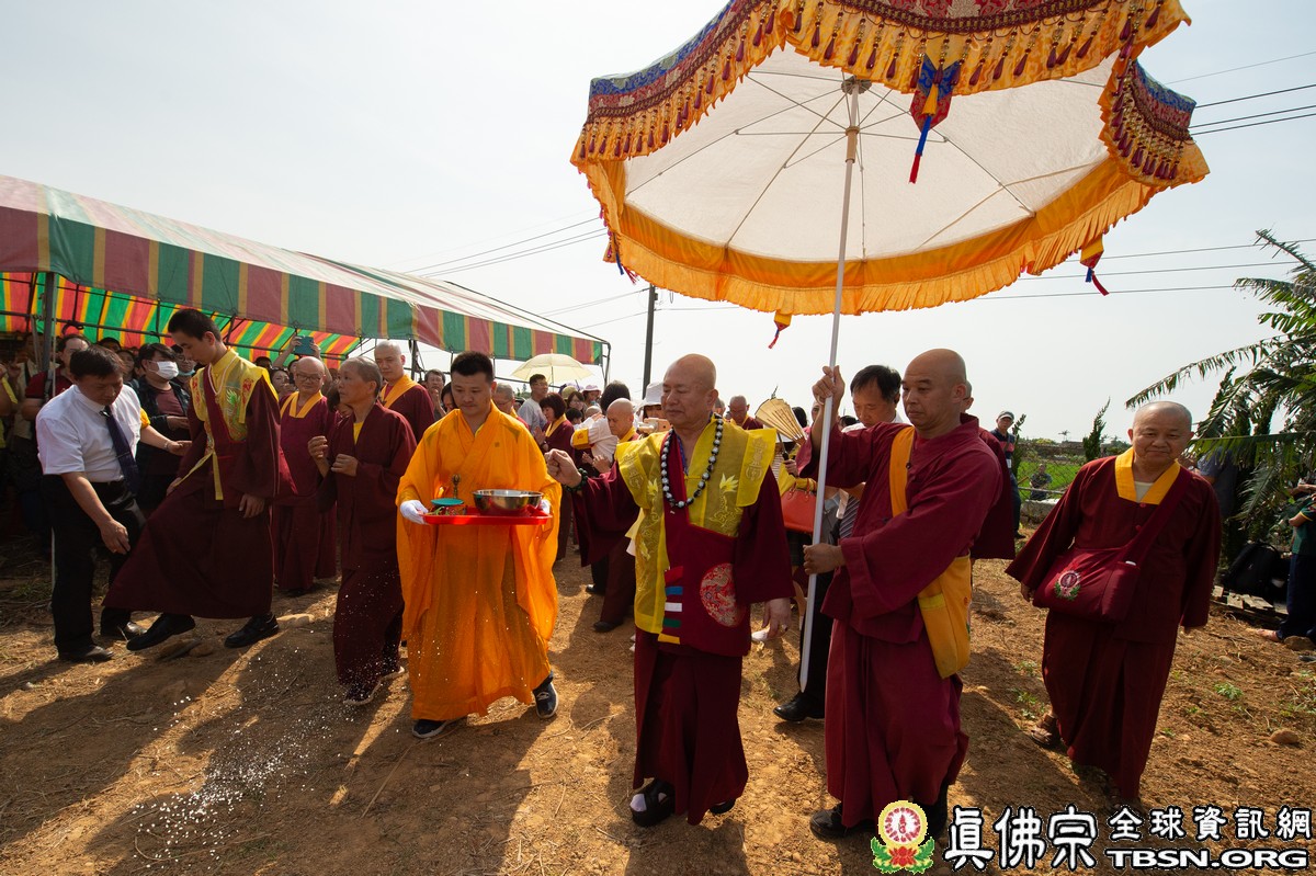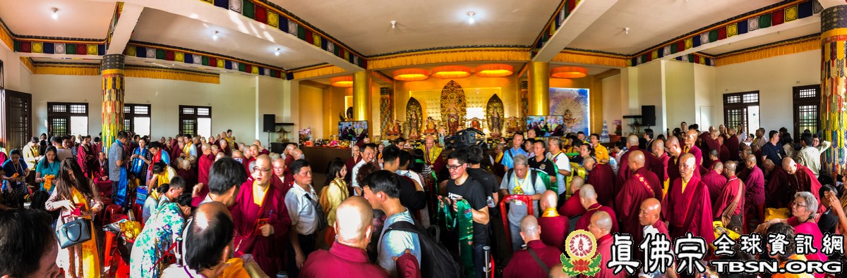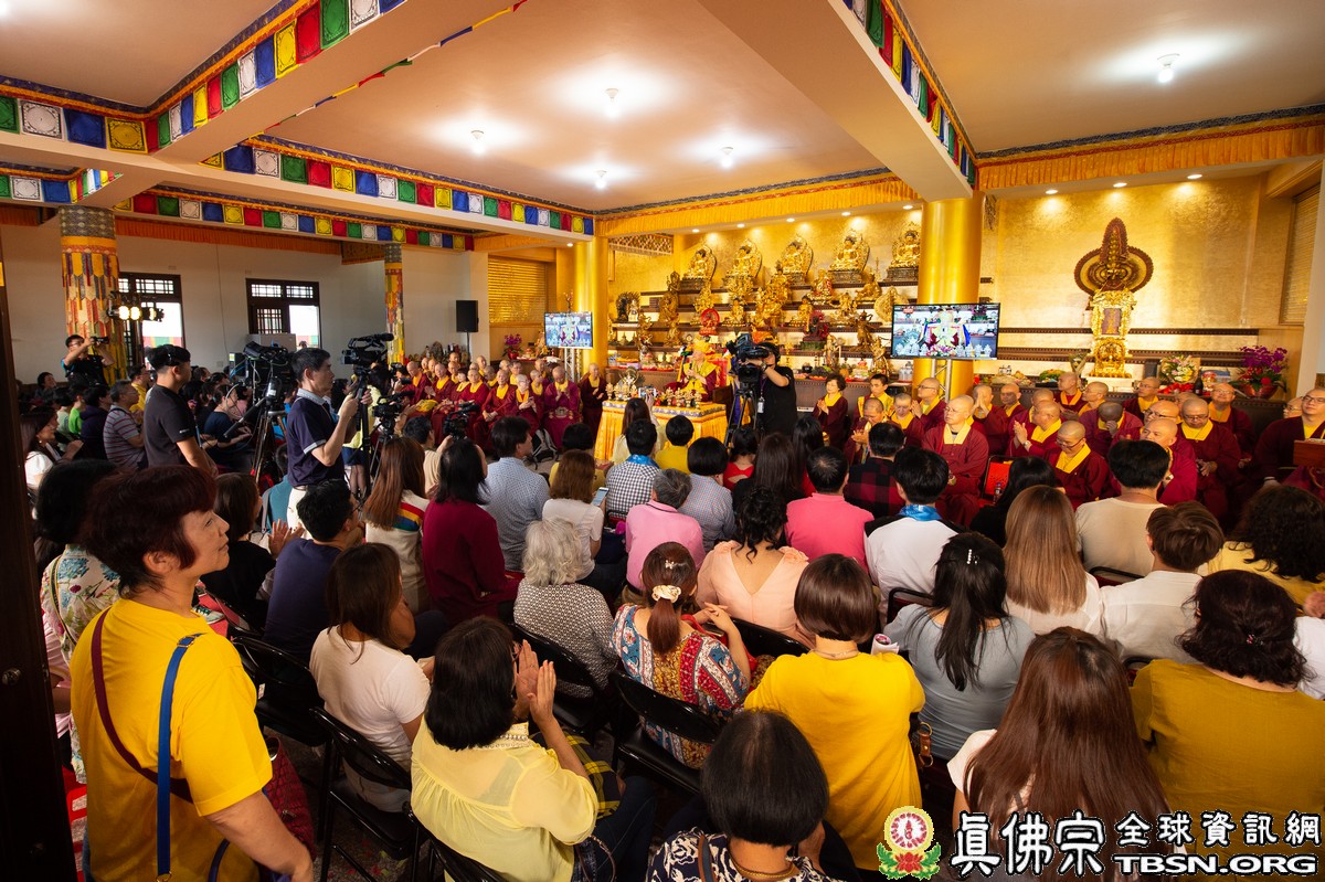 法王到達法記雷藏寺後,即為雷藏寺主持剪綵典禮及作灑淨結界,賜墨寶和慈悲接受600多位主祈者敬獻哈達,並替法記雷藏寺壇城開光。