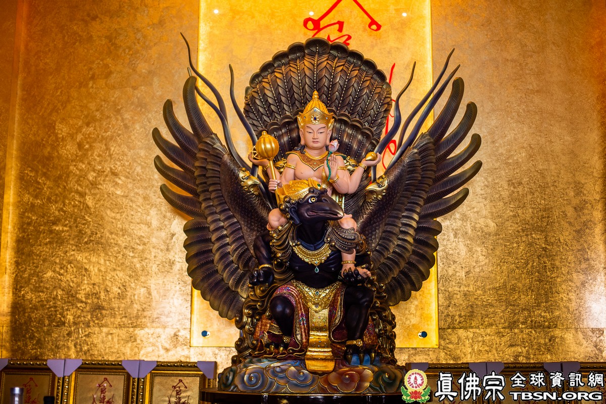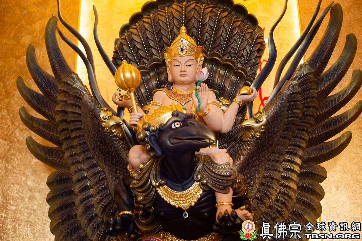 印度教有三大神,「創造」、「破壞」及「保護」。創造神──大梵天。破壞神──大自在天。保護神──遍淨天,以這三大神為印度教的哲學。而紅財神也就是大自在天的兒子,跟在紅財神身邊的則是妙音天女。法王表示現場有兩位妙音天女的化身:一位是木雕藝術家簡政興先生的女兒簡娘玉、另一位是蓮妙上師。