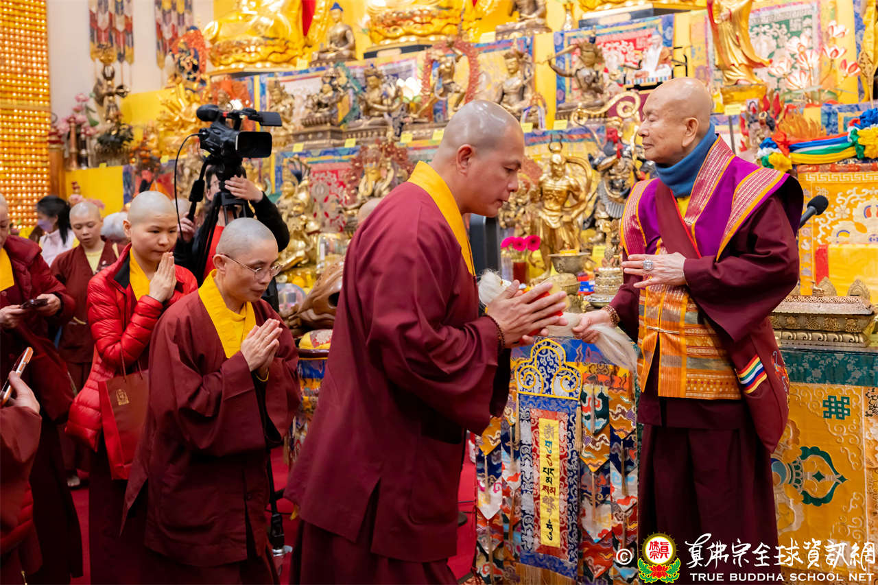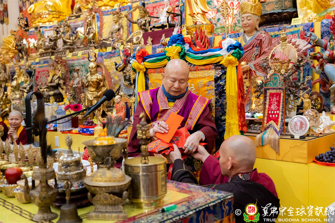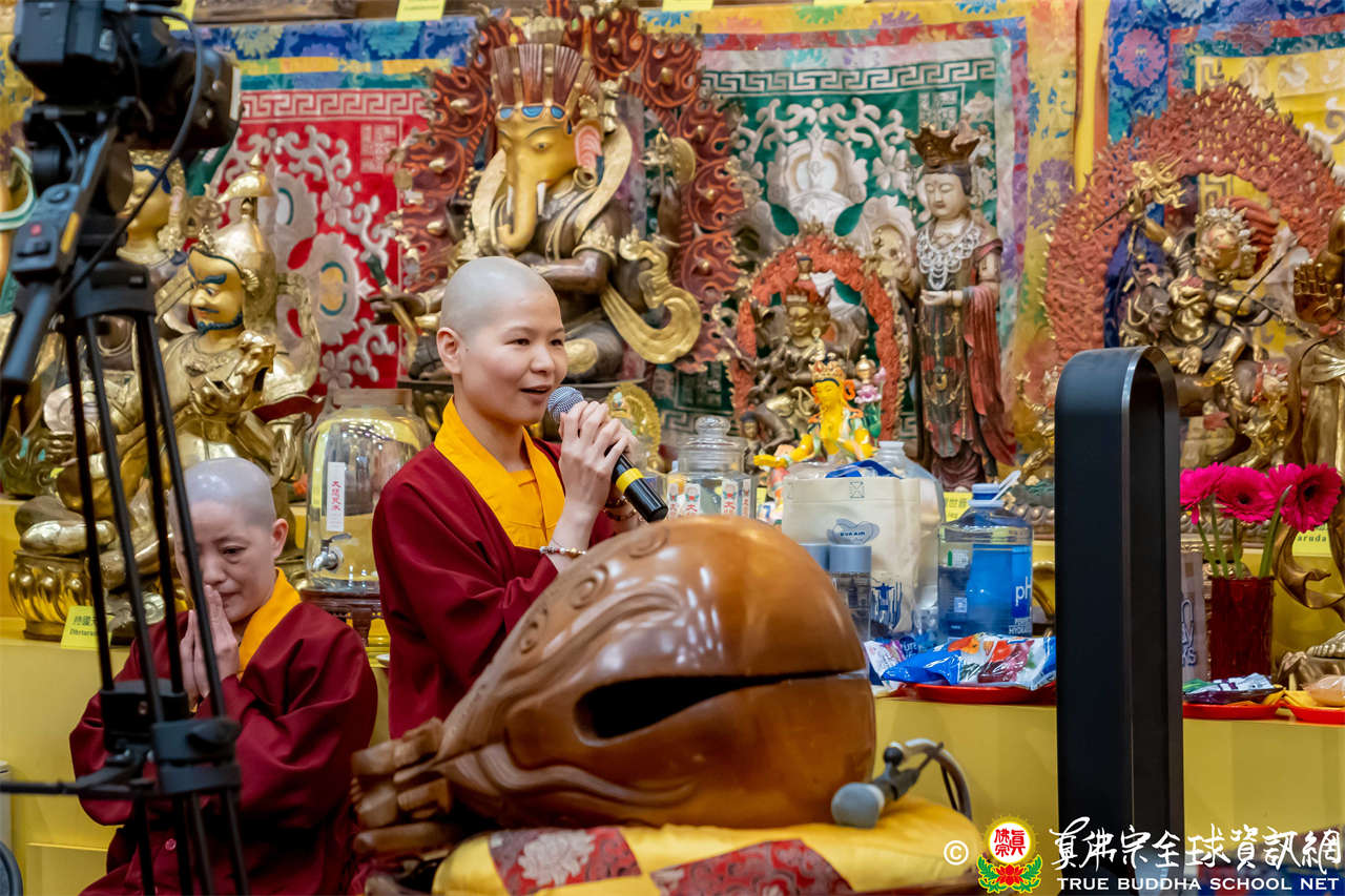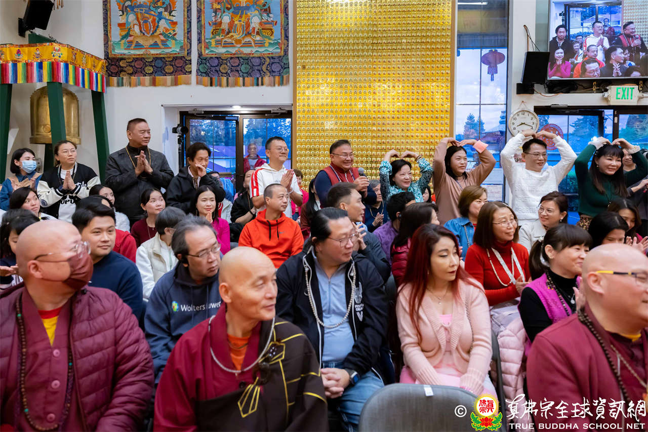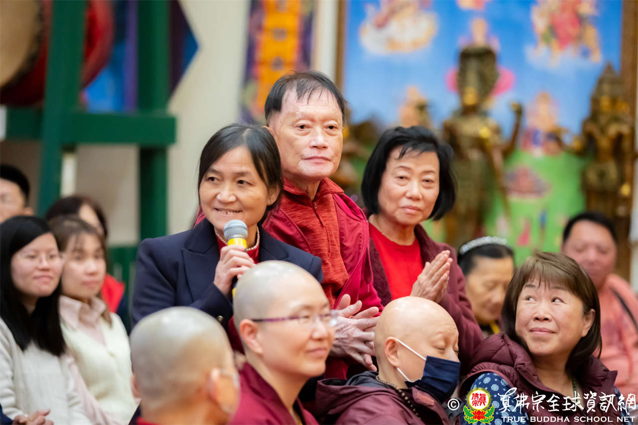 在講述楞嚴經後,聖尊為求皈依的信眾賜授皈依灌頂,加持大悲咒水及開光佛像,並以拂塵加持與會大眾。聖尊教導佛法真義,四眾弟子心開意解,法喜充滿,蓮華生大士的加持與顯現亦令與會眾等歡欣鼓舞,只要敬師重法、實修不懈,蓮師常在,佛光永照。