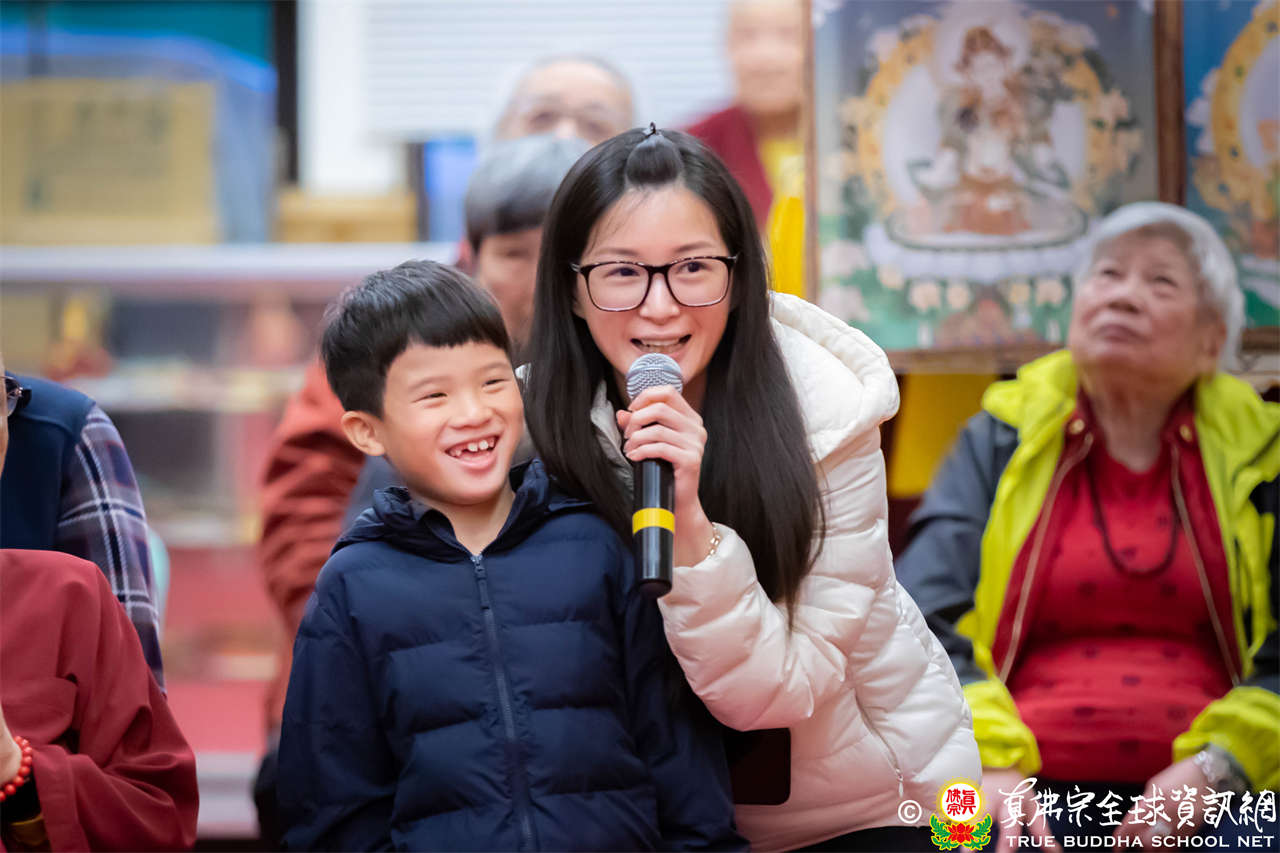 聖尊請在座的同門見證,其中有蓮彥上師、蓮喜上師,及來自新加坡的蓮花家欣師姐,分享各自看見蓮師現身放光給大眾加持的種種神蹟。