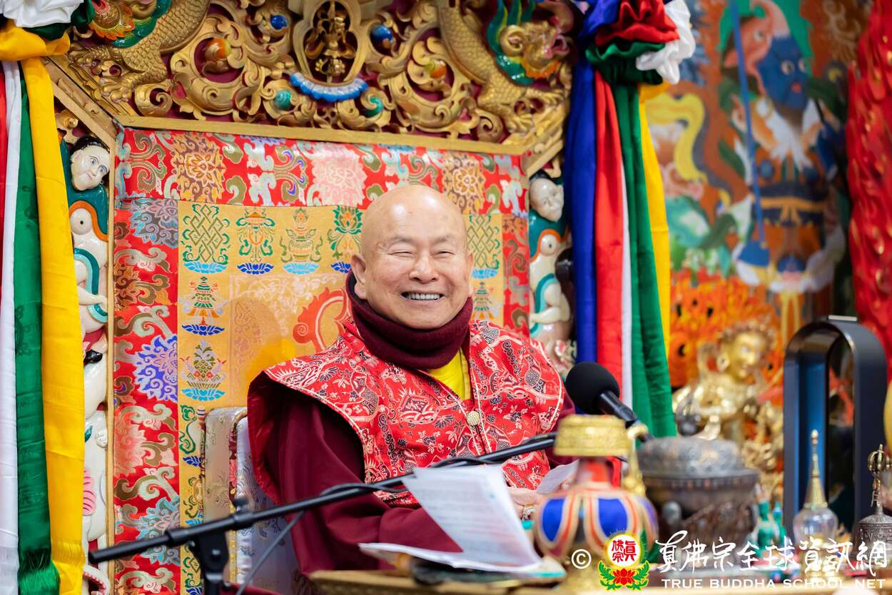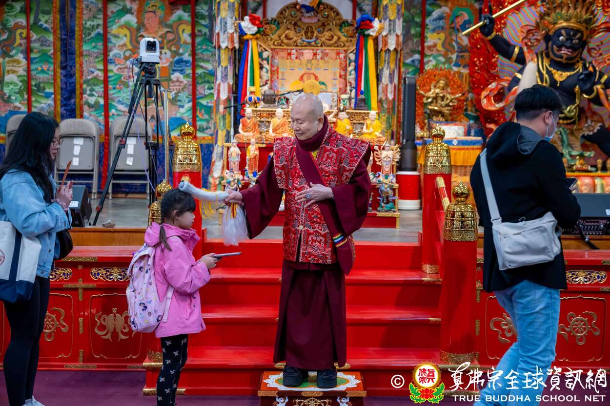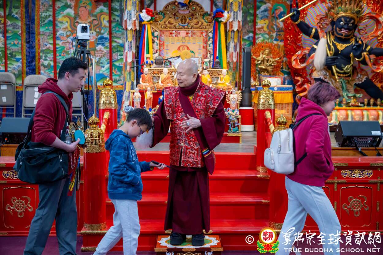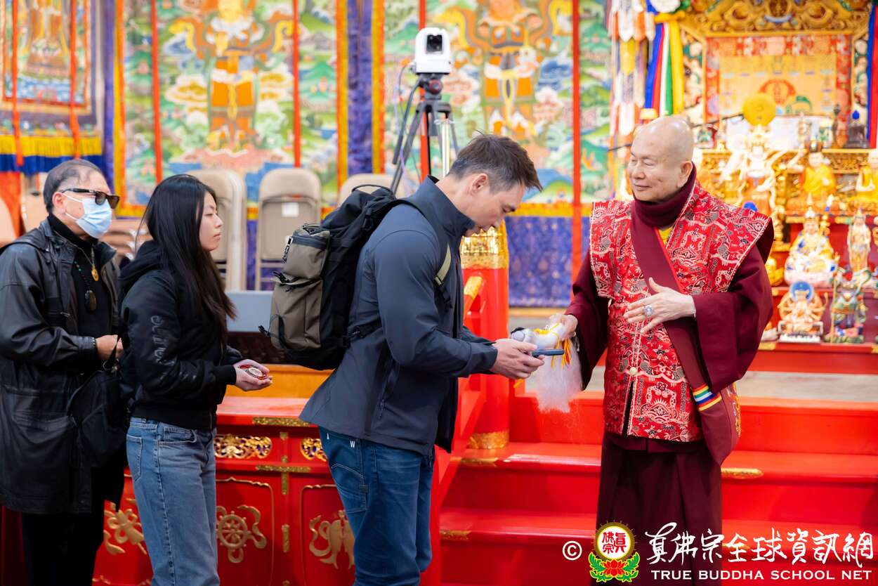 法會的結尾,法王分享師母術後復原的情況,表達對其痛苦的感同身受。法王表示,師母因手術需長達三到六個月的恢復期,無法參與上師團的弘法行程,僅能靜養於家中。所幸一雙子女佛奇與佛青24小時輪流照顧師母,展現出深厚孝心,讓法王深感欣慰,也肯定他們在西方長大仍保有東方傳統美德。