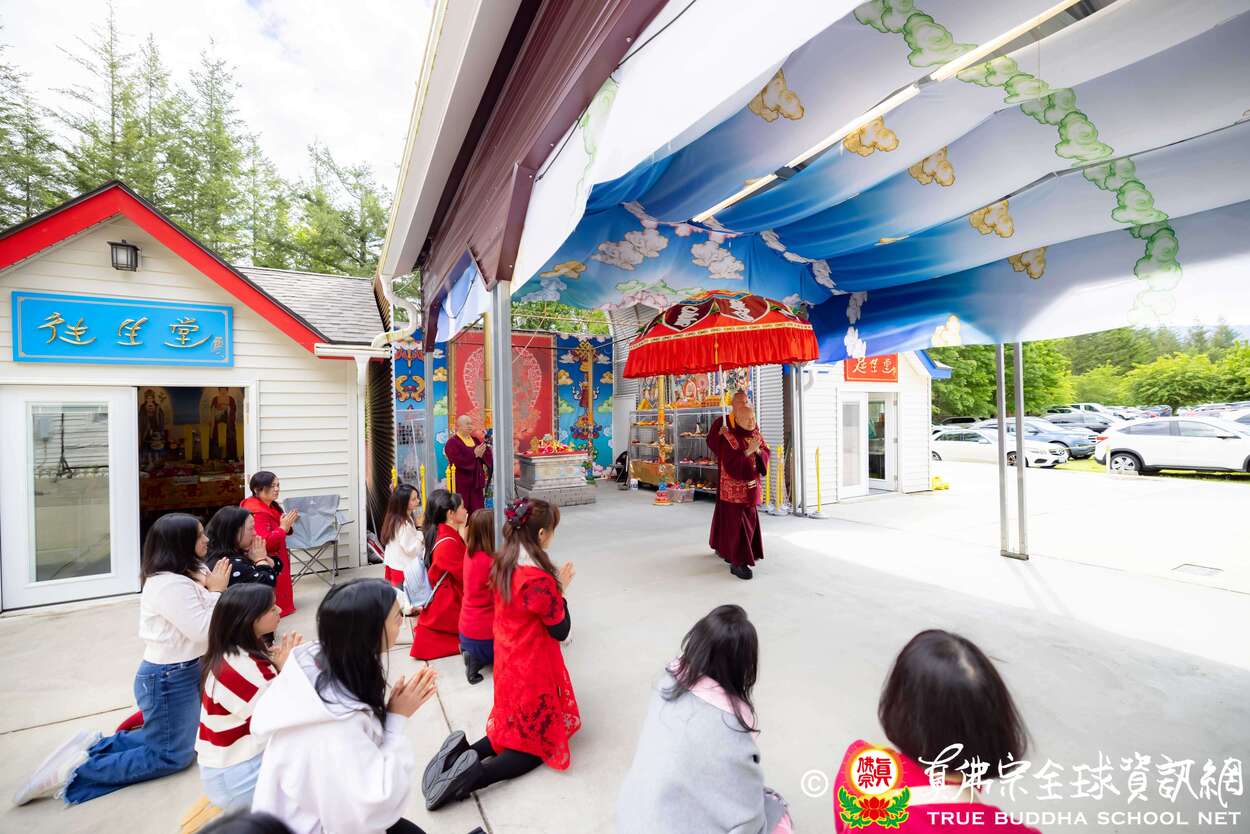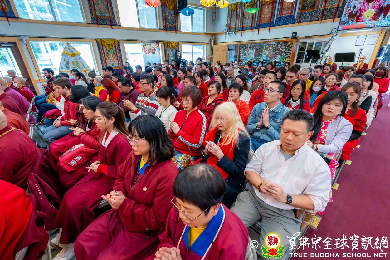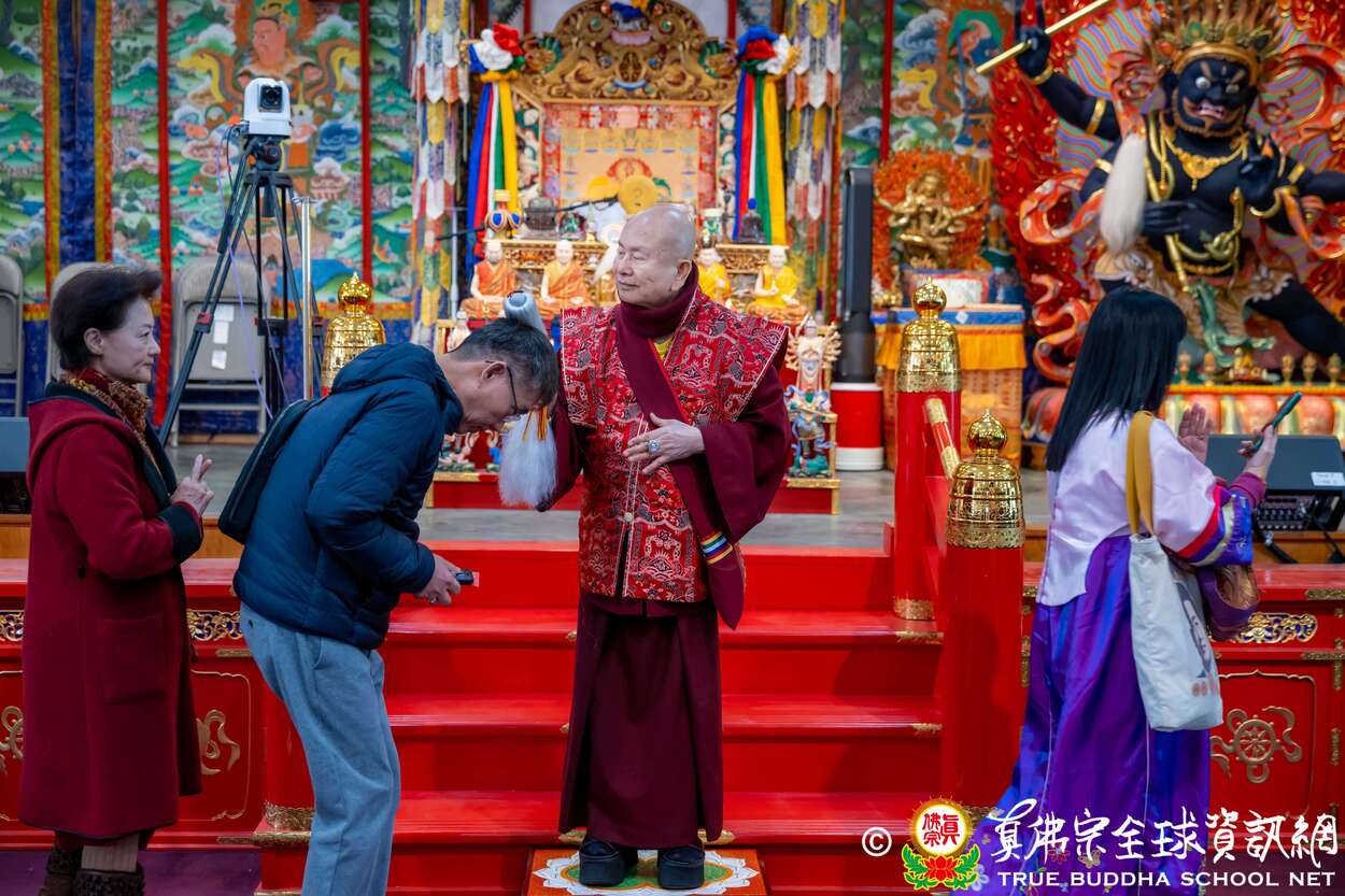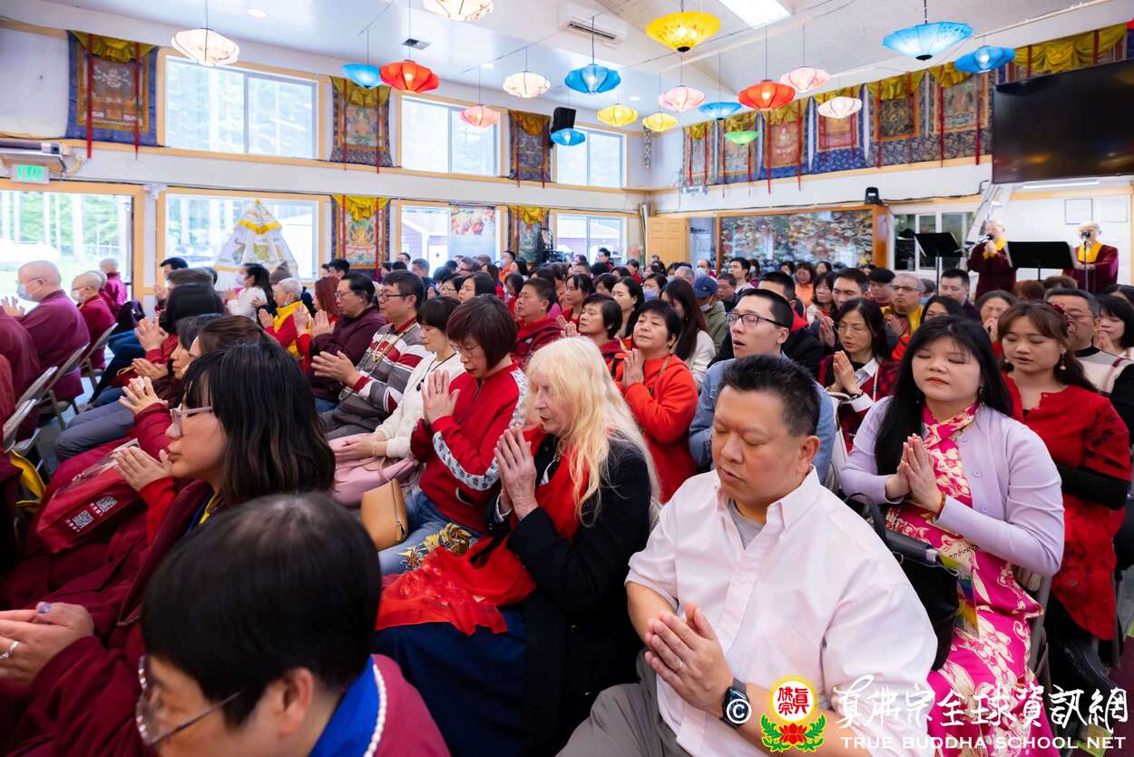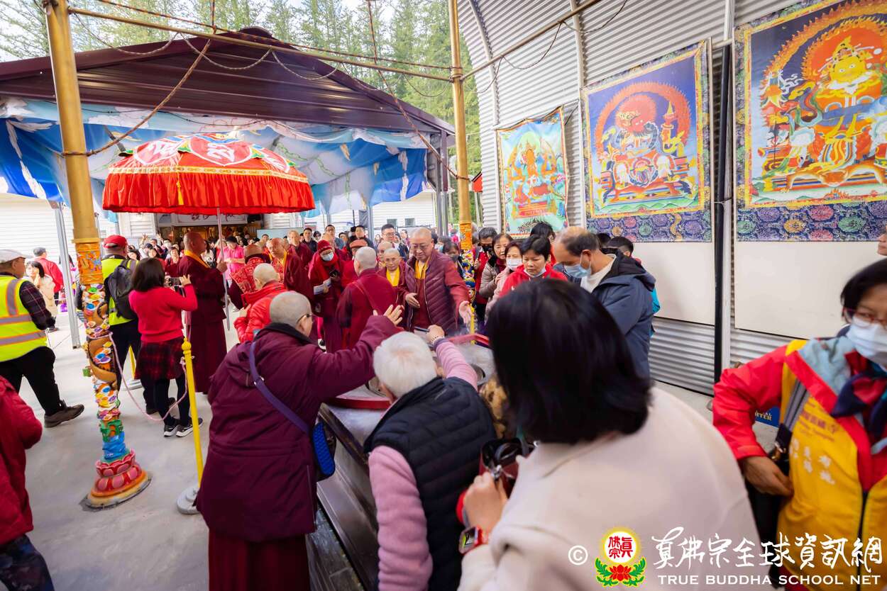 法會的結尾,法王分享師母術後復原的情況,表達對其痛苦的感同身受。法王表示,師母因手術需長達三到六個月的恢復期,無法參與上師團的弘法行程,僅能靜養於家中。所幸一雙子女佛奇與佛青24小時輪流照顧師母,展現出深厚孝心,讓法王深感欣慰,也肯定他們在西方長大仍保有東方傳統美德。