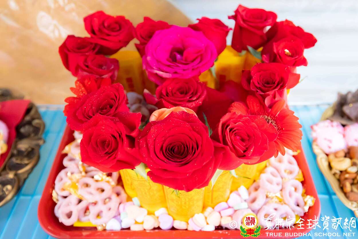 『天圓地方,律令九章,大年初一,願 師尊蓮生活佛及師母蓮香上師 一年平安,健康長壽,吉祥圓滿。 』 嗡。咕嚕。蓮生。悉地。吽! 嗡。阿嘛惹尼。祖溫底耶。梭哈!