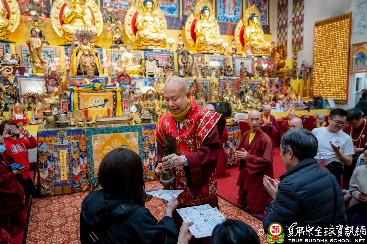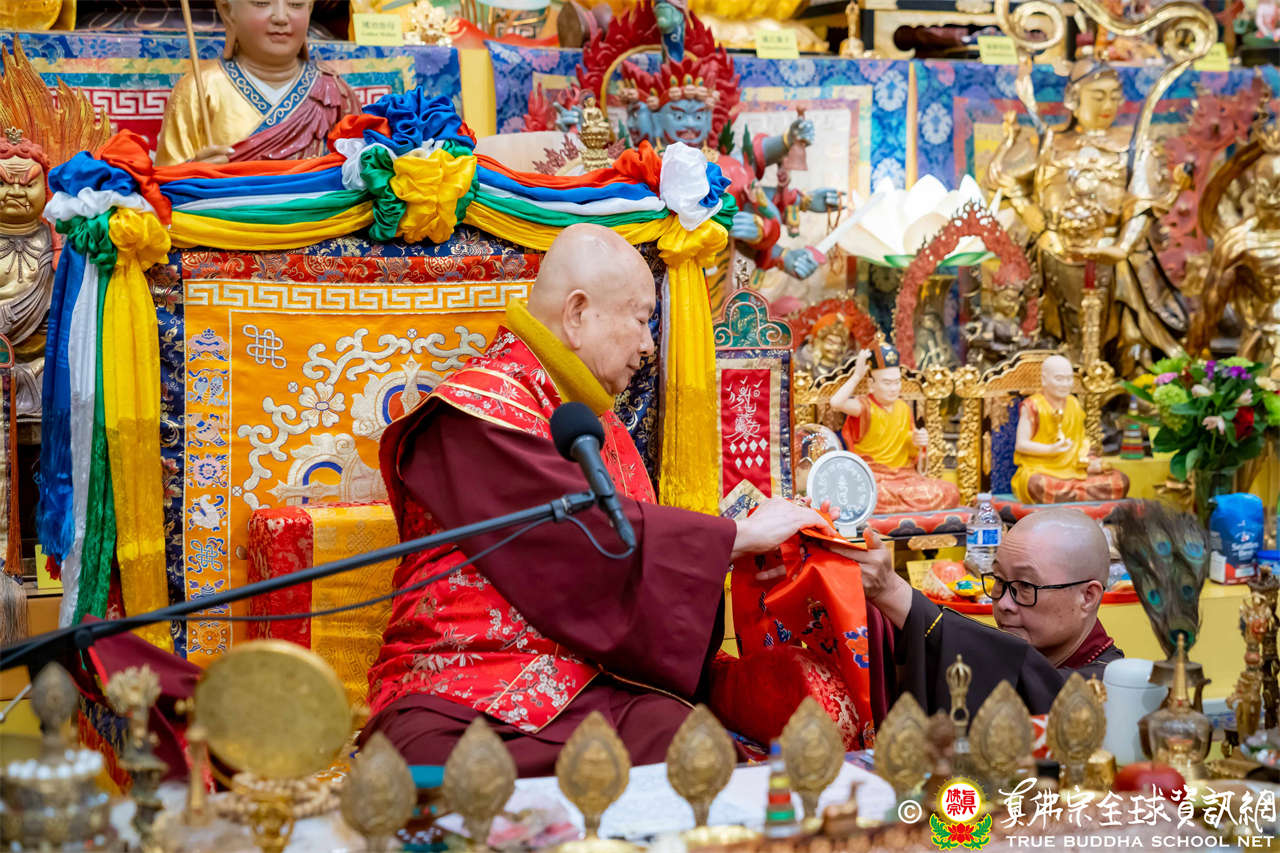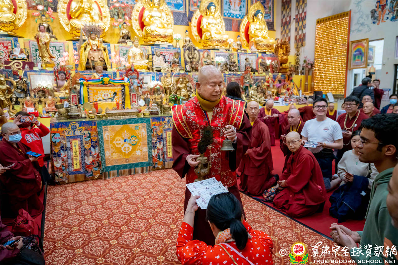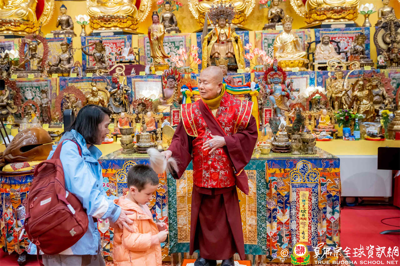 在殊勝珍貴的法語開示之後,聖尊為新皈依者進行皈依灌頂,並開光佛像、加持大悲咒水、持拂塵加持與會大眾。感念聖尊慈悲不捨眾生,弘法度眾不辭辛勞,日日年年如此,祈願聖尊佛體康泰,吉祥如意,弟子眾等惕勵精進,自度度他,六度齊修,以圓成菩提。