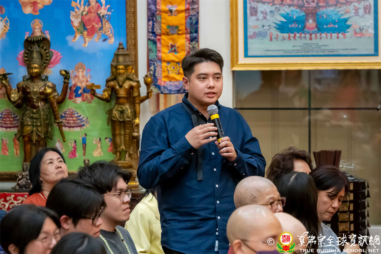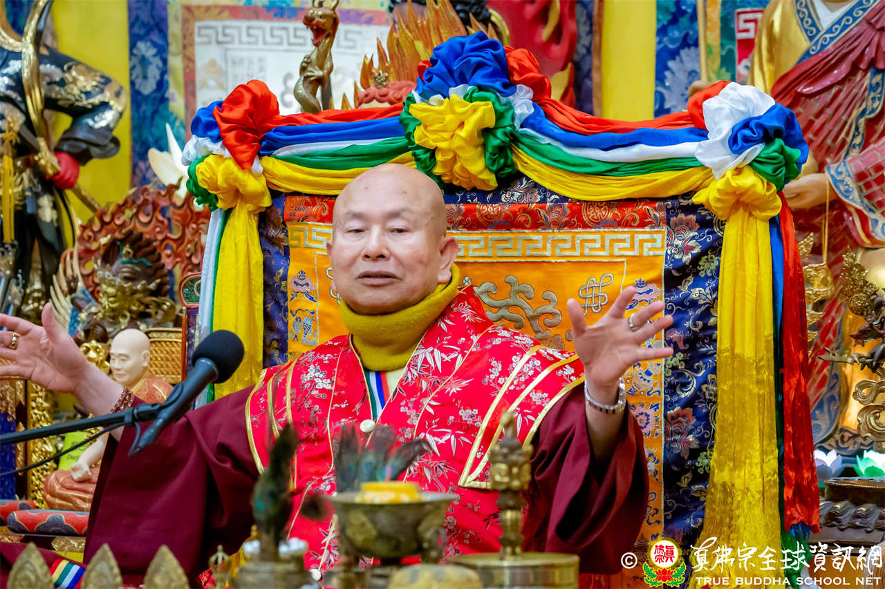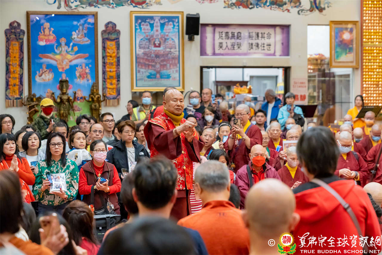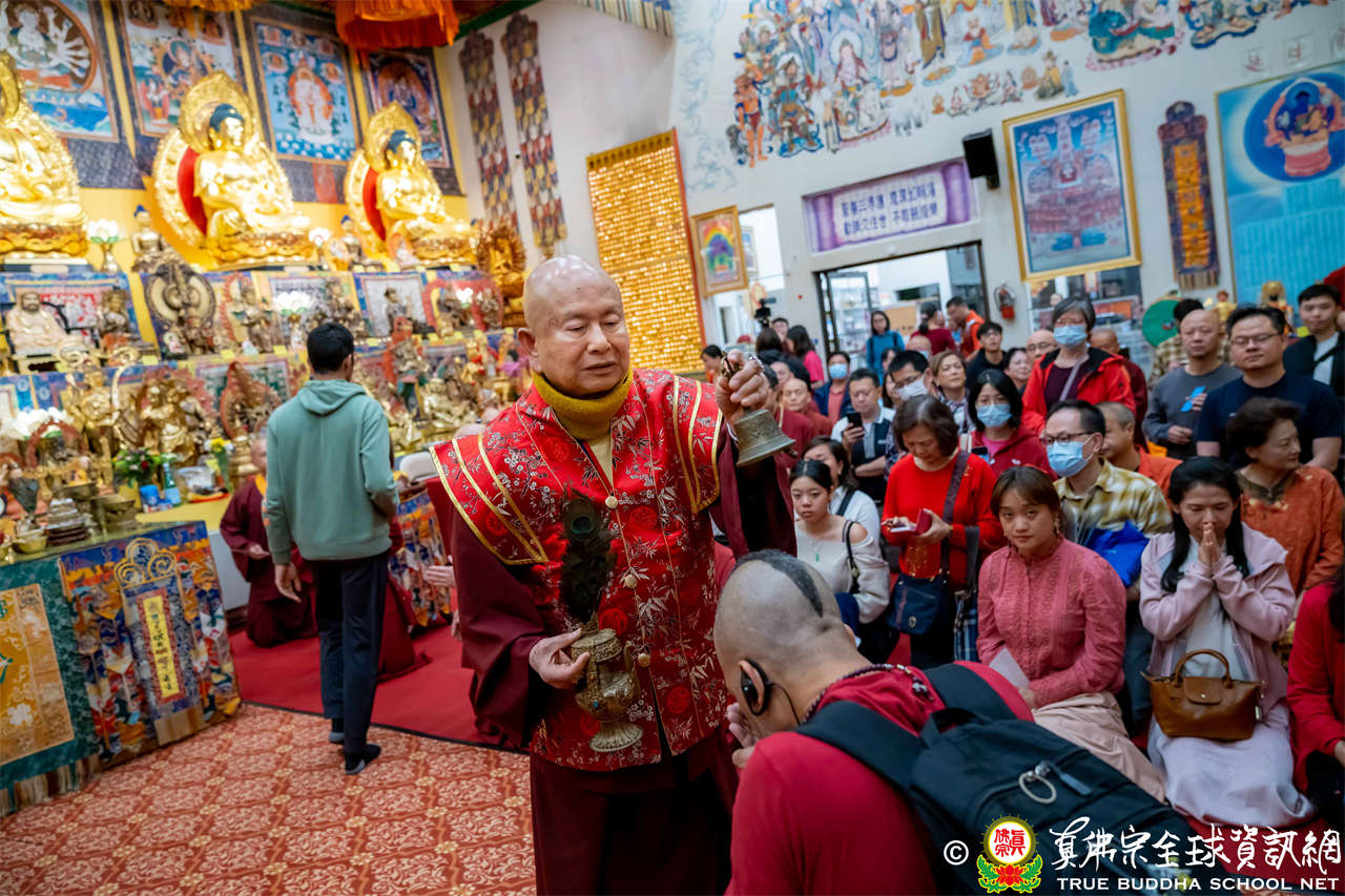 在殊勝珍貴的法語開示之後,聖尊為新皈依者進行皈依灌頂,並開光佛像、加持大悲咒水、持拂塵加持與會大眾。感念聖尊慈悲不捨眾生,弘法度眾不辭辛勞,日日年年如此,祈願聖尊佛體康泰,吉祥如意,弟子眾等惕勵精進,自度度他,六度齊修,以圓成菩提。