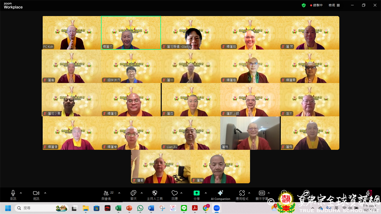 2025年5月30日,值端午節前夕,世界真佛宗宗務委員會第六屆核心小組暨常務委員第九次會議,於雲端 ZOOM 會議室順利召開。核心小組例行每兩個月召開會議,並於每季邀請常務委員共同與會,期能齊心協力推動宗務,掌握進展與規劃未來發展方向。