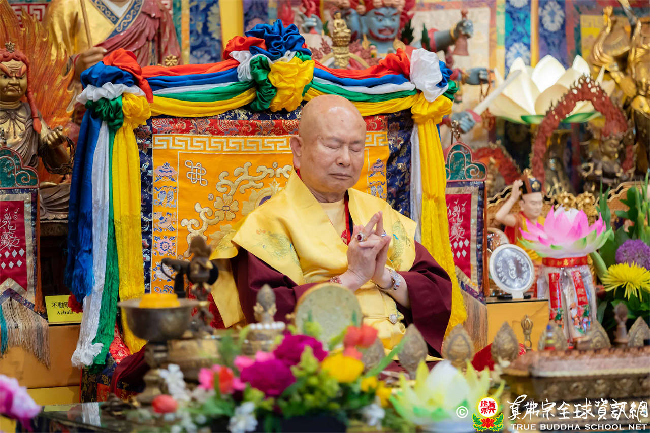 2025年6月7日,蓮生活佛盧勝彥帶領大家修持釋迦牟尼佛本尊法。同修完後,聖尊祈請本師釋迦牟尼佛接引幽冥衆往生清淨佛國,並放光加被大眾身體健康、修行成就、息災、增益、降服、敬愛皆能圓滿、生活康泰,增福增慧。