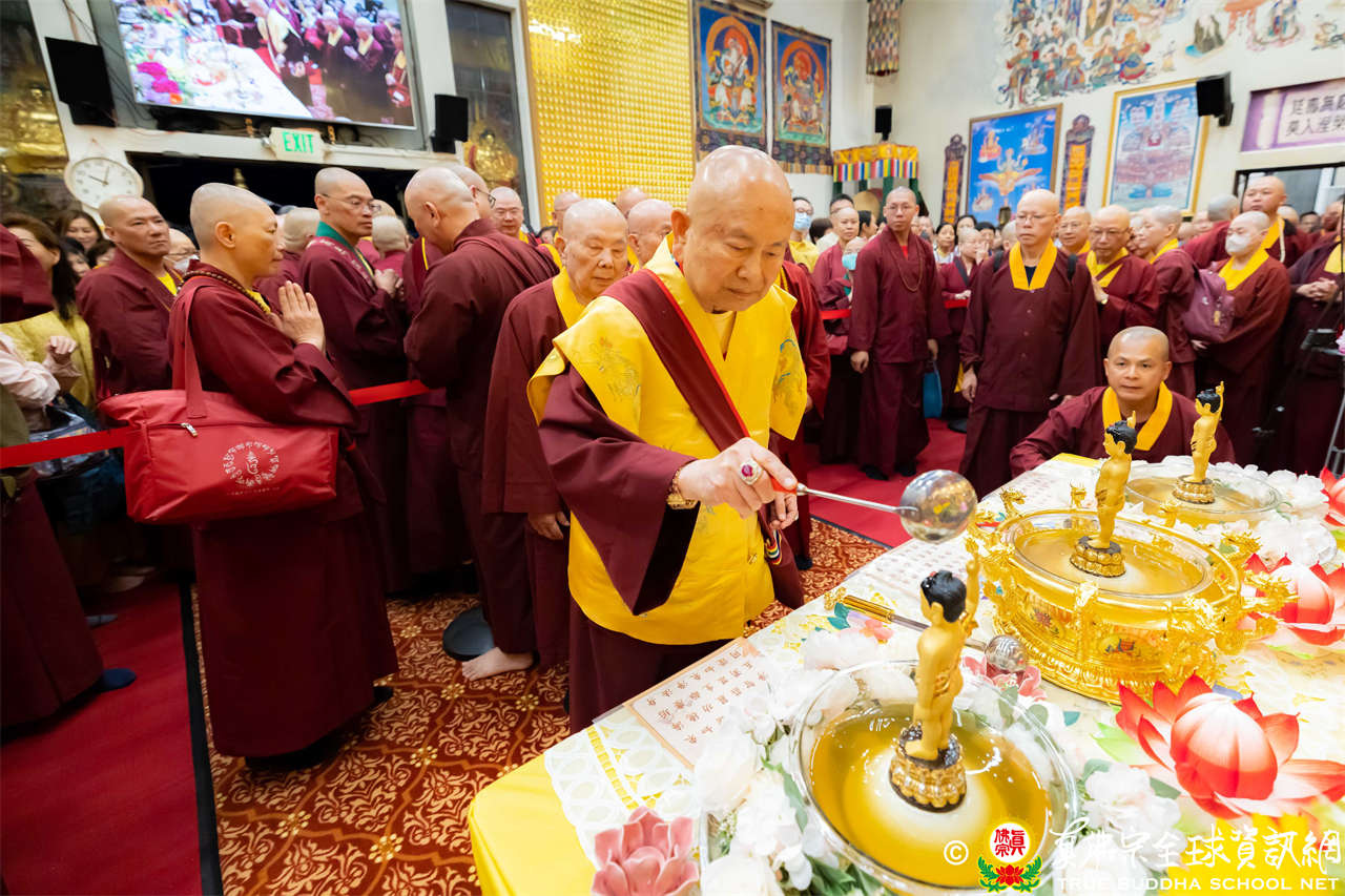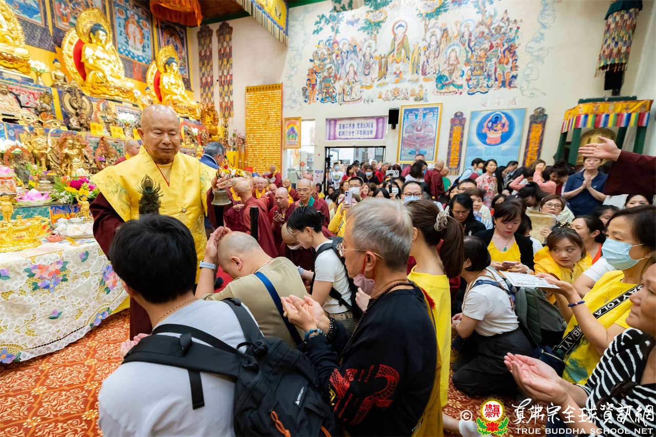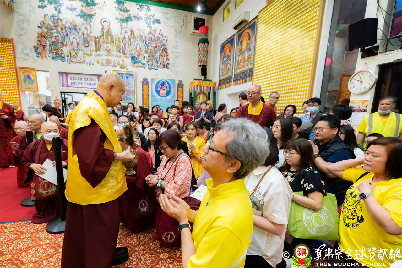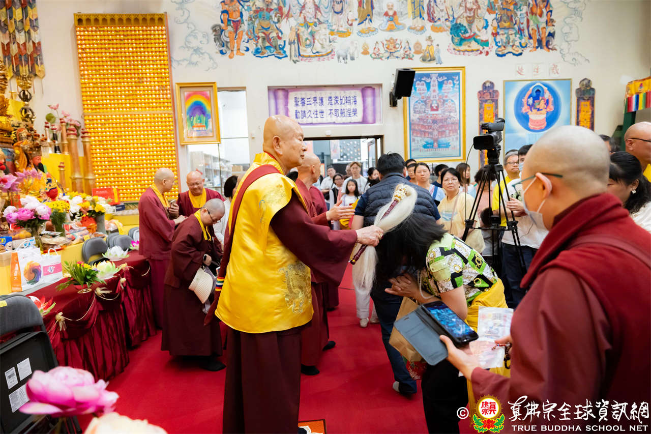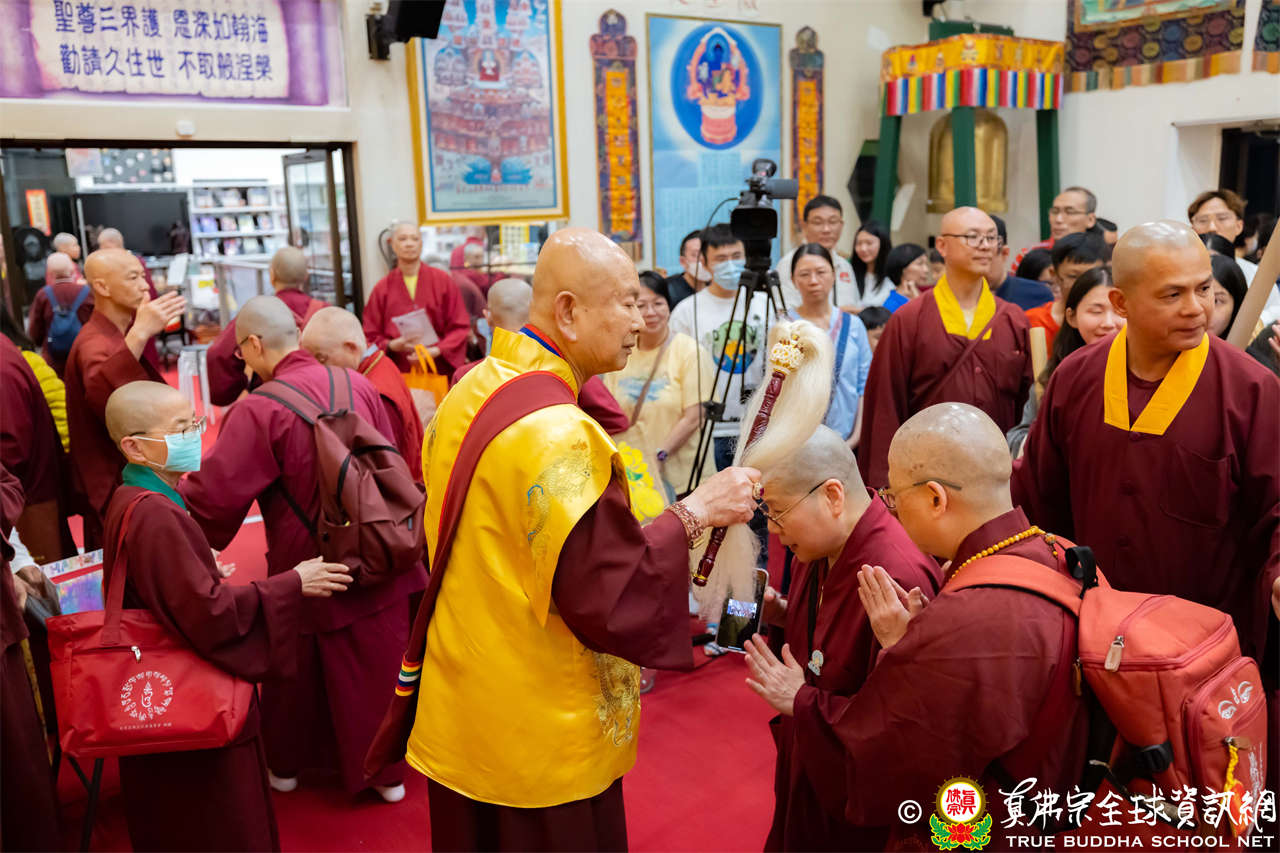 開示結束後,隨即進行浴佛儀式,師尊以拂塵加持大眾。