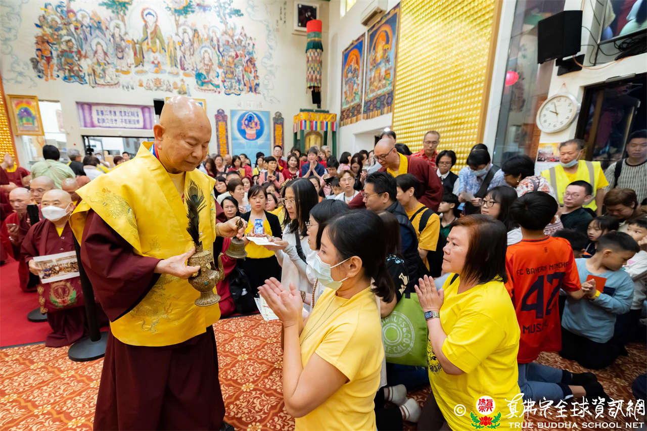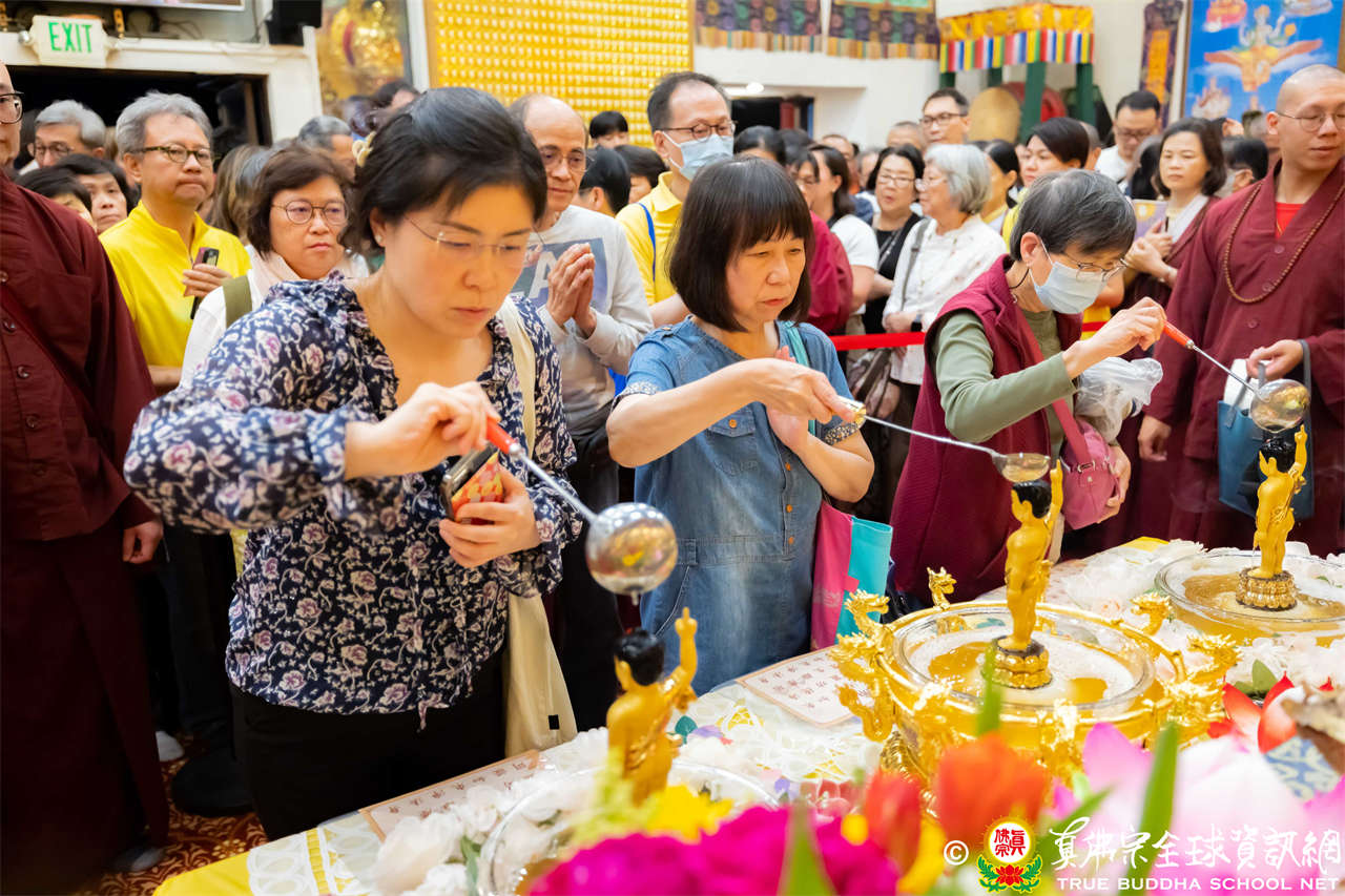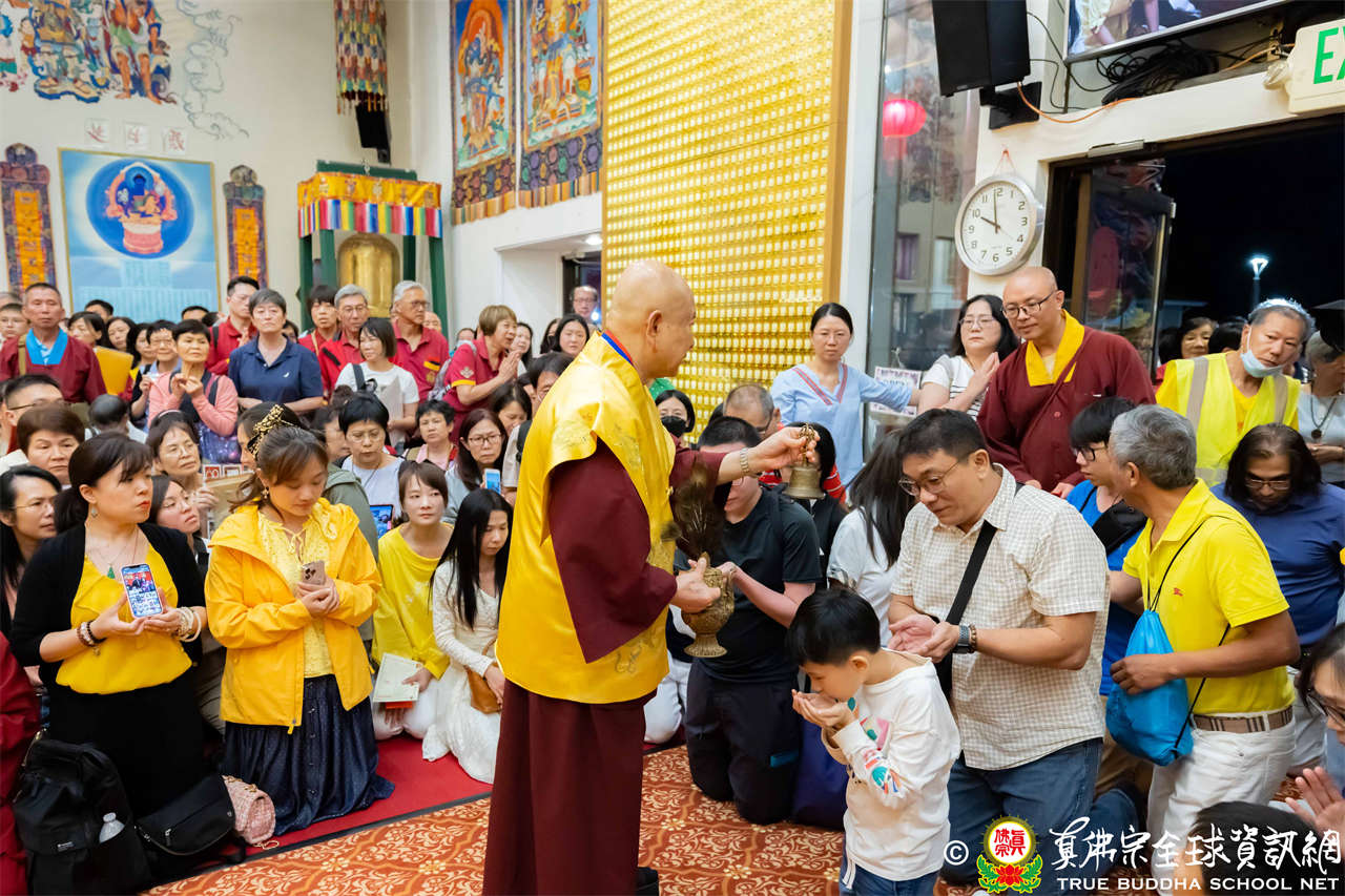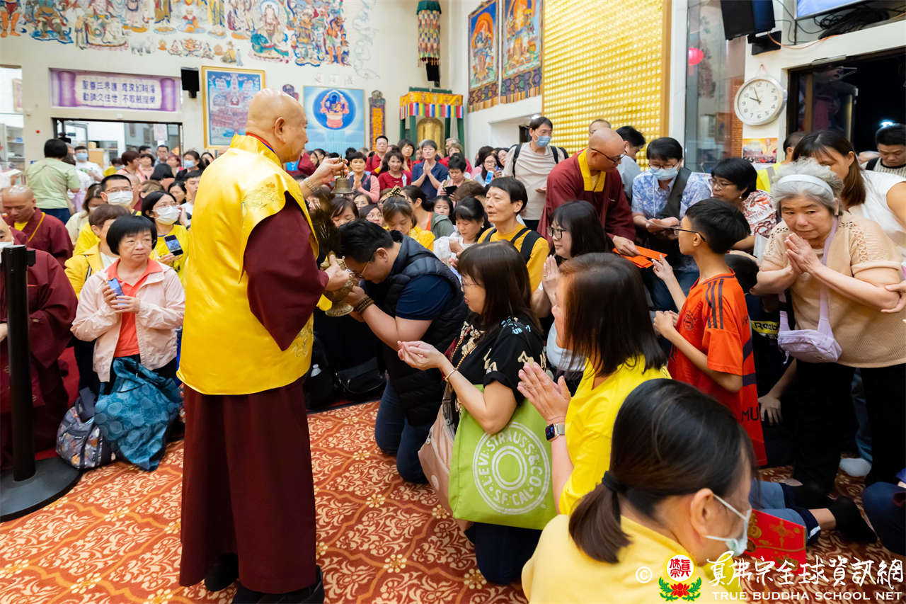 開示結束後,隨即進行浴佛儀式,師尊以拂塵加持大眾。