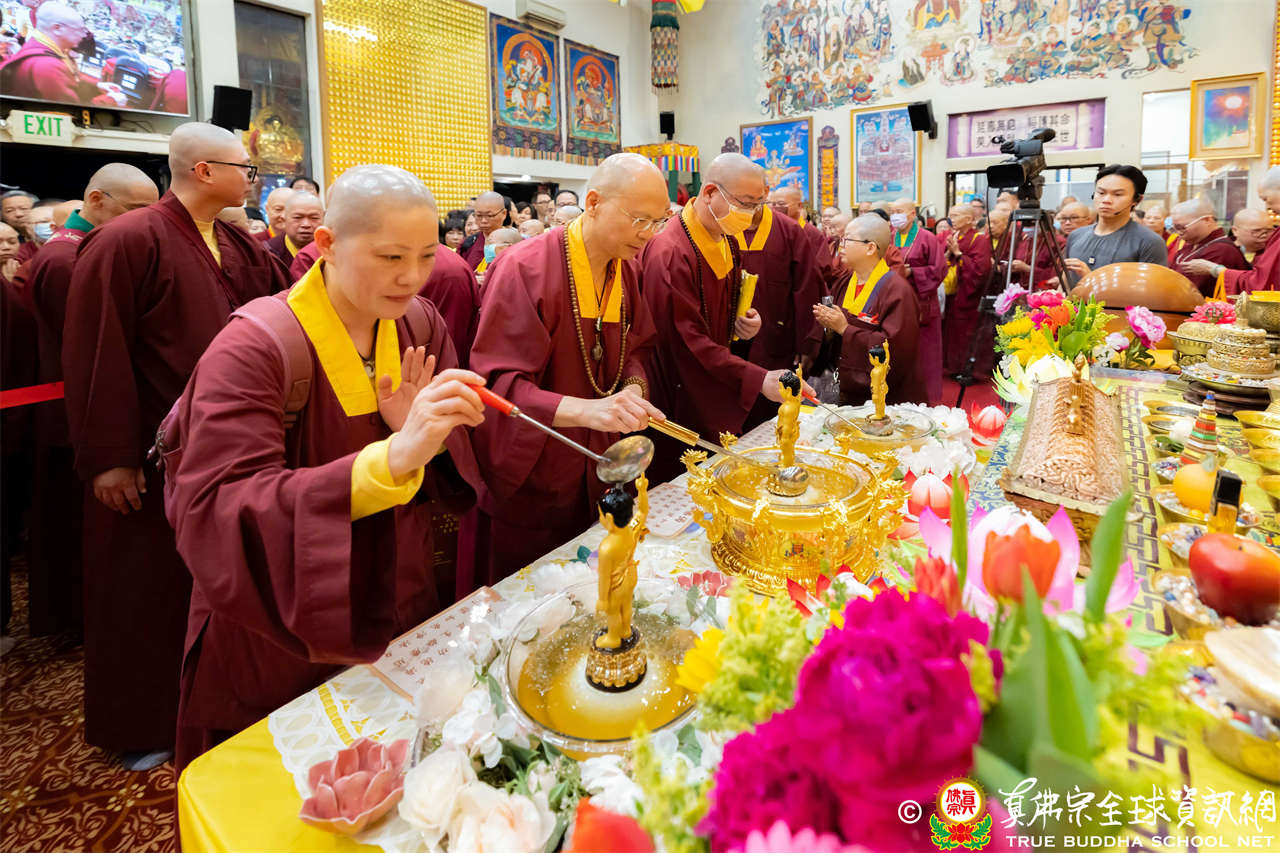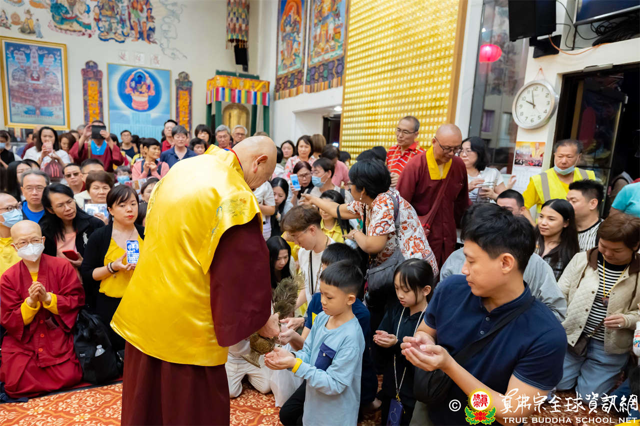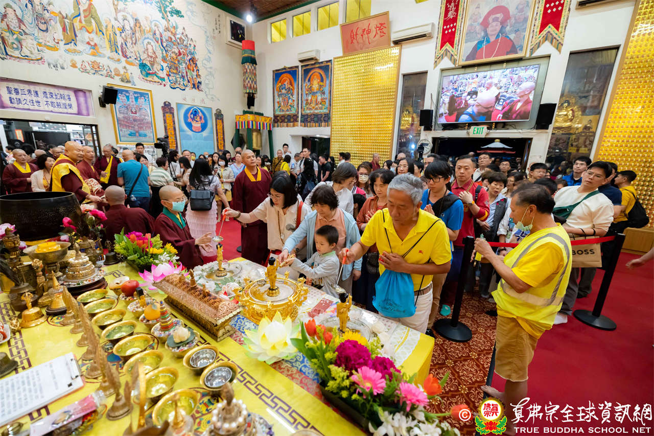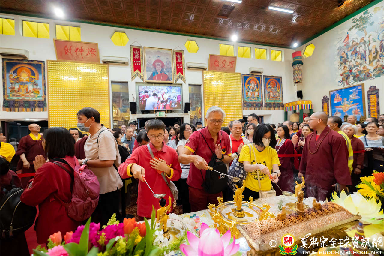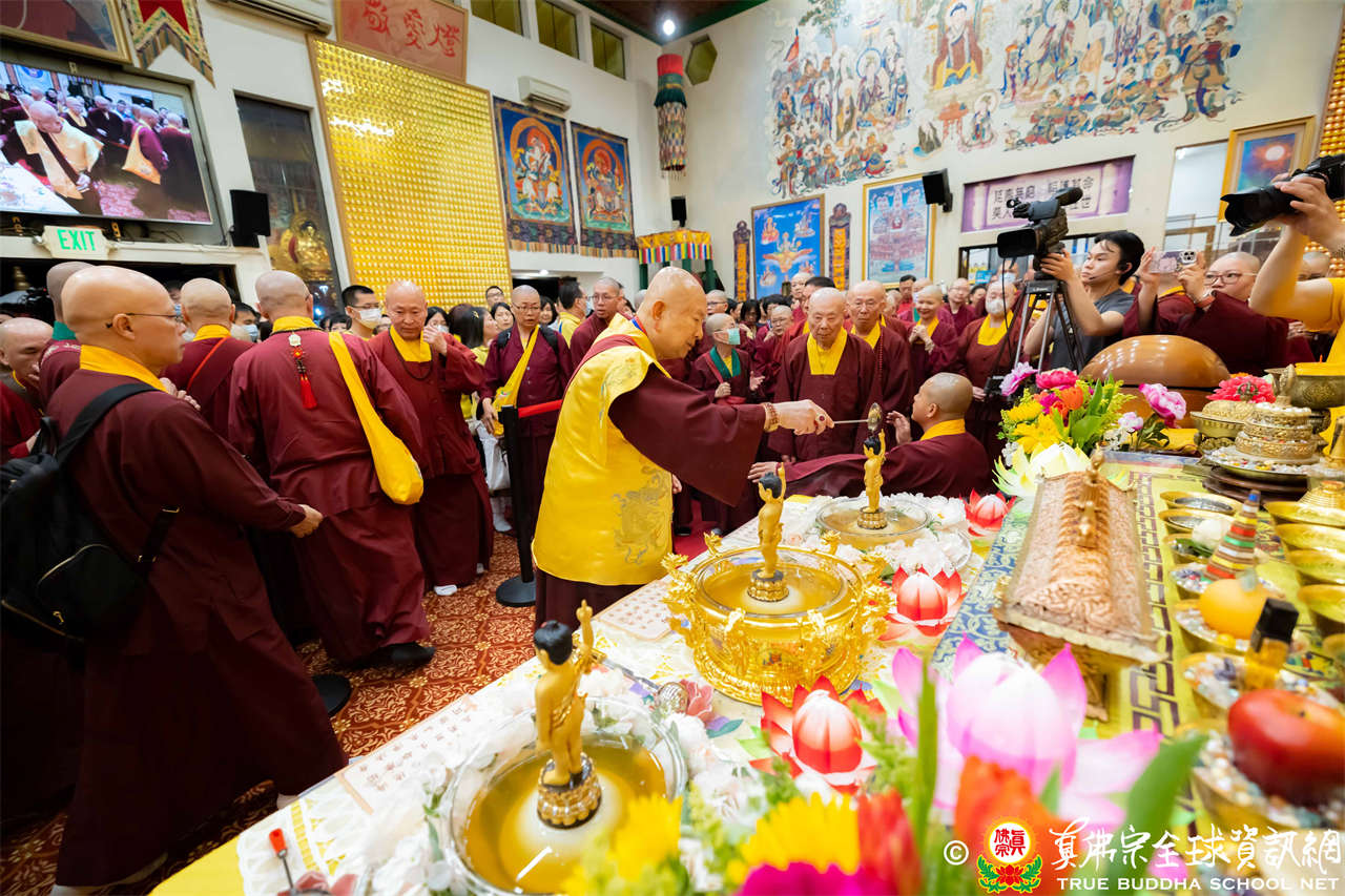 開示結束後,隨即進行浴佛儀式,師尊以拂塵加持大眾。