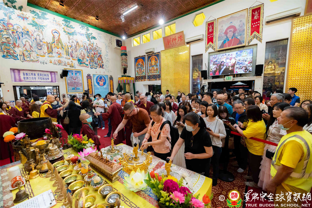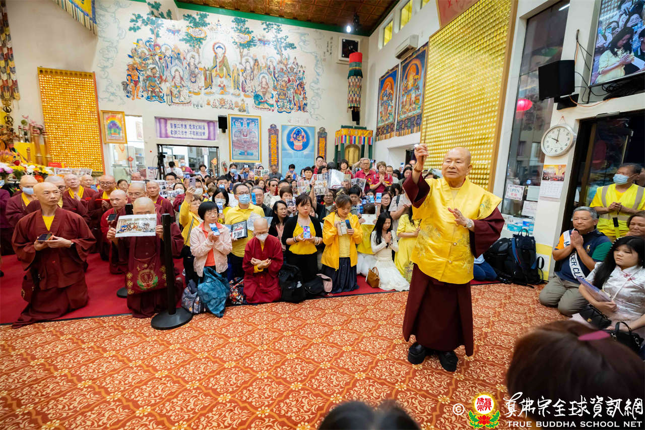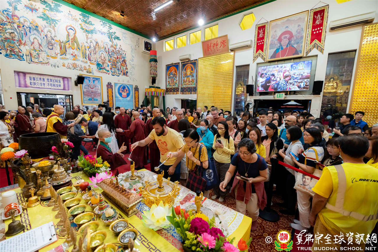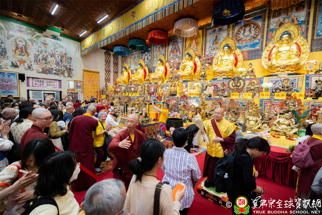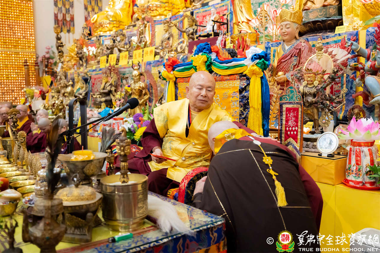 開示結束後,隨即進行浴佛儀式,師尊以拂塵加持大眾。