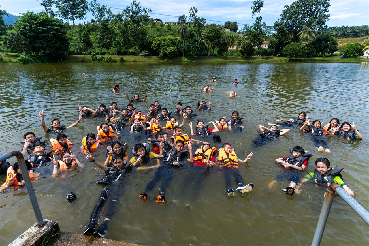 在專業教練的悉心指導與帶領下,營員們齊心協力,成功搭建了一個堅固的筏子。令營員無比興奮的是,在團隊的默契配合和不懈努力下,他們最終成功橫跨了一個湖泊。這些充滿挑戰的活動,不僅考驗著營員們的體能與付出,更檢驗了他們在面對恐懼時是否懂得如何隨機應變。正如蓮夫上師所分享的一句至理名言:“勇敢不是不害怕,而是就算害怕也努力踏出第一步。”