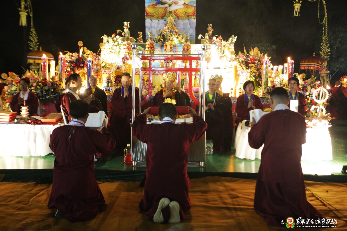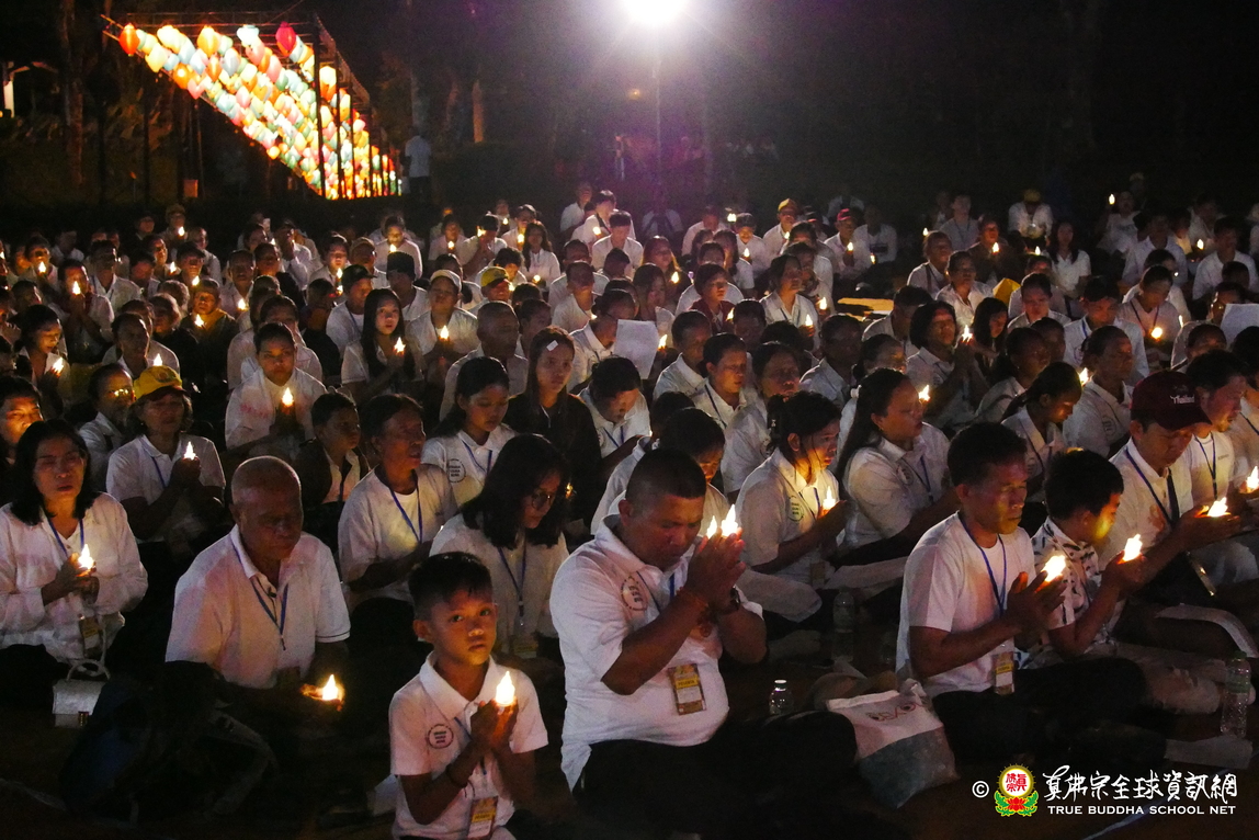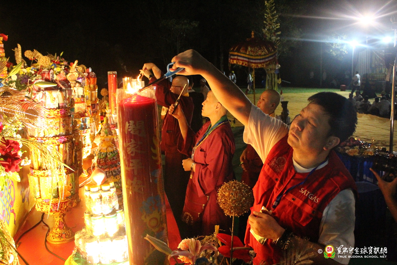 法會現場設有延生位與往生位壇城,為每位報名信眾圓滿迴向。現場並排列出由祈福蠟燭組成的「請佛住世」四字,每盞燈皆代表真佛弟子對根本上師的虔誠祈願,祈願真佛住世間、法輪常轉。