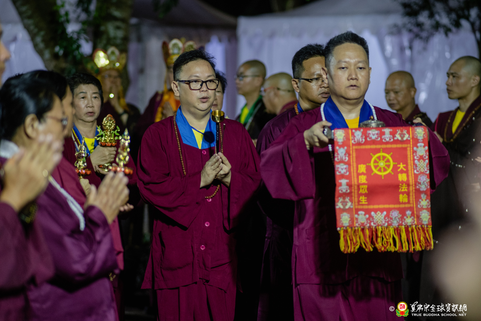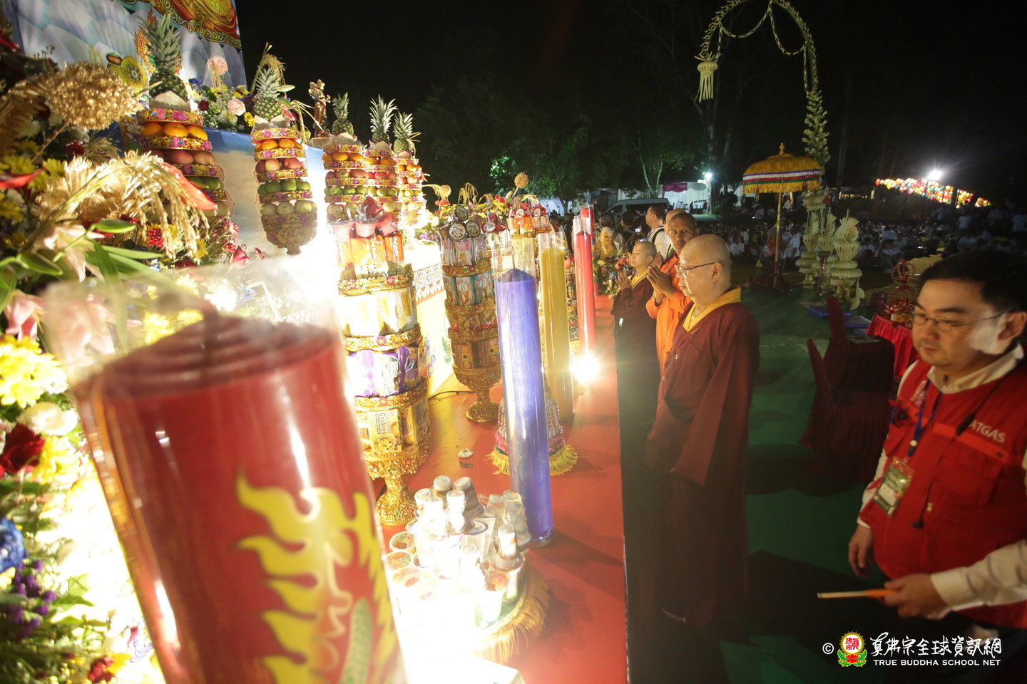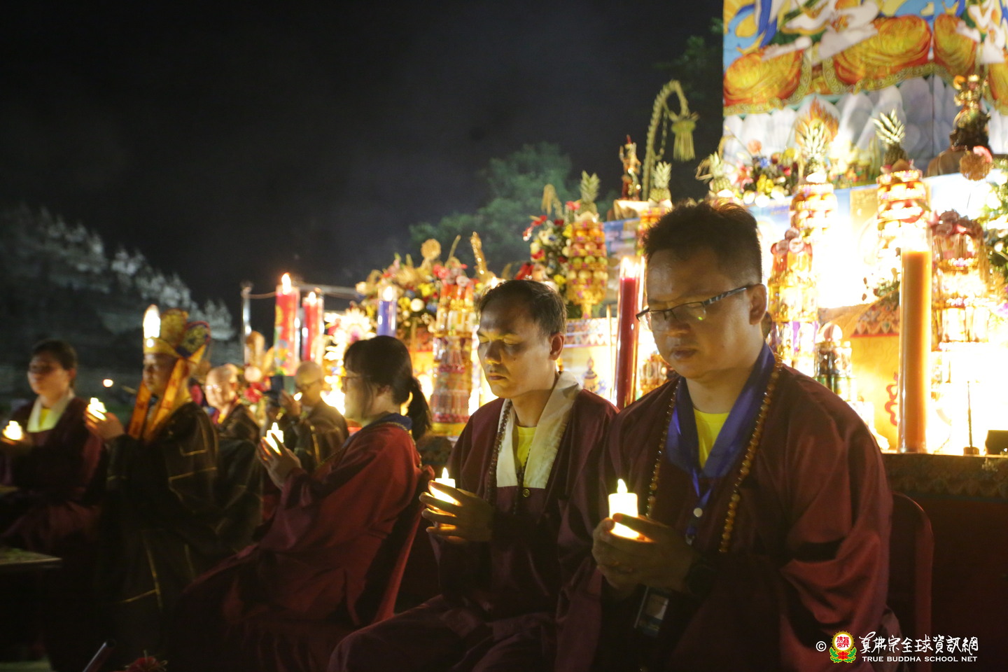 法會現場設有延生位與往生位壇城,為每位報名信眾圓滿迴向。現場並排列出由祈福蠟燭組成的「請佛住世」四字,每盞燈皆代表真佛弟子對根本上師的虔誠祈願,祈願真佛住世間、法輪常轉。
