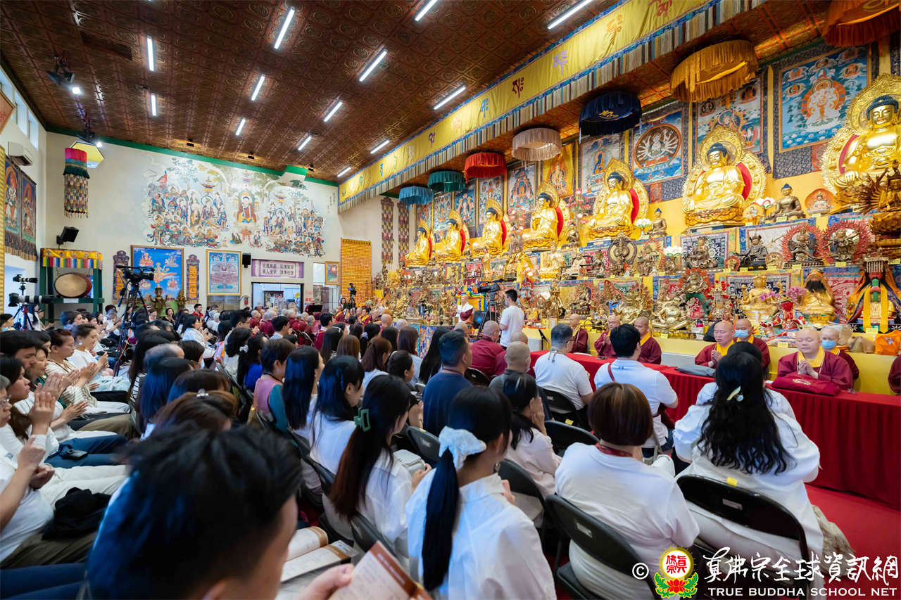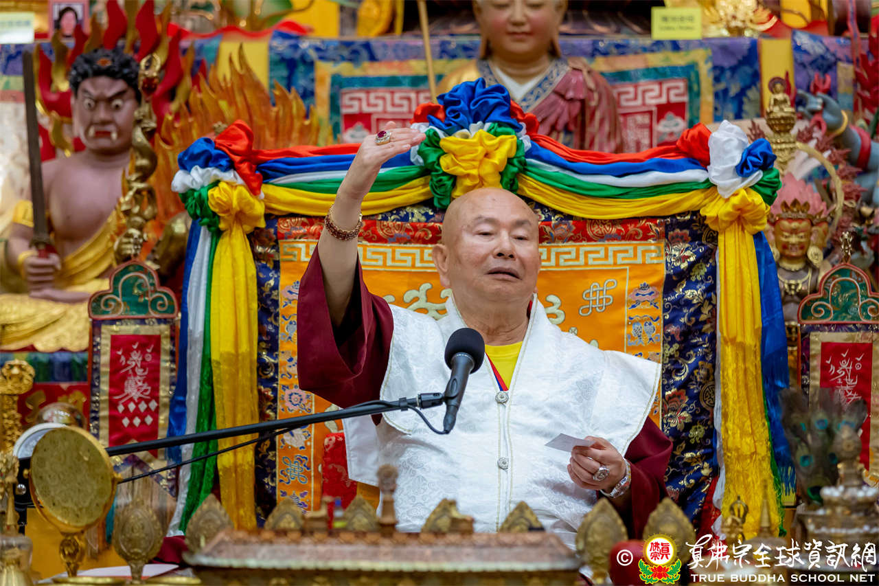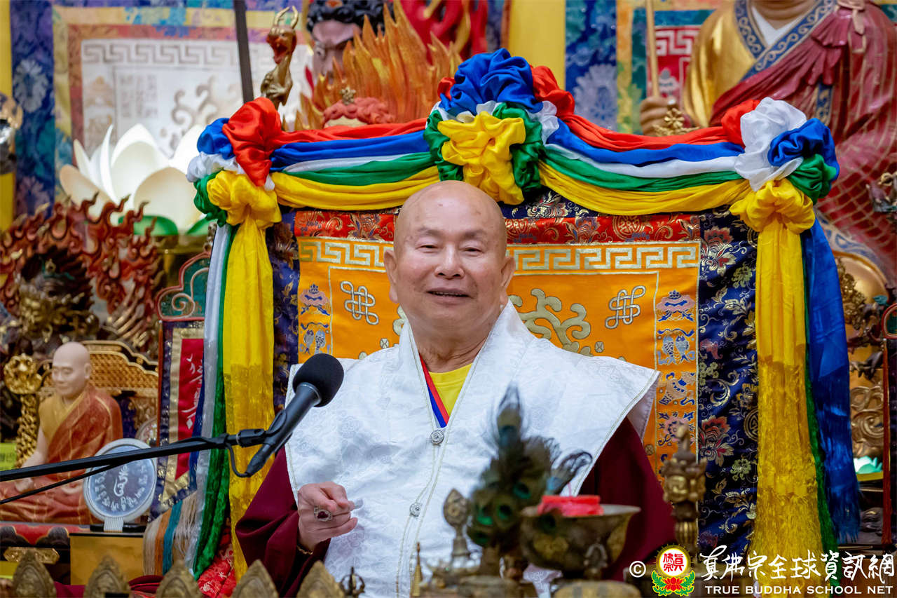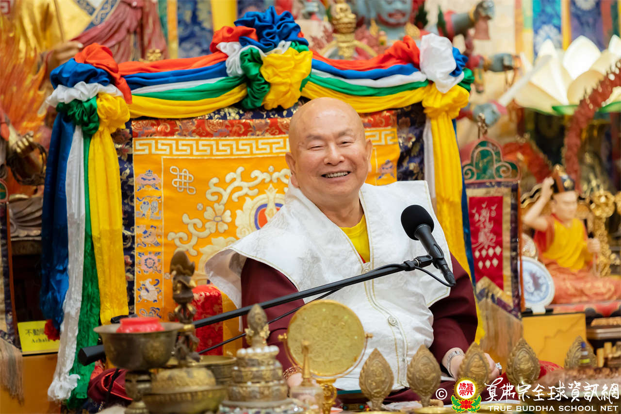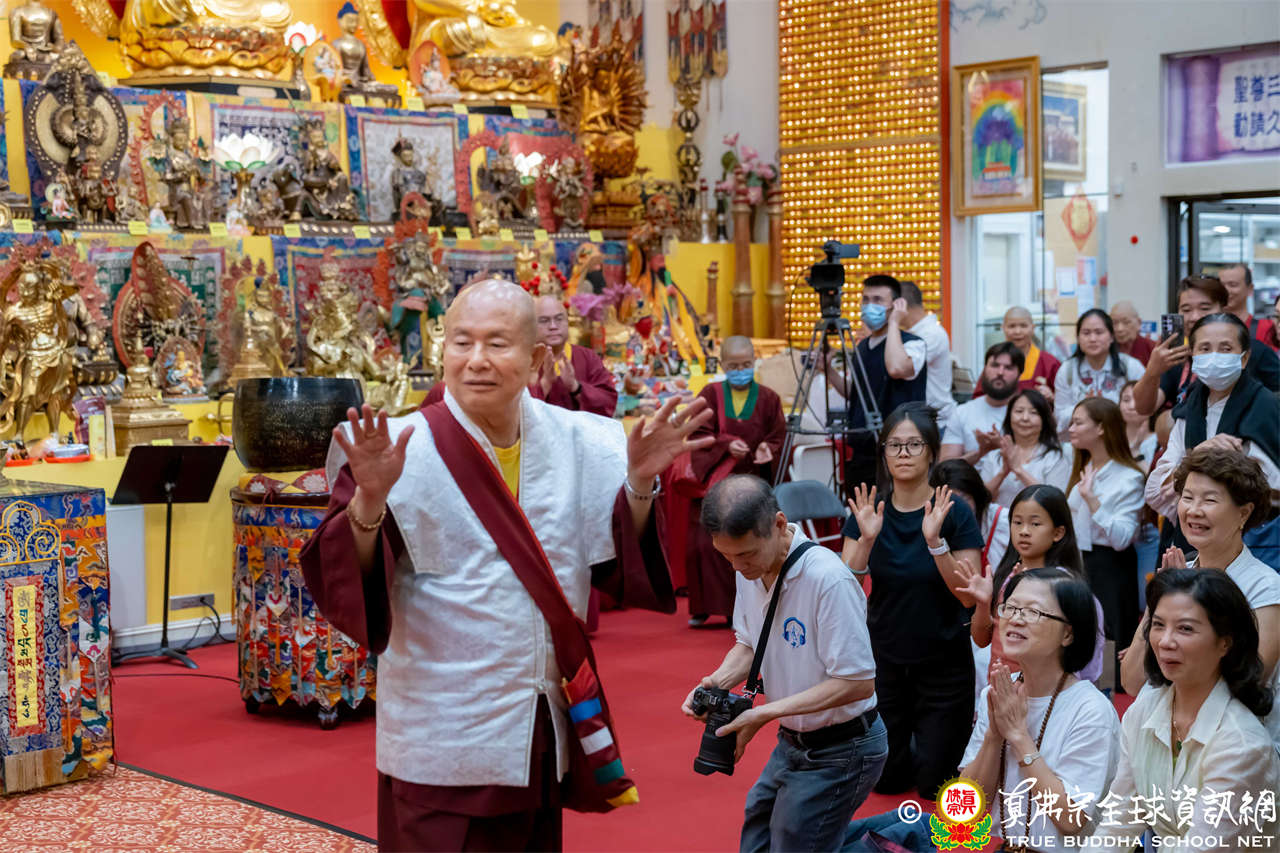 本尊法儀軌結束後,眾等隨著聖尊的帶領頂禮歷代傳承祖師及同修主尊後,以熱烈的掌聲恭請聖尊為大眾做寶貴的法語開示。