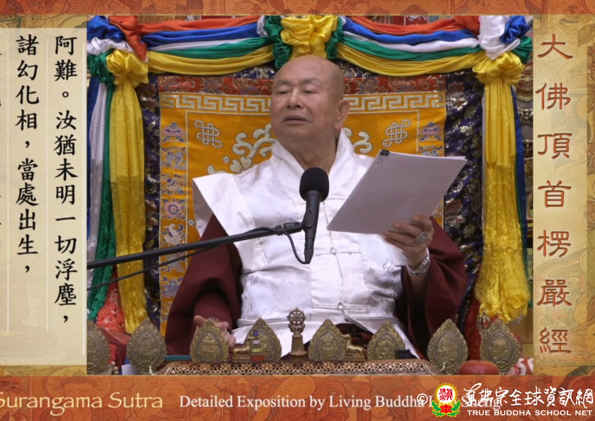 聖尊解釋經義:釋迦牟尼佛對阿難說,阿難如今還沒明白娑婆世界的一切現象都是虛妄。哪裡有因緣就出生,哪裡有因緣就死亡。生死也是虛幻。真正的不生不死就是妙明真心。因缘假合這種現象乃至五陰六入,十二處到十八界全都是如此。
