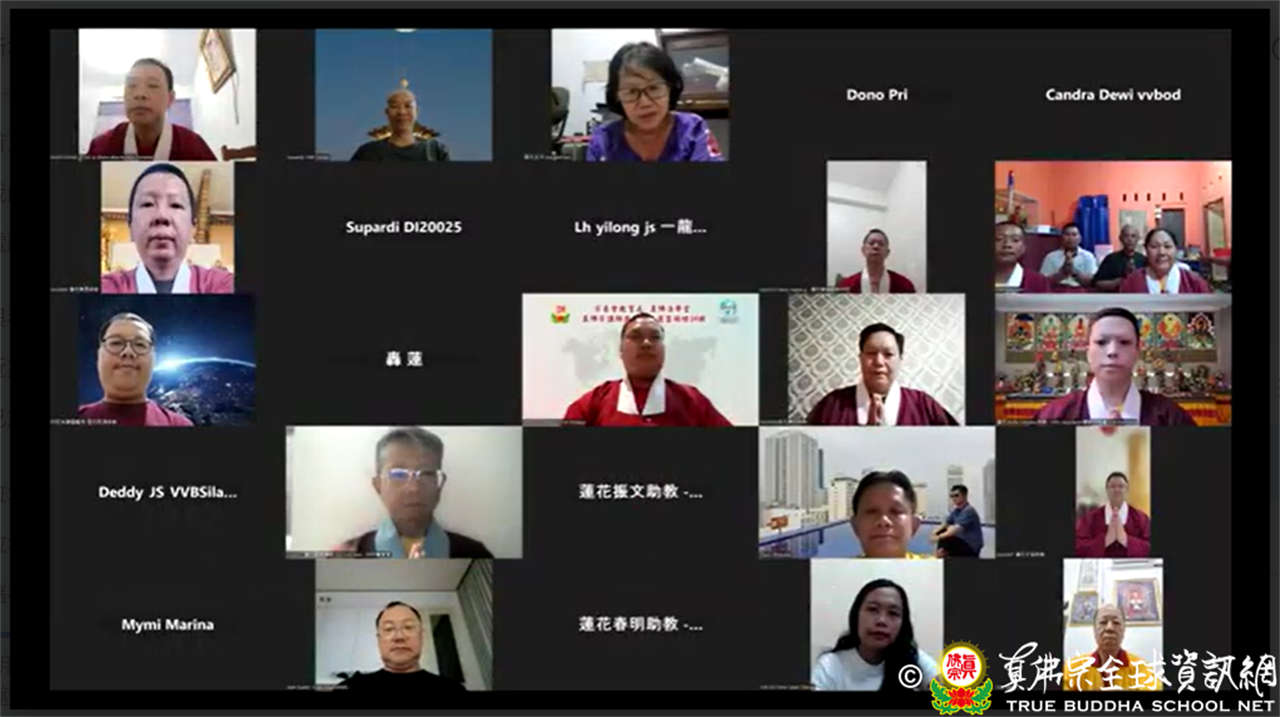 經過近5小時的交流,已近深夜。由印尼真佛宗僧伽團主席蓮飛上師致感謝詞說道:感謝會長各位處長講解釋疑,本次不僅是全印尼道場負責人、弘法人員線上線下參加交流會,現場還有準講師準助教,真的是名符其實的交流,心與心的交流。