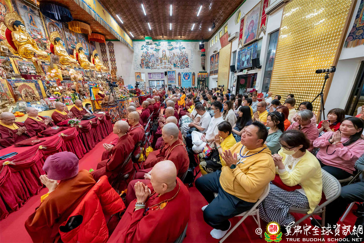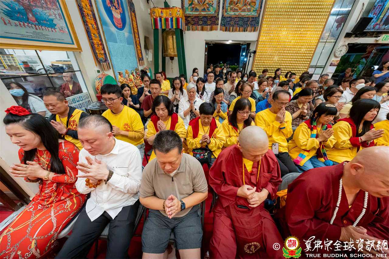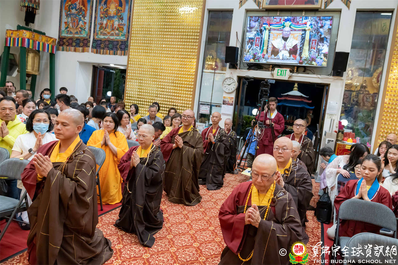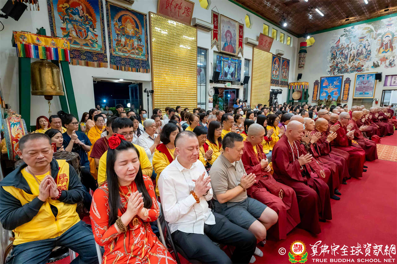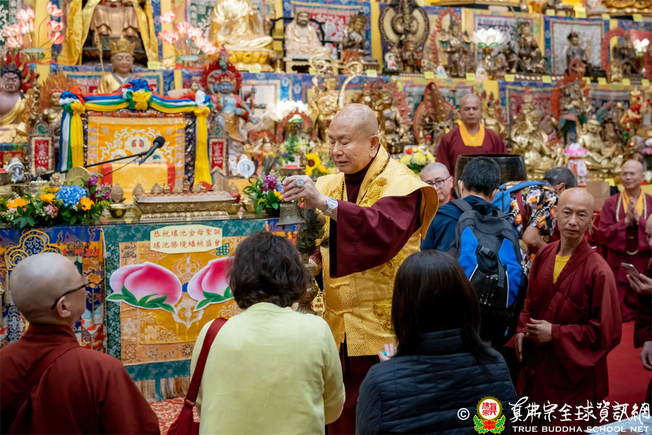 為慶祝瑤池金母誕辰,西雅圖雷藏寺於2025年9月6日晚上八時舉行蟠桃盛會,同修瑤池金母本尊法,來自美洲、歐洲、亞洲、澳洲等地的各國善信匯聚於大雄寶殿,跟隨蓮生活佛禮拜佛菩薩、誦經、唸佛、持咒、入定。蓮生活佛帶領緇素大眾,祝賀瑤池金母聖誕千秋。