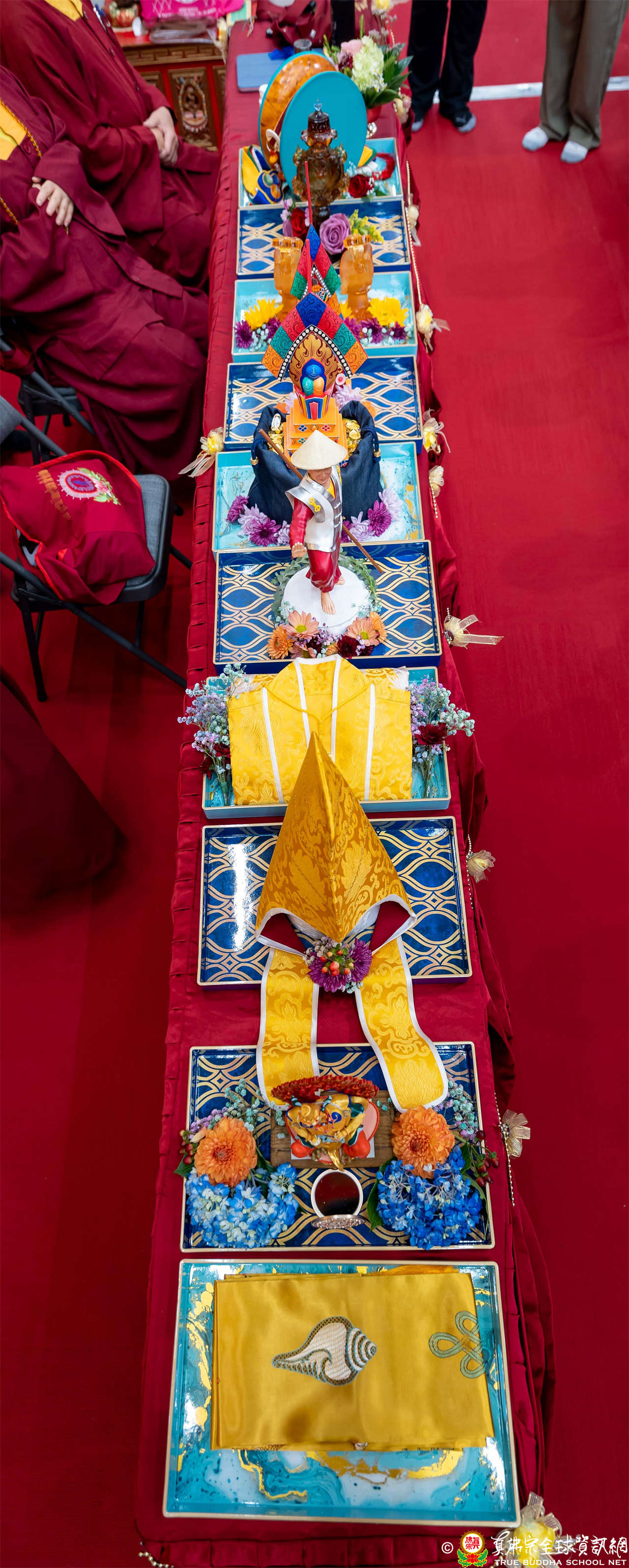 同修後,住持蓮吟上師率眾向蓮生活佛請法,恭請蓮生活佛主壇乙巳年9月20日阿彌陀佛息災祈福超度大法會及首傳扎基拉姆密法。請法人員敬獻法王寶冠、龍袍、扎基拉姆金身等等,以表達弟子們的懇切之忱。請法儀式莊嚴圓滿。