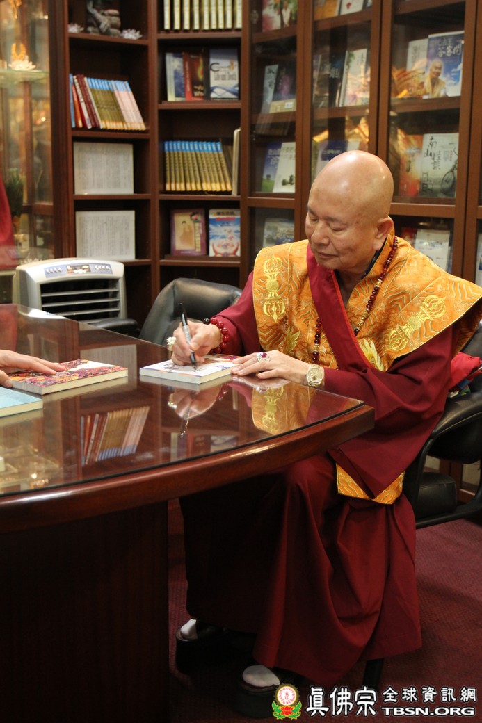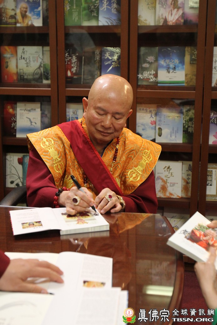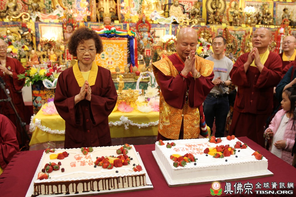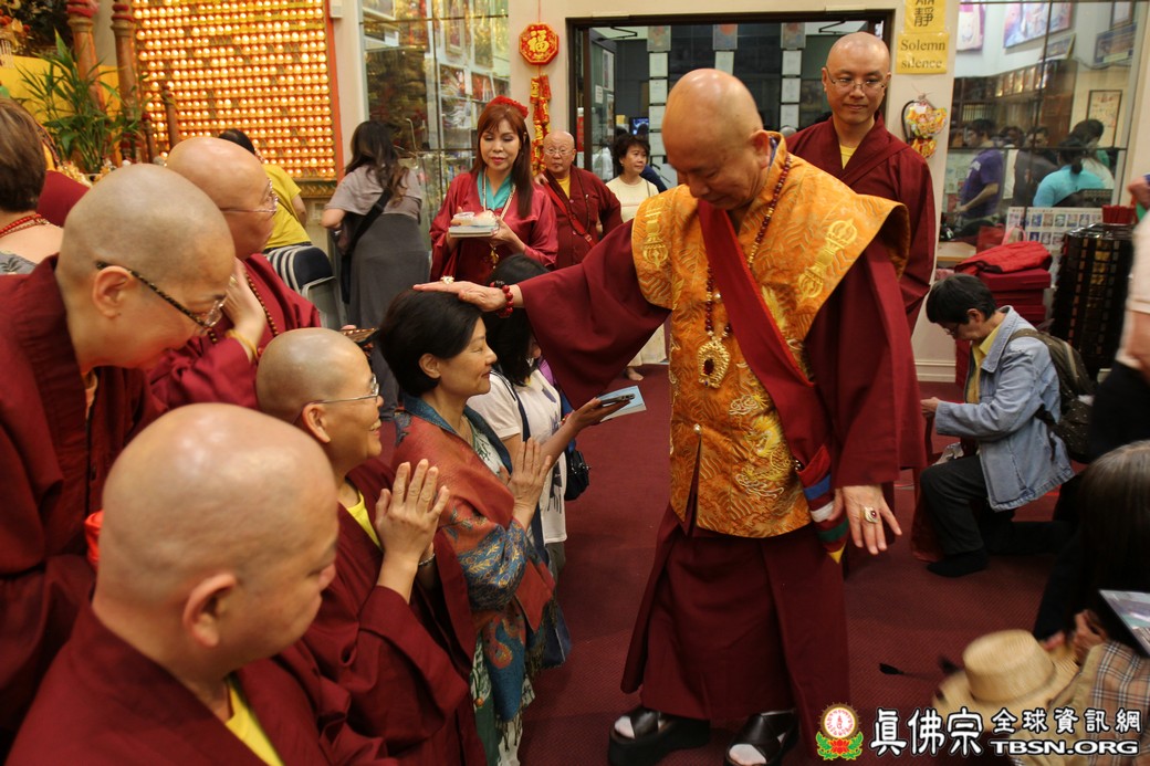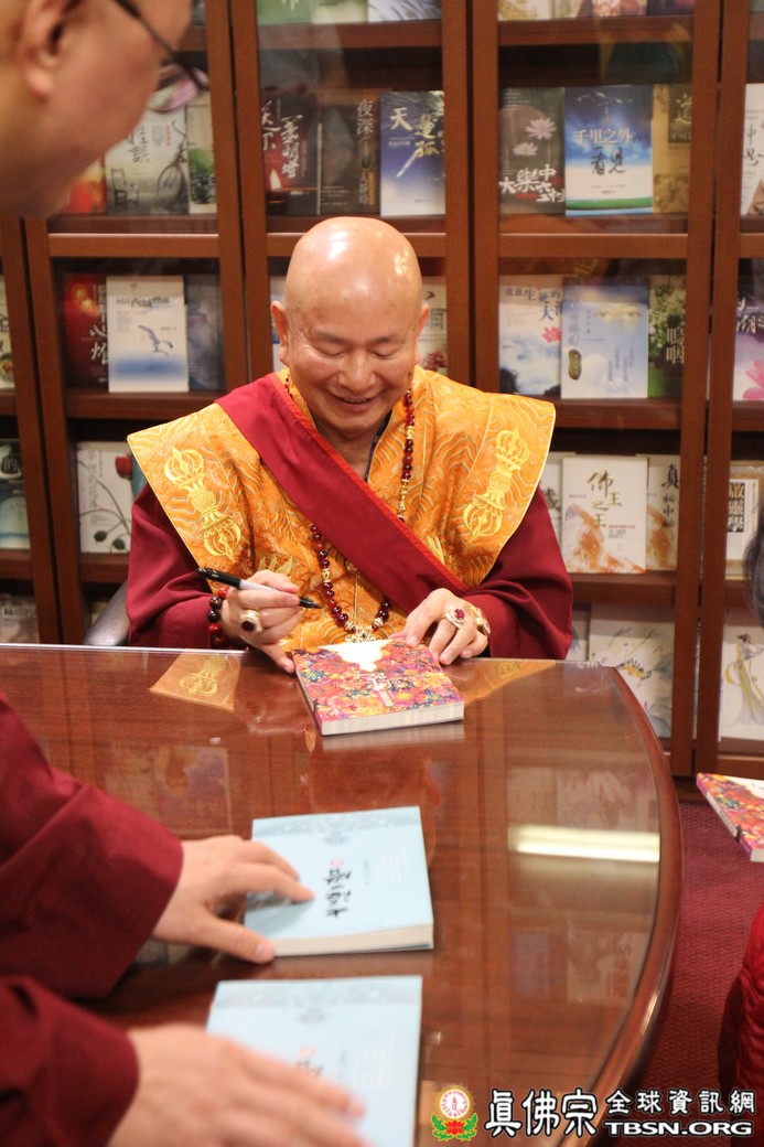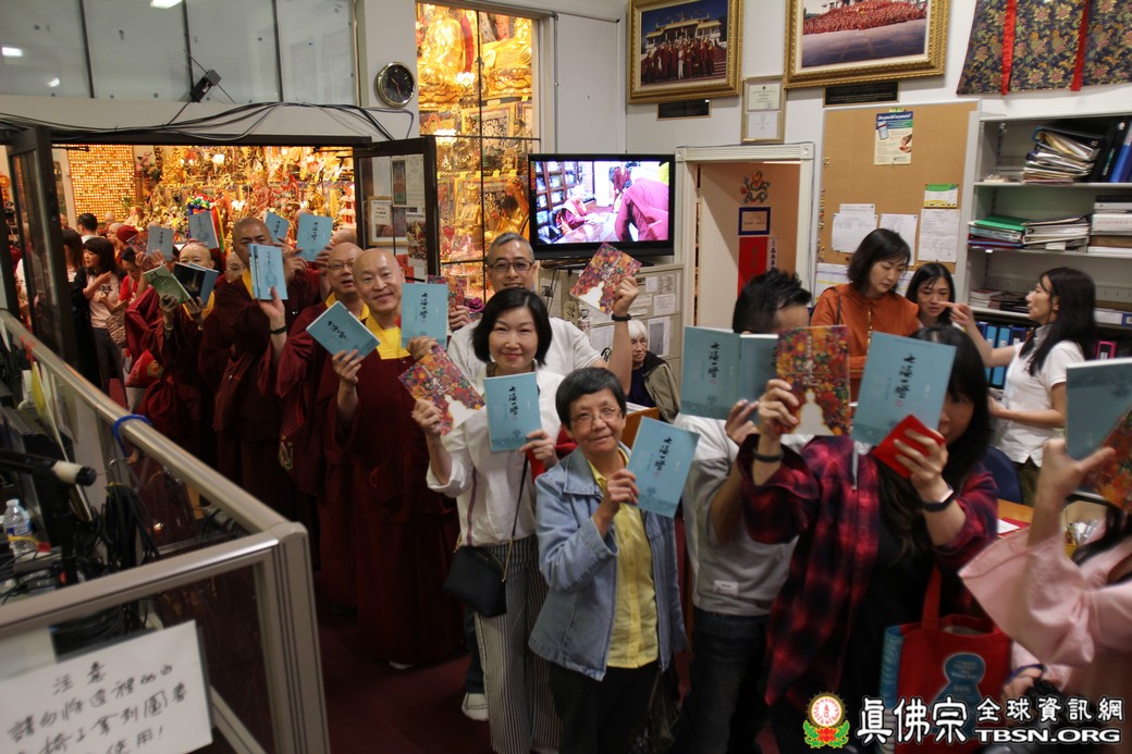 在精闢的開示結束後,聖尊為多位信眾們賜授皈依灌頂,並加持大悲咒水、開光佛像。然後,聖尊與師母一同帶領大眾開始浴佛,藉由浴佛的功德來淨化我們的身口意,去除貪嗔癡。浴佛後,聖尊不辭辛苦,還慈悲為大眾簽書,每個簽書的弟子都將聖尊的新書視如珍寶,幾乎是人手一本,開心得不亦樂乎。簽書會結束後,聖尊、師母還和大家一起切慶祝佛誕及母親節的大蛋糕,大眾齊聲歡唱生日快樂歌。