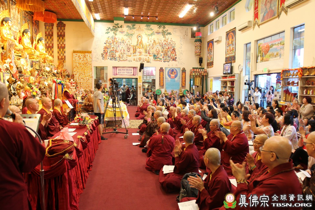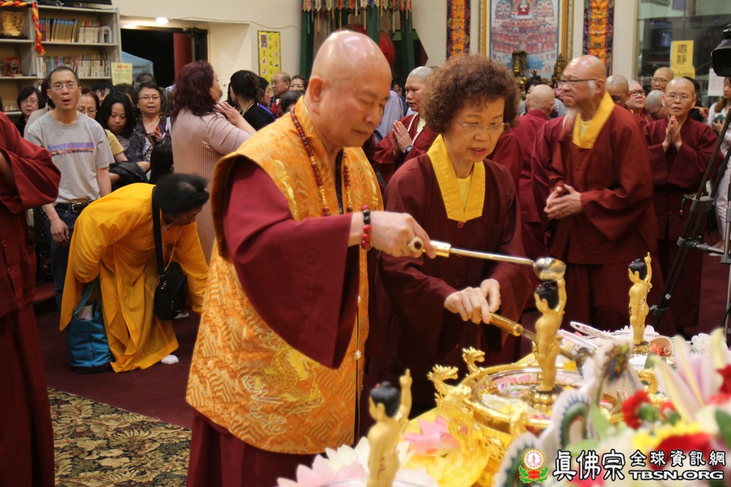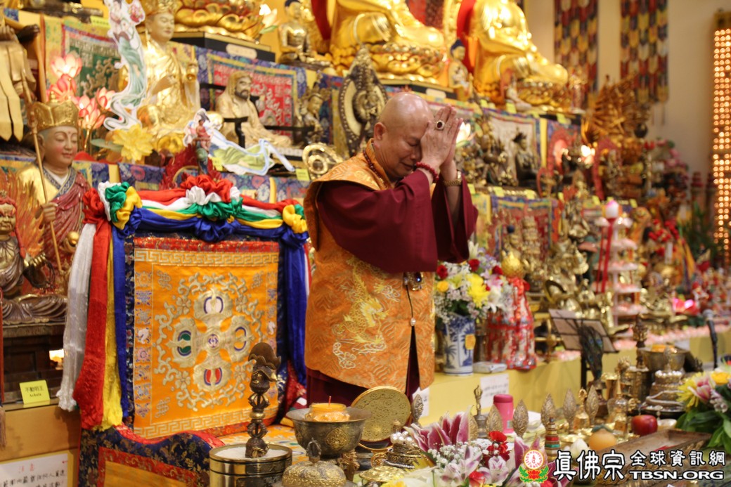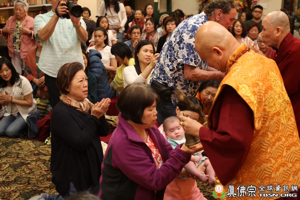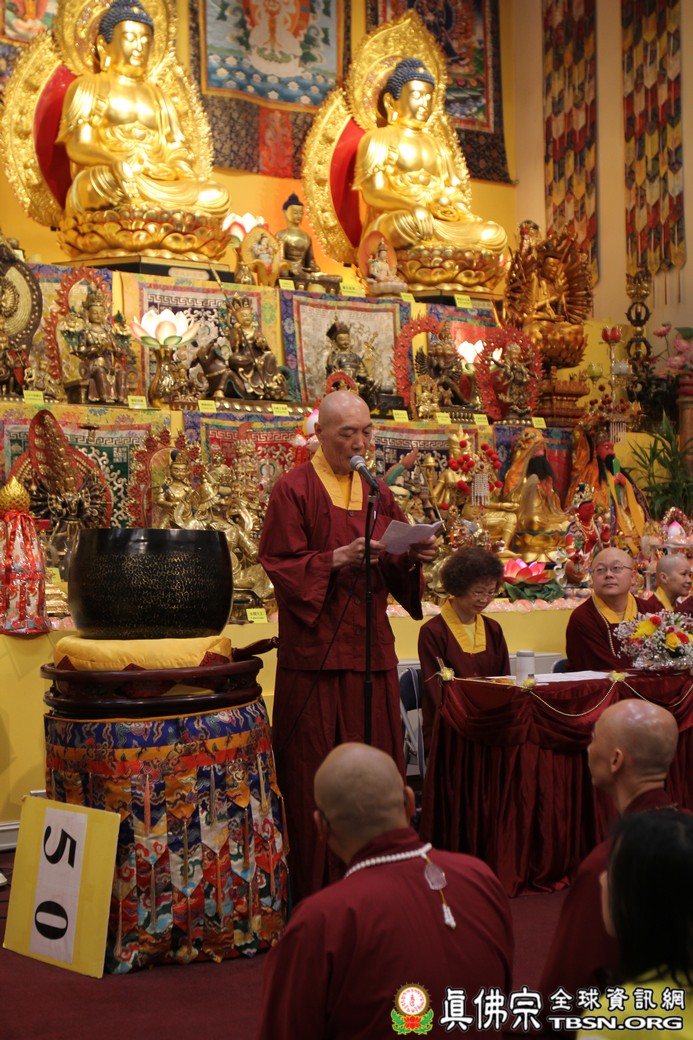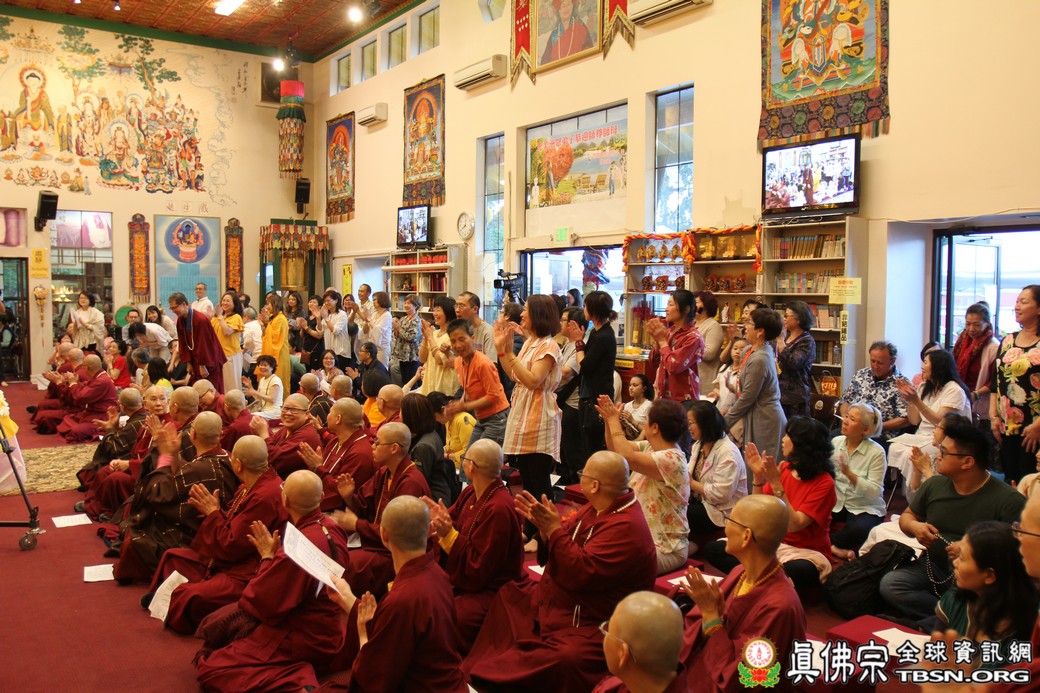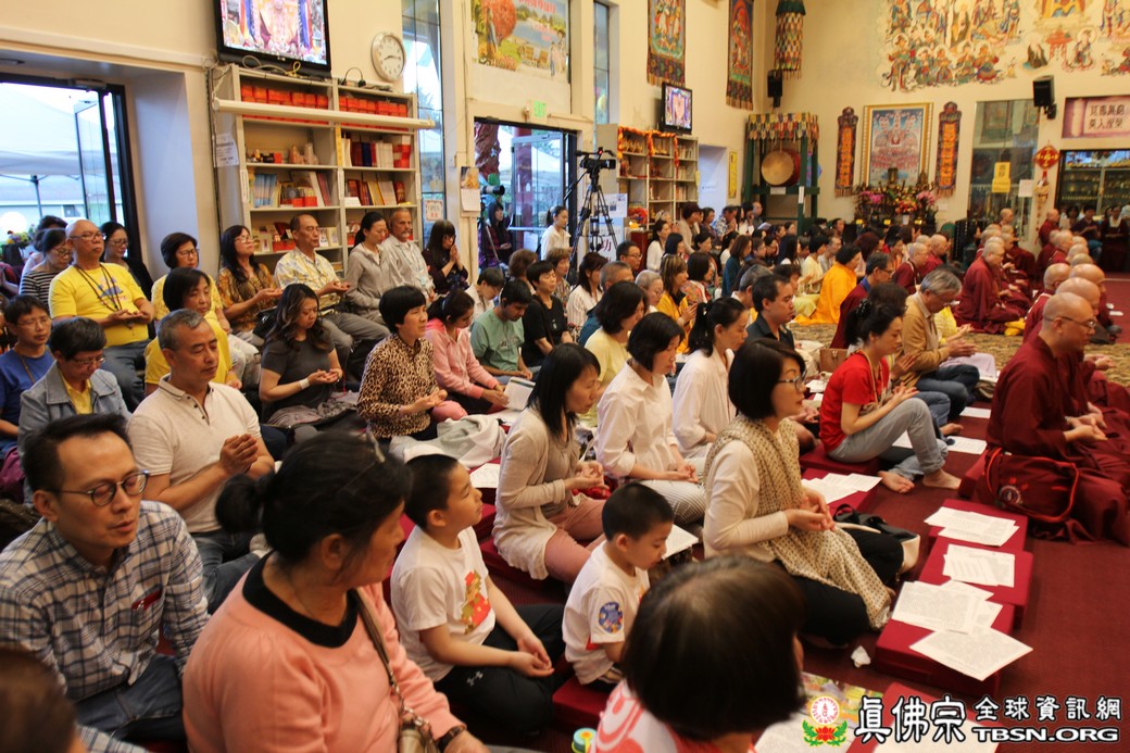 在聖尊的佛光加持下,莊嚴肅穆的周六同修會,西雅圖雷藏寺的唱誦組帶領全體善信大德加唸浴佛功德經,修法一切吉祥圓滿。同修後,由蓮印上師代表雷藏寺致詞。他表達非常感動、快樂和感激的心,提到今晚在這當年由師尊、師母用心血建立起來的第一座雷藏寺,我們大家一起同修真佛密法。他感謝師尊將密法傳遍全世界,讓眾生明白人生的意義。因為有師尊的教導,我們明白正念是唯念菩提,不要被世間的妻財子祿壽所影響,正所謂萬般帶不走,唯有業隨身。要以無所得之心,自在而行,千萬不要被名利所牽纏。最後,上師非常感謝師尊對千萬眾生的救渡,他誠心祈請根本上師能延長壽命、身體健康、長住世間。