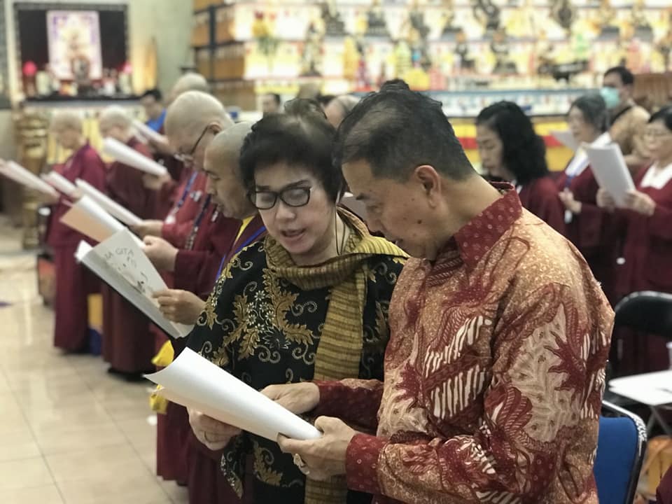 「其實在32年前,我就來到印尼,所以印尼也是我的家。當時基礎設施並不好,現在非常繁榮了,經濟水準提高,生活越來越好。我記得當時的雅加達河是黑色的,政府有能力後,進行過濾,現在河水已經比以前清澈。既然印尼國家可以改變,印尼真佛宗可以嗎?(眾呼:可以!)宗派要由你我一起來改變。硬體建設、基礎有了,我們要思考如何更好?」