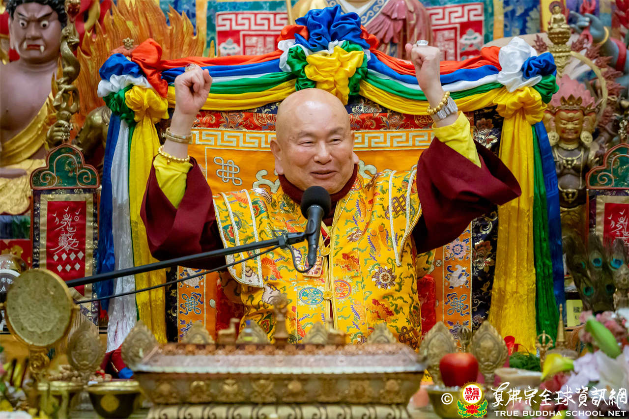 2025年10月18日聖尊蓮生活佛盧勝彥於西雅圖雷藏寺主持地藏王菩薩本尊法的同修,隨後為一對新人蓮花明亮與蓮花誼茵做福證,在與會大眾的見證與祝福之下,一切吉祥圓滿。