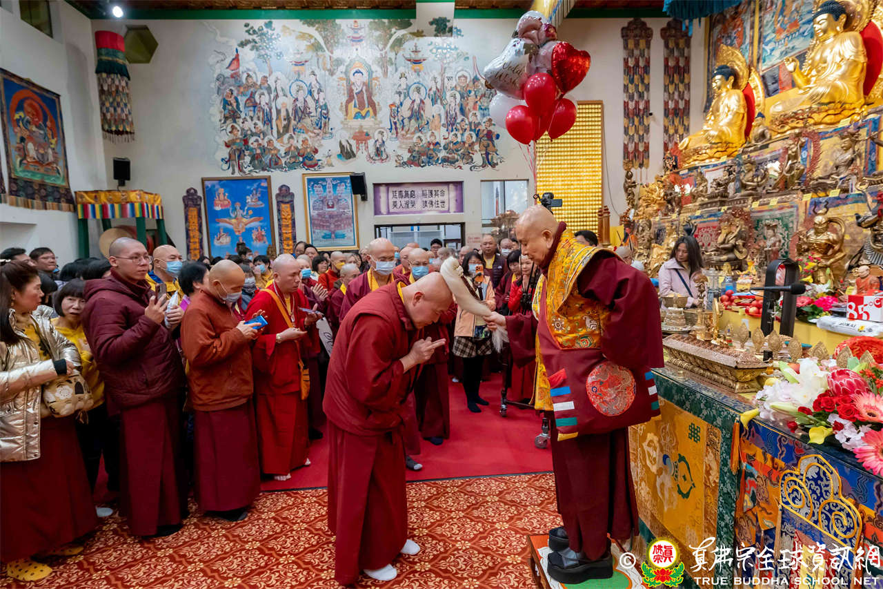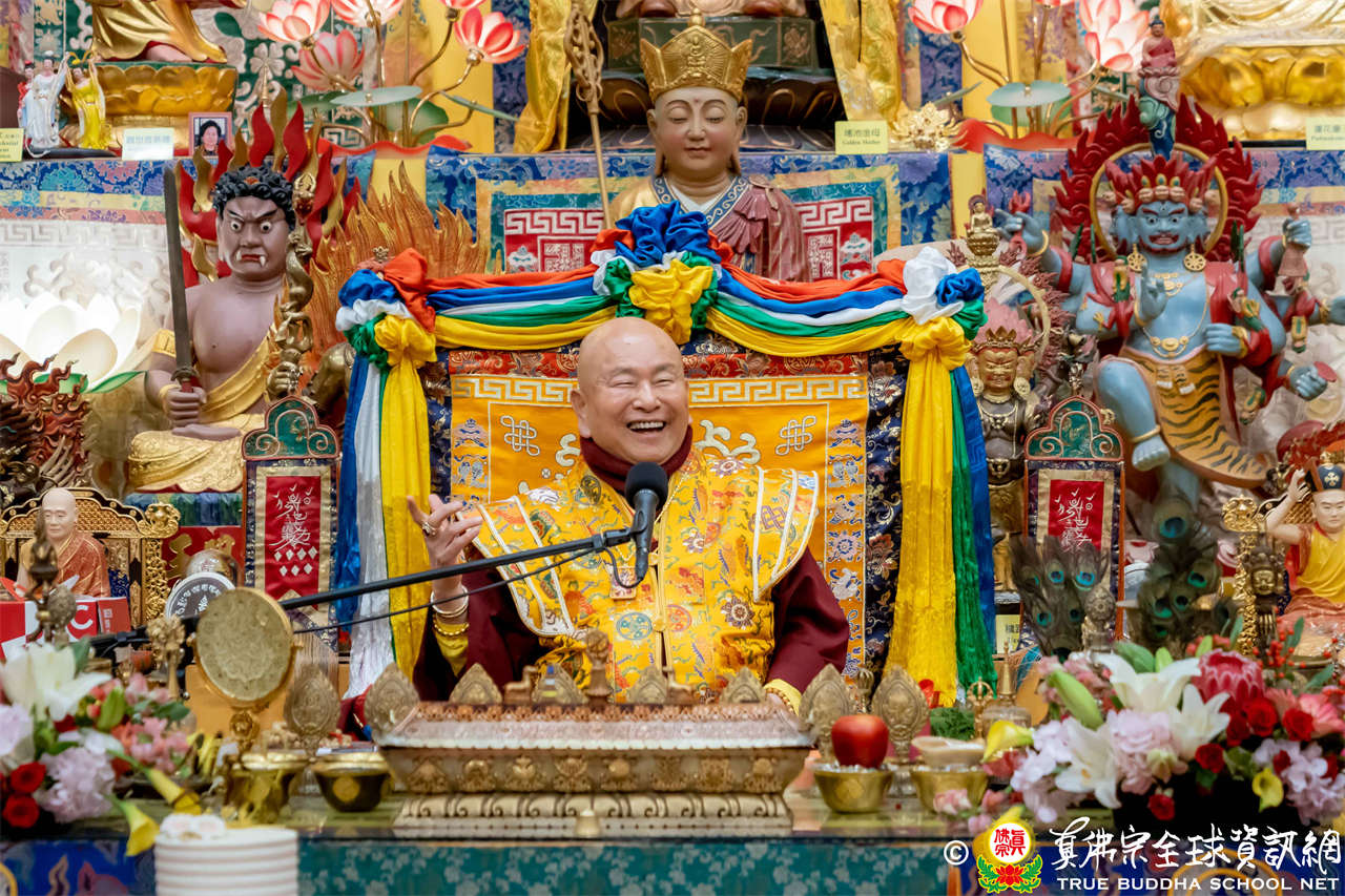 在殊勝珍貴的法語開示之後,聖尊為新皈依者進行皈依灌頂,並以拂塵加持與會大眾,法喜充滿。