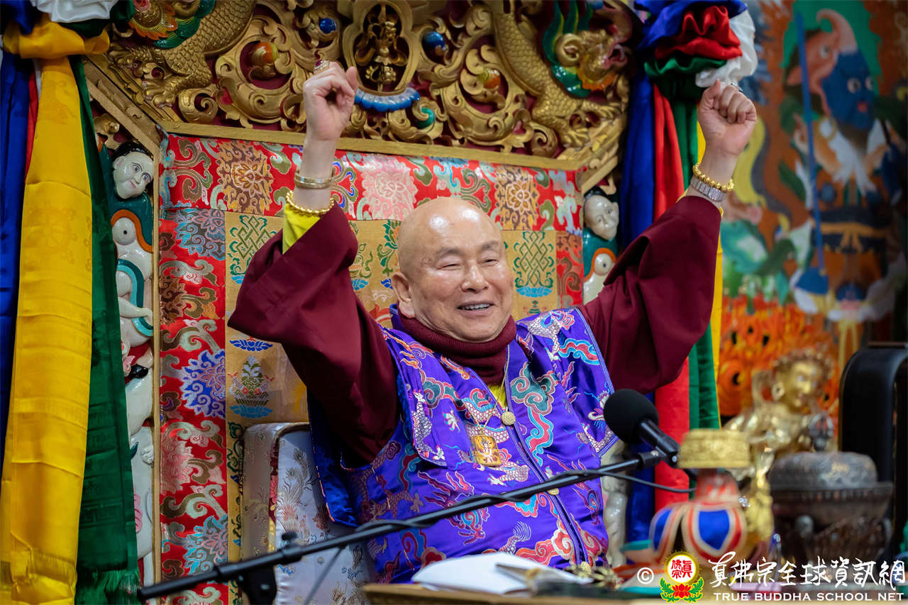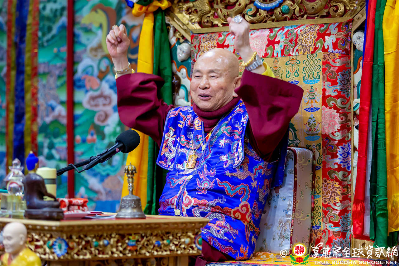 法王笑說:「我講舌吻、講善事,這都是講道理啊!學佛就是要明理、行善。」